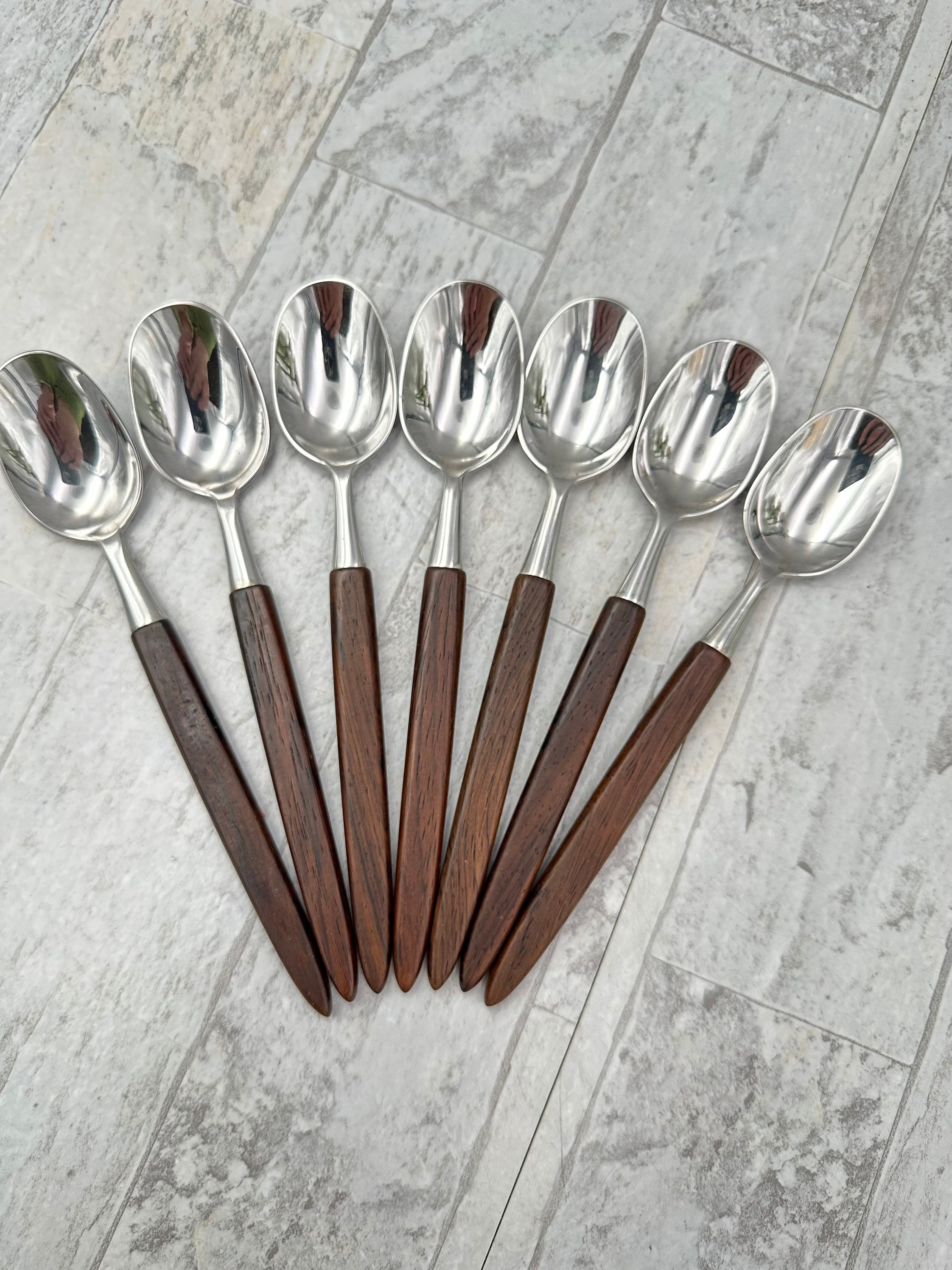 This Style of Flatware is very collectible; you seldom find a set in Very good condition with minor signs of use. The Rosewood is in beautiful condition with natural striation in the wood grain.