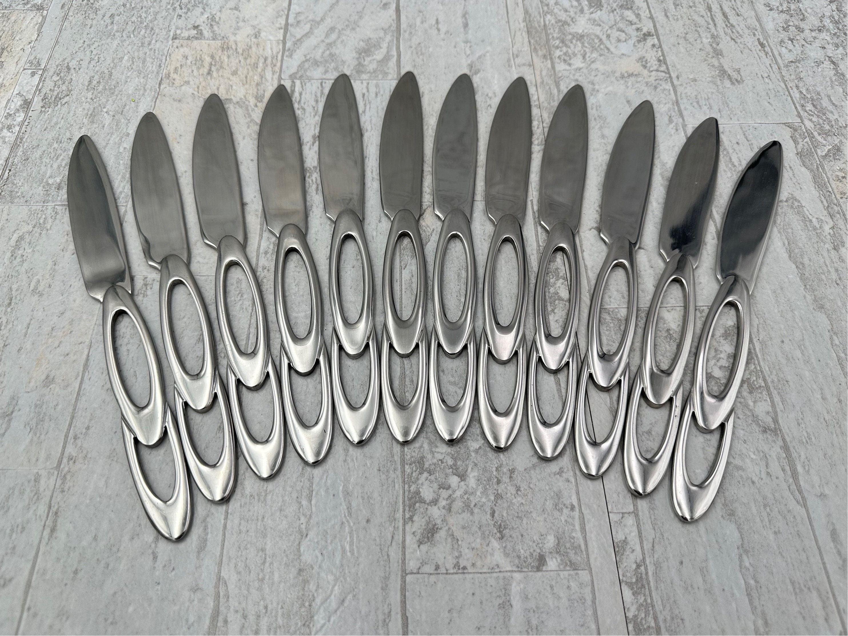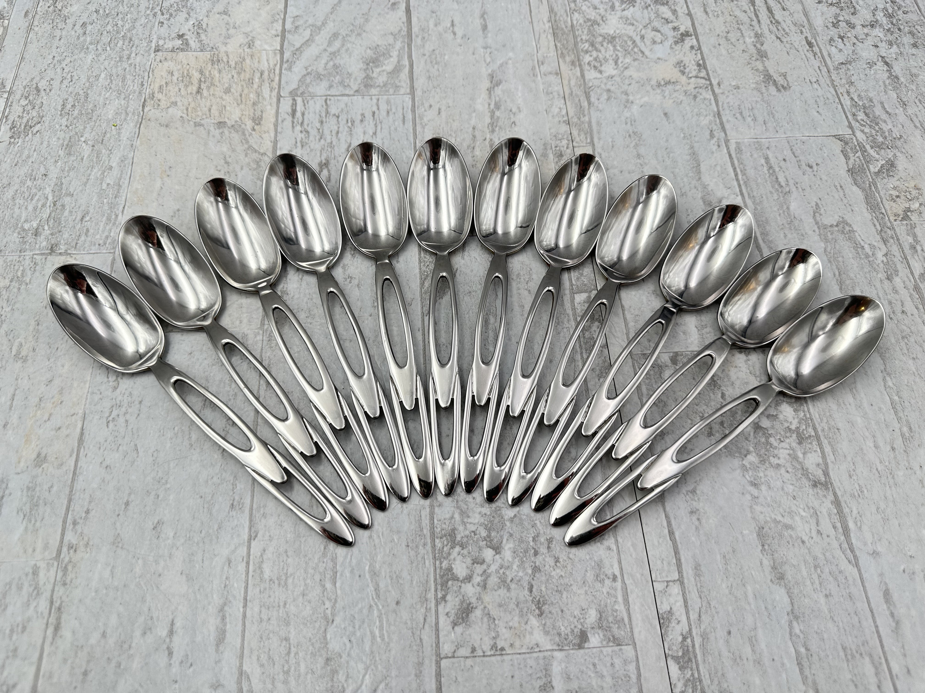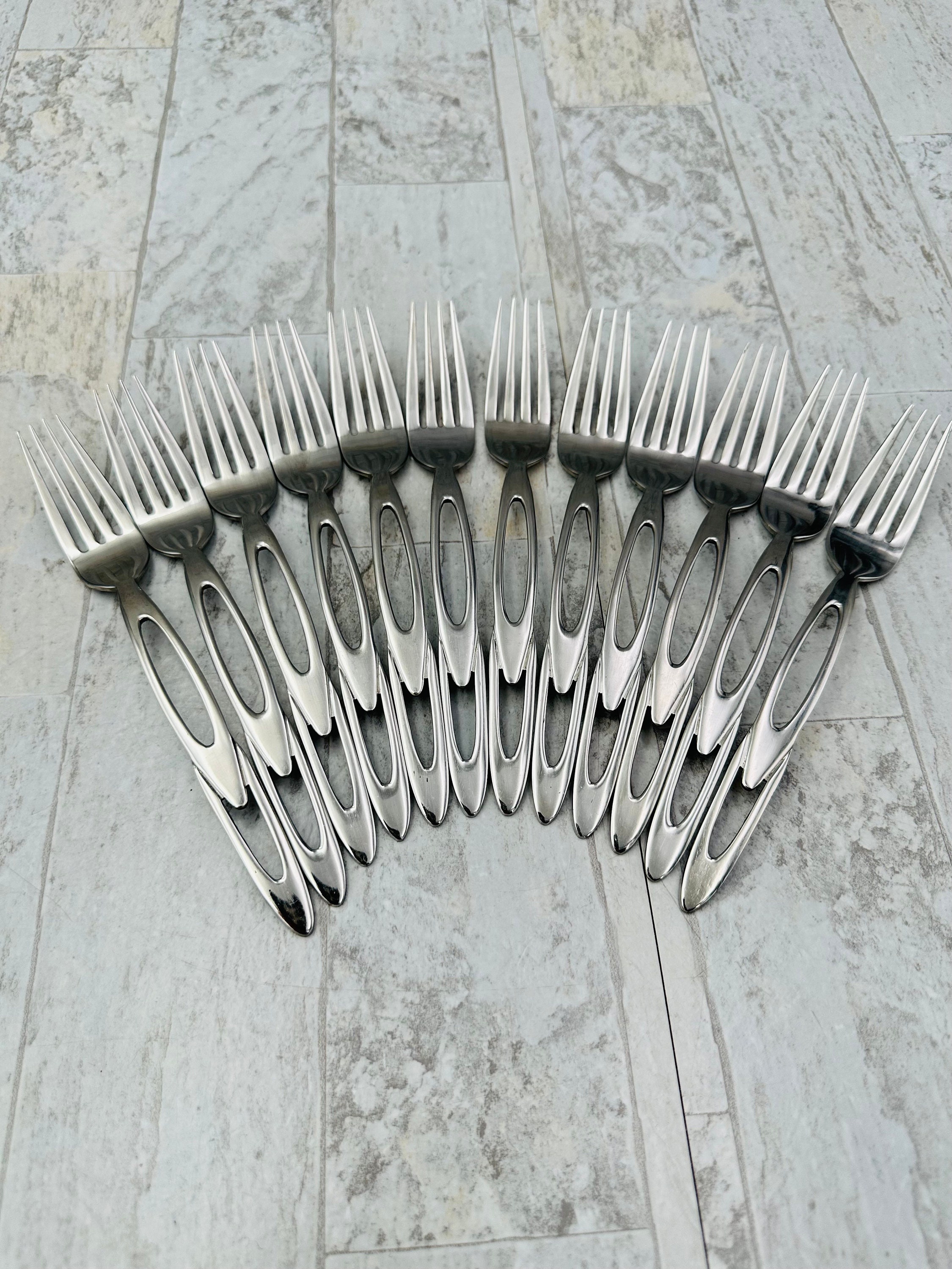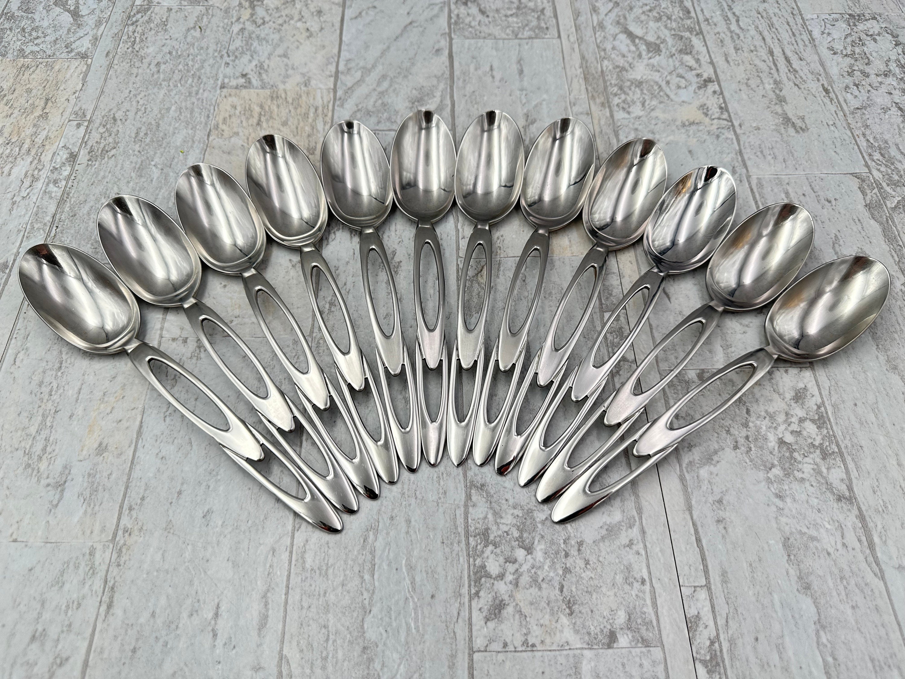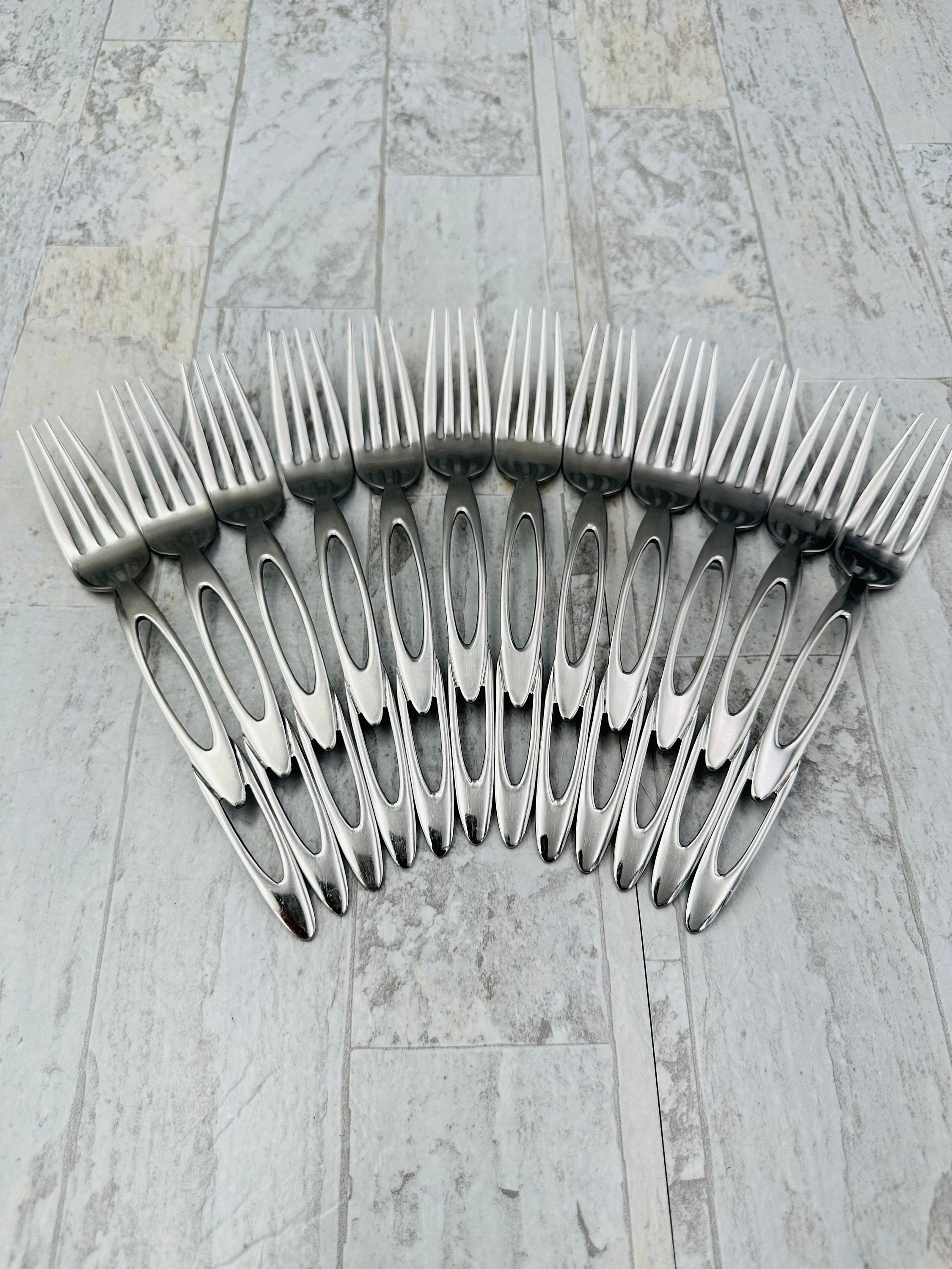 This set is a fabulous MOD Flatware Set in a Pattern Called Double Loop. It is by Retroneu. This is a Rare Vintage service for 12!