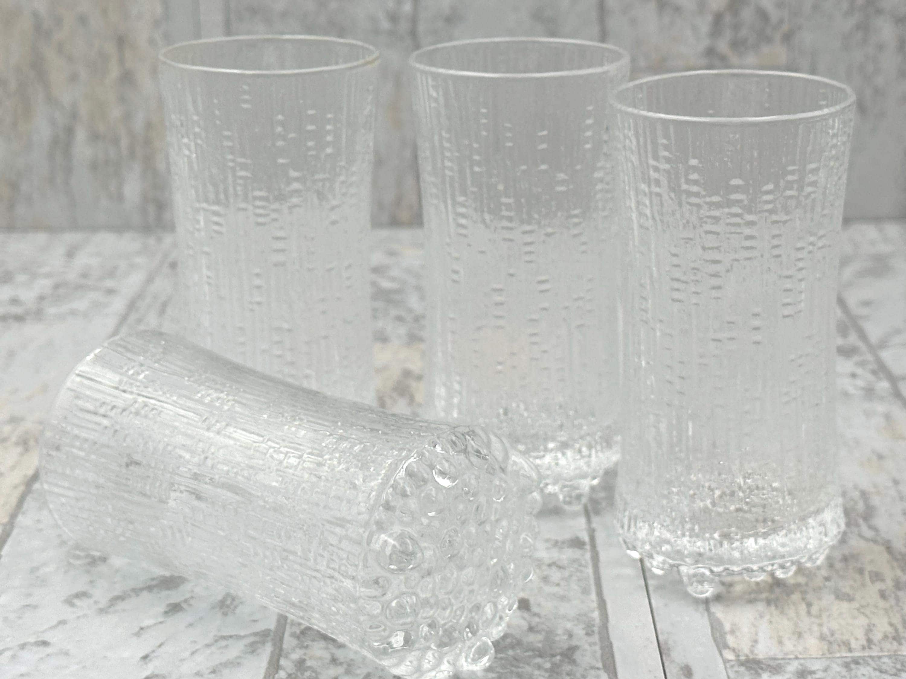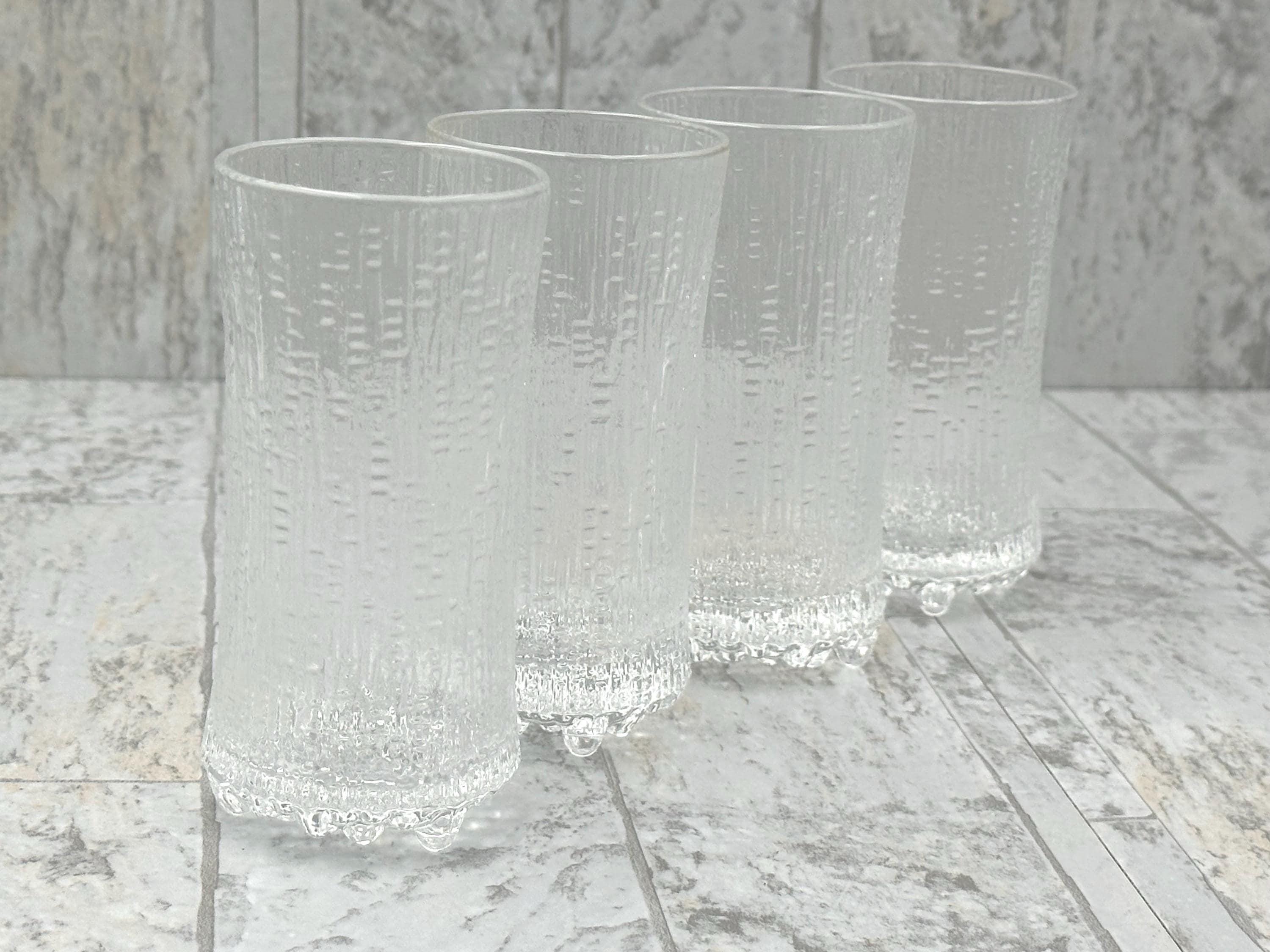 This is a Beautiful set of 4 matching Designer iittala Ultima Thule Champagne Footed glasses