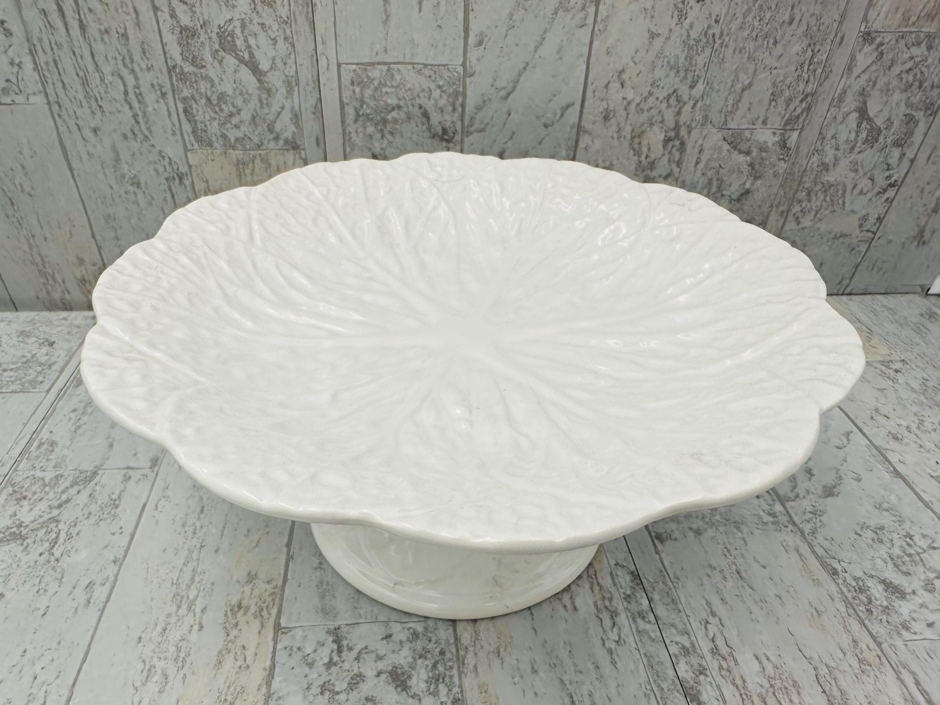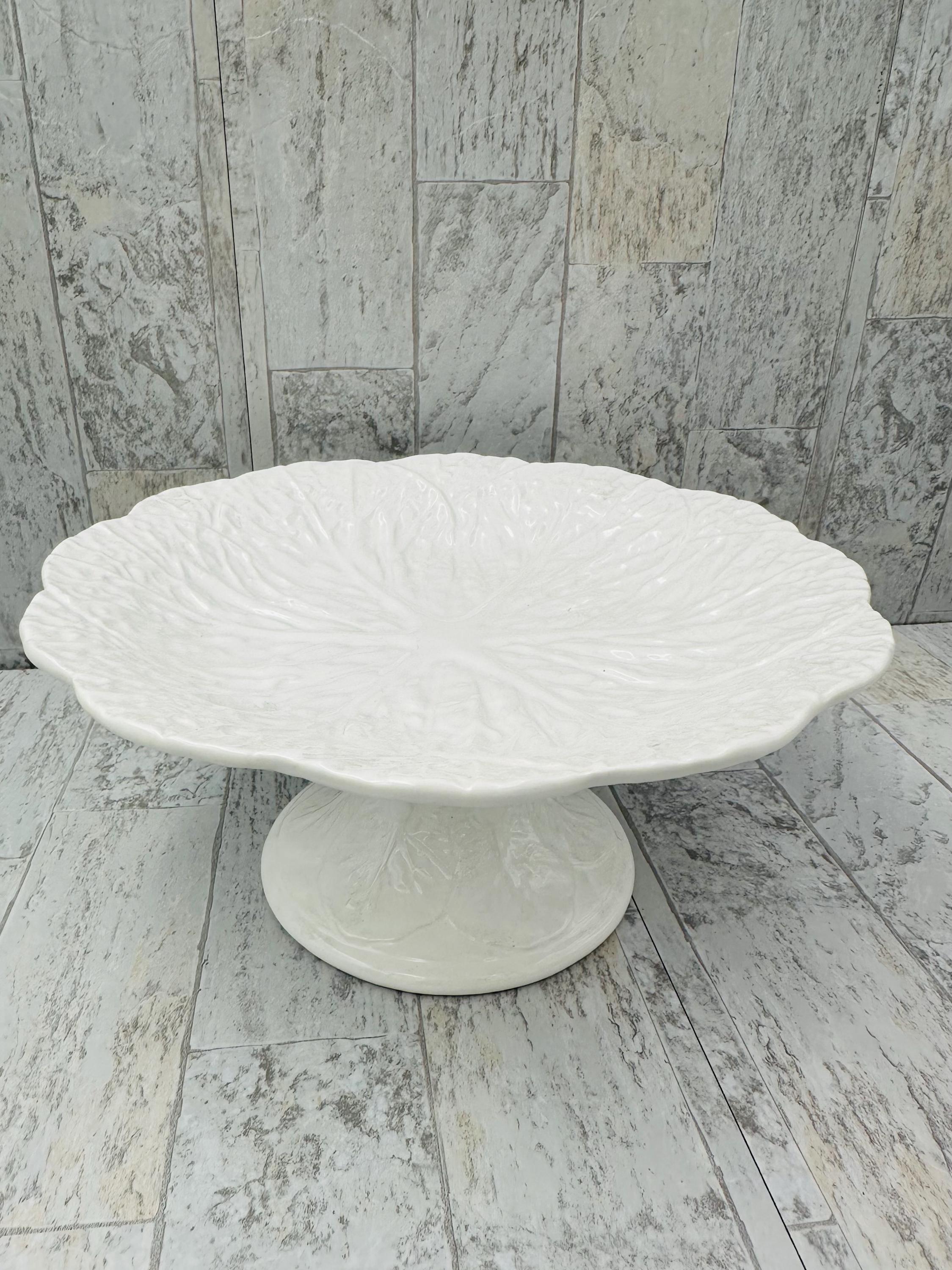 This is a beautiful vintage White Cabbageware Dessert stand. It has the much loved cabbage pattern embossed on the base and both sides of the concaved top. The white color is so versatile.