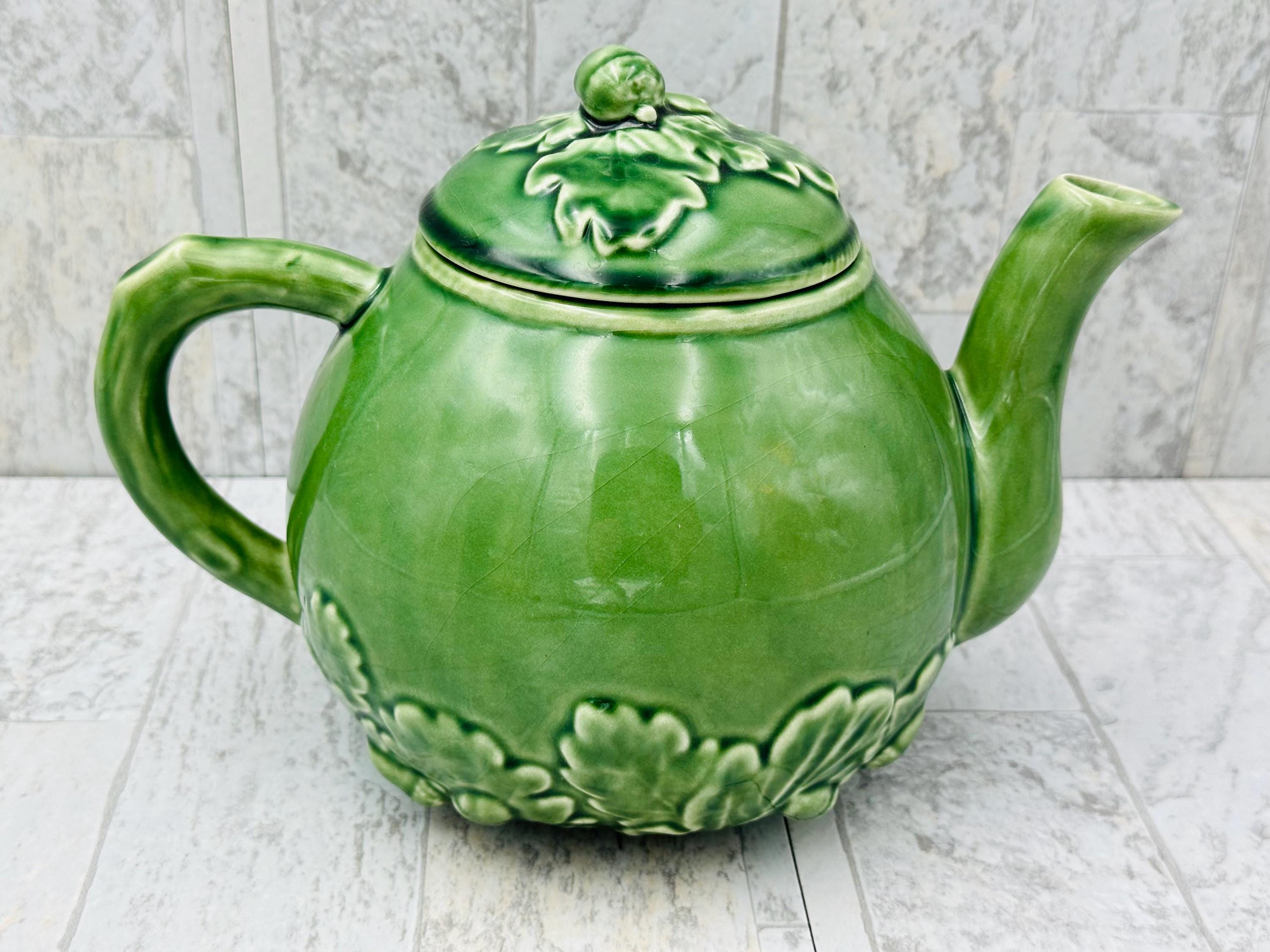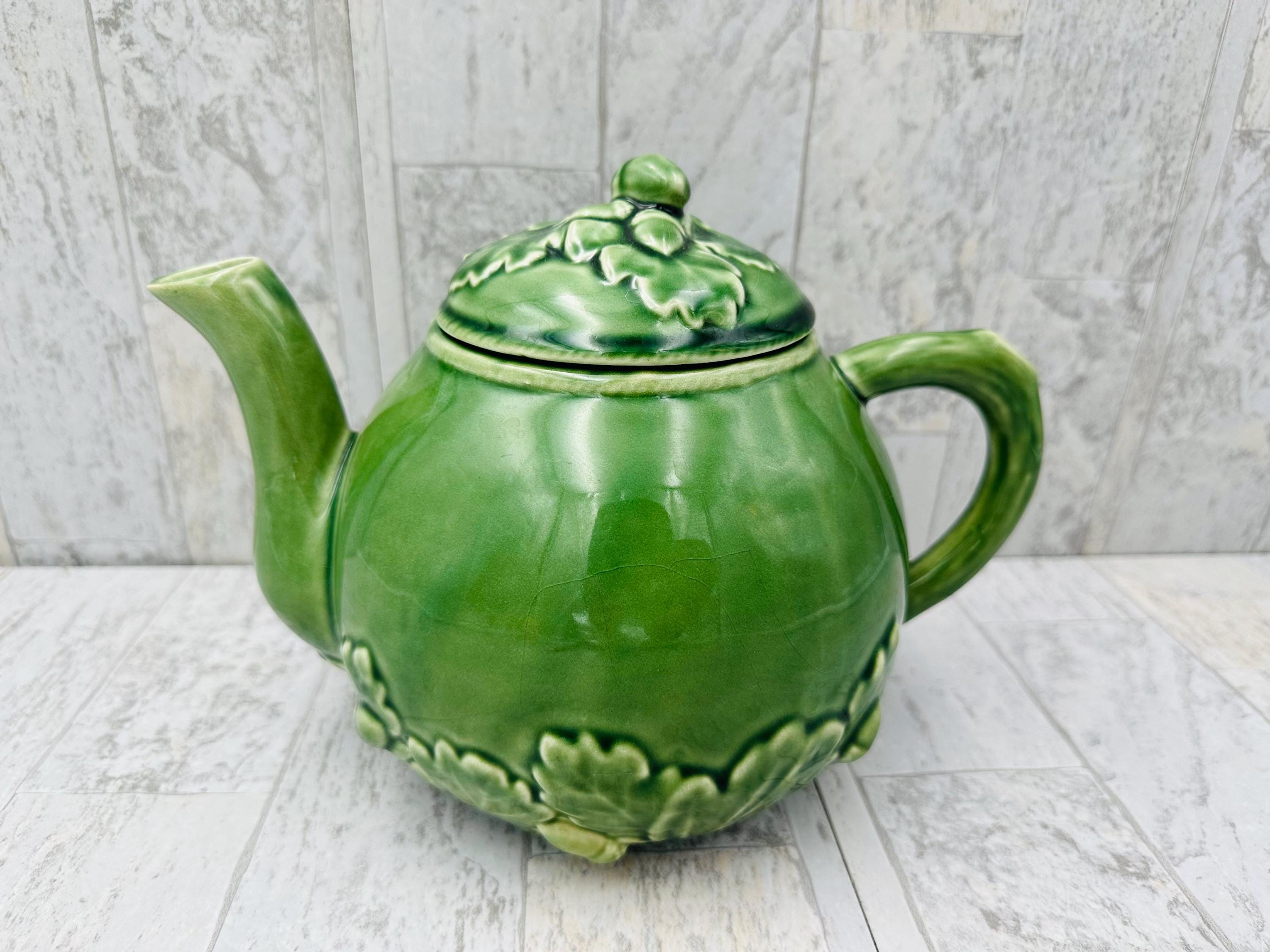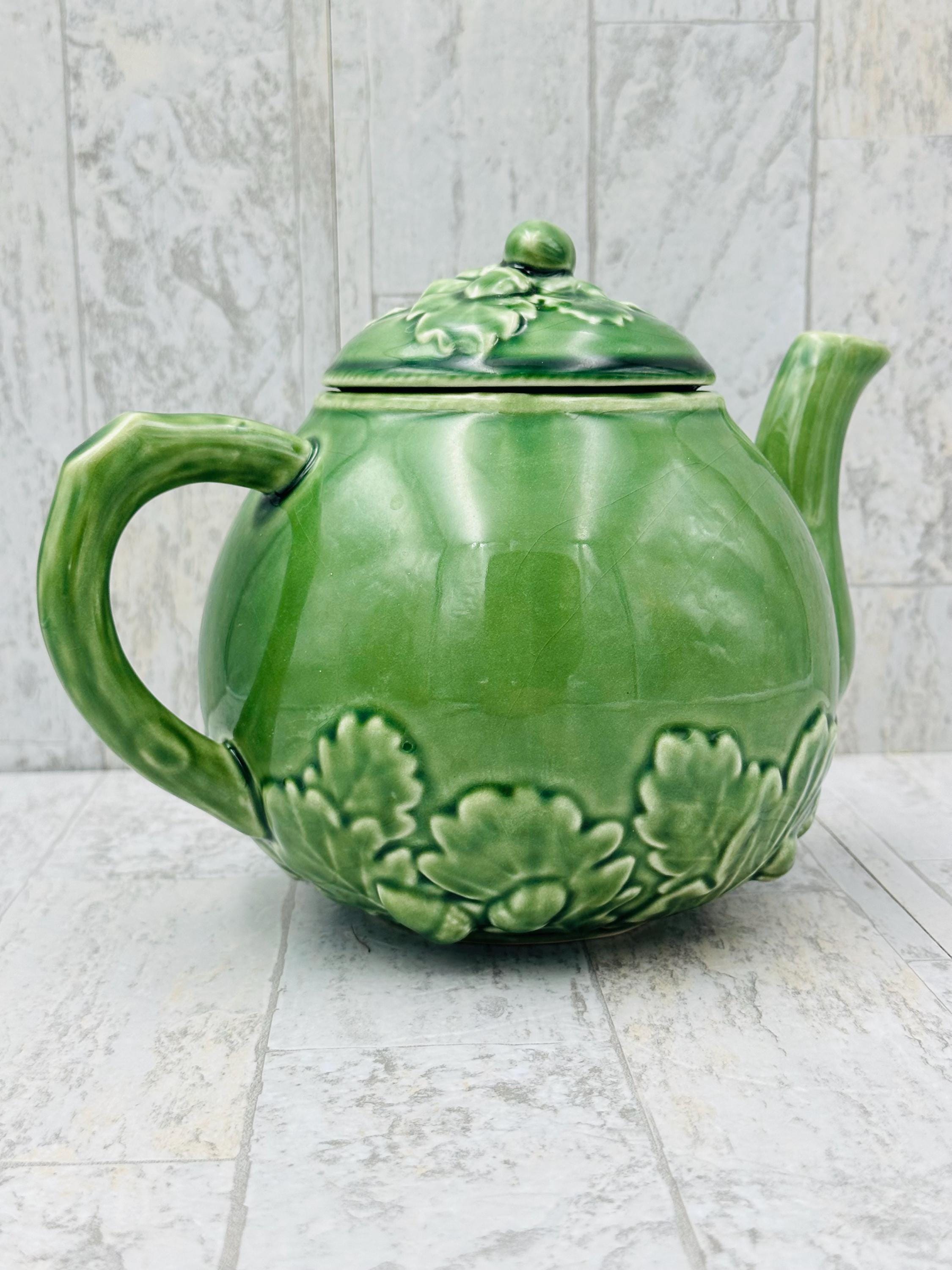 This is a beautiful vintage Mojalica teapot. it is perfect for a Display piece or collection. This teapot has beautiful details. It has a pattern of oakleaves along the bottom, also on the lid.