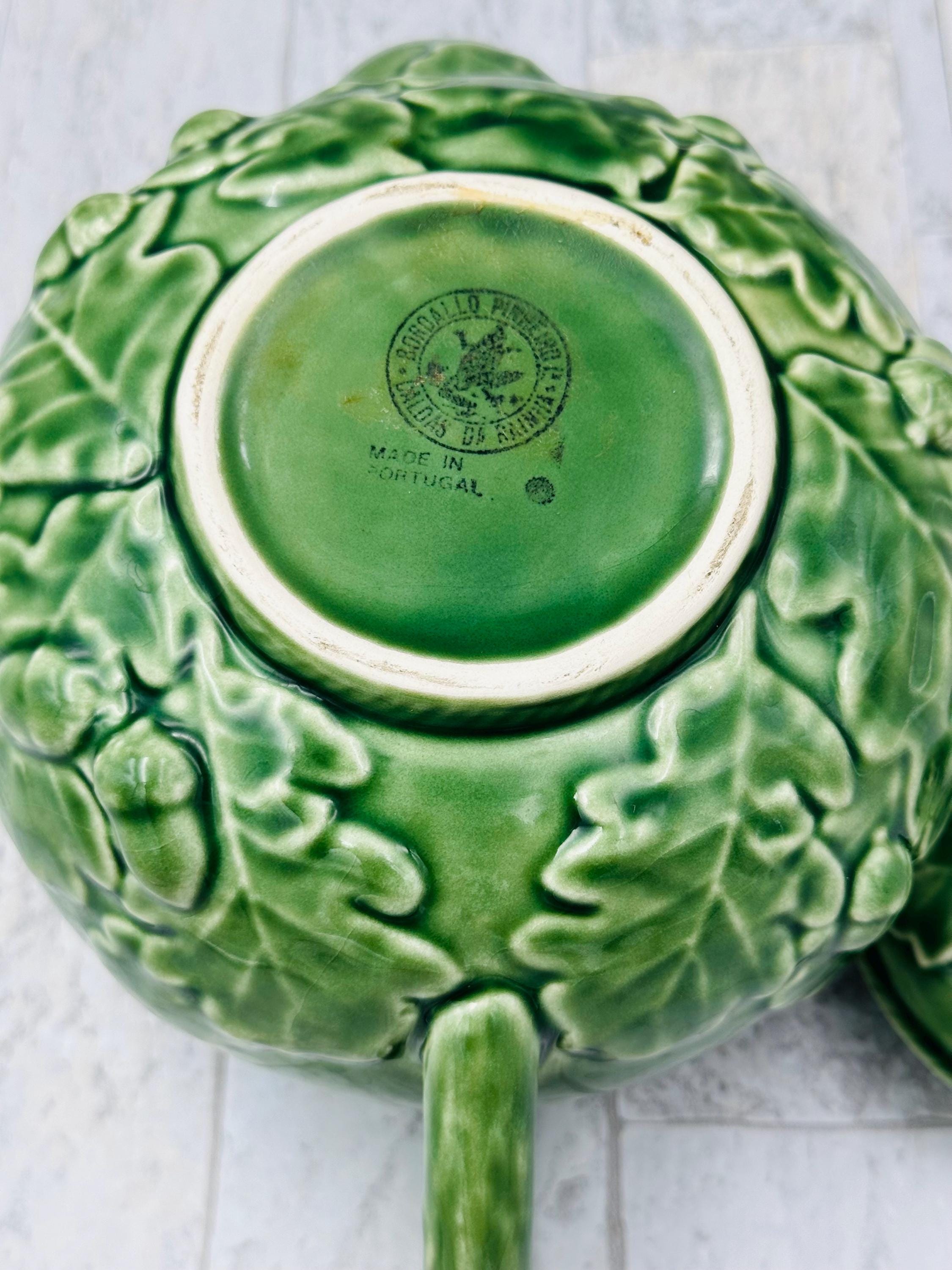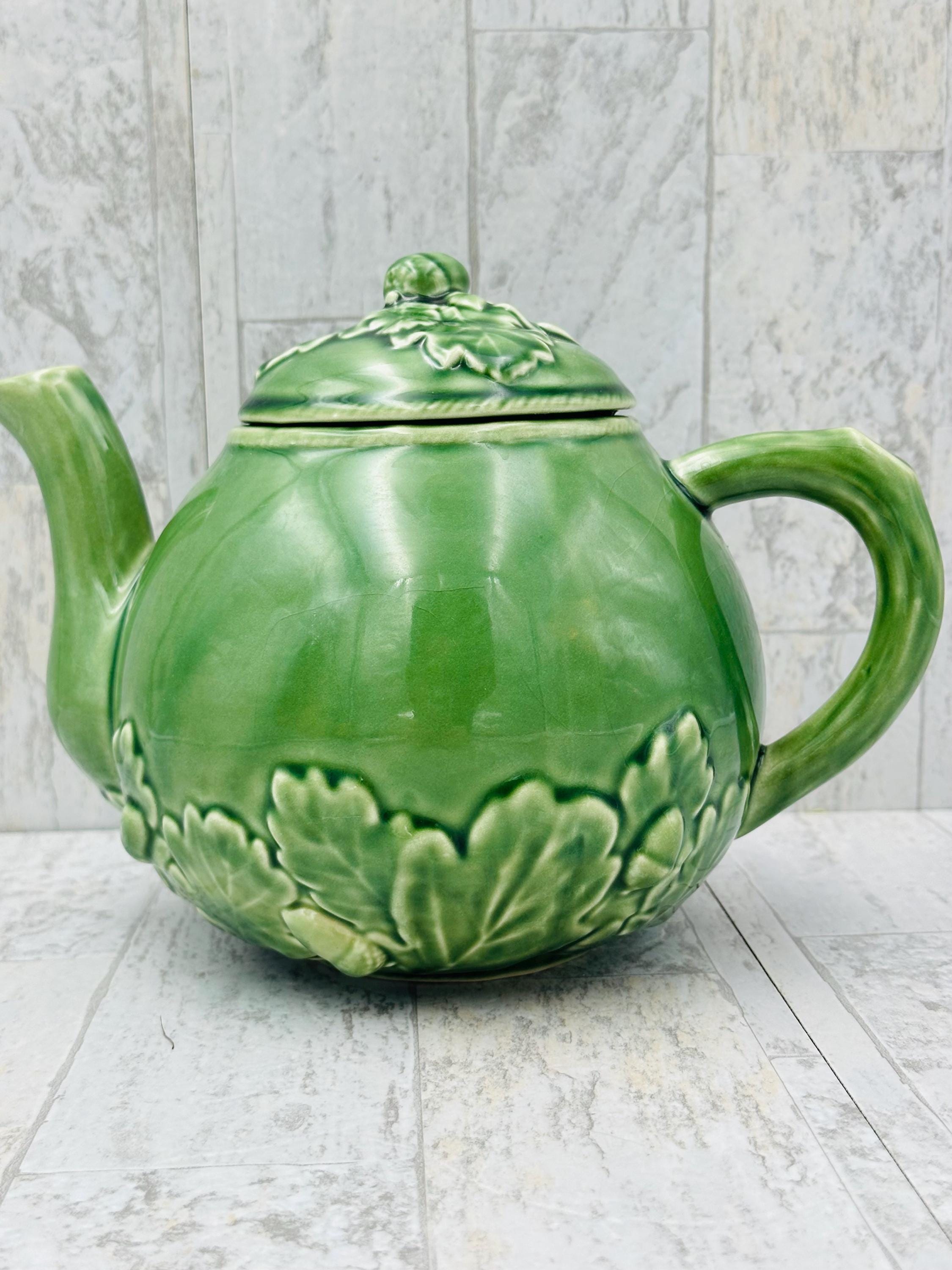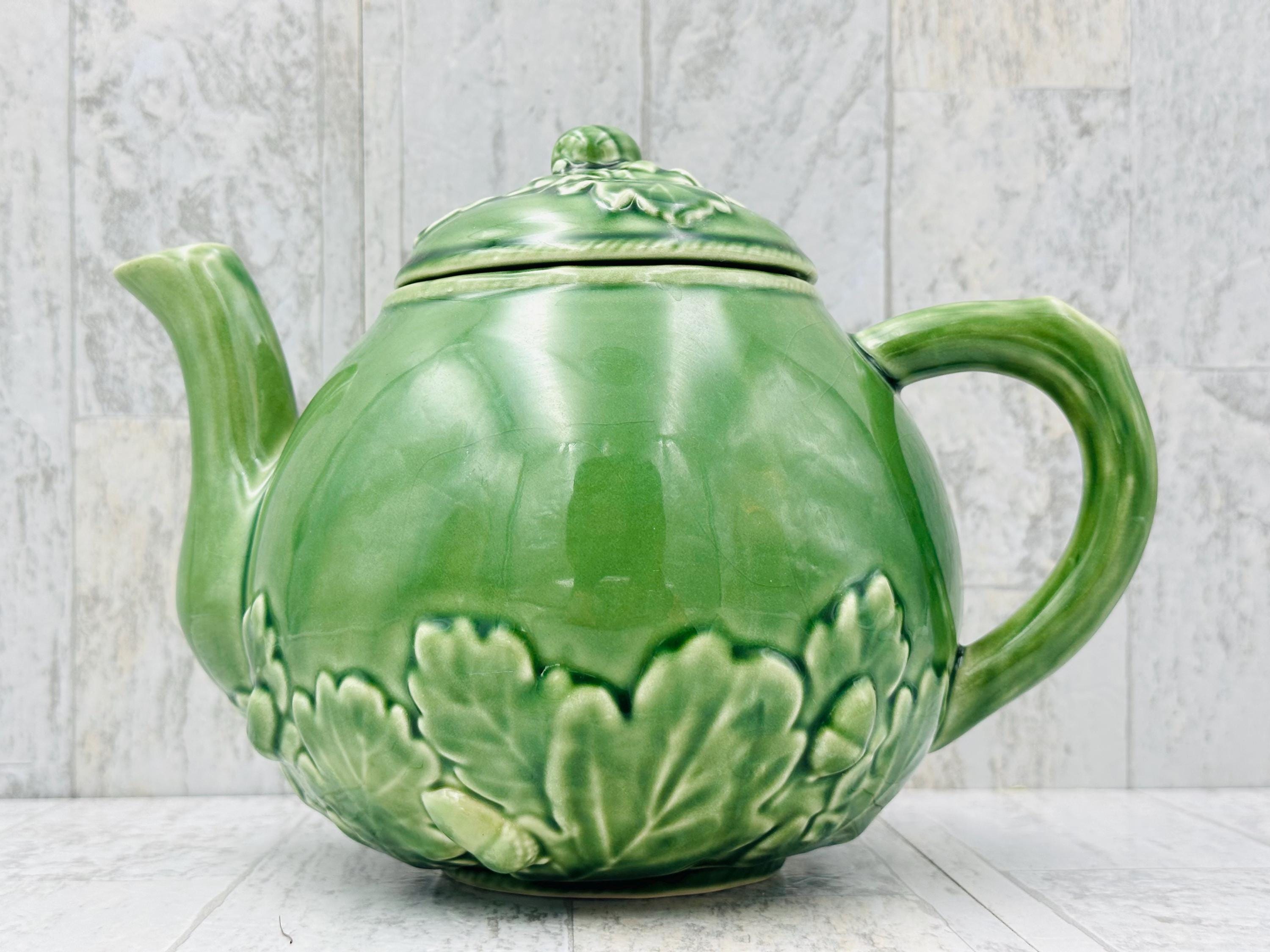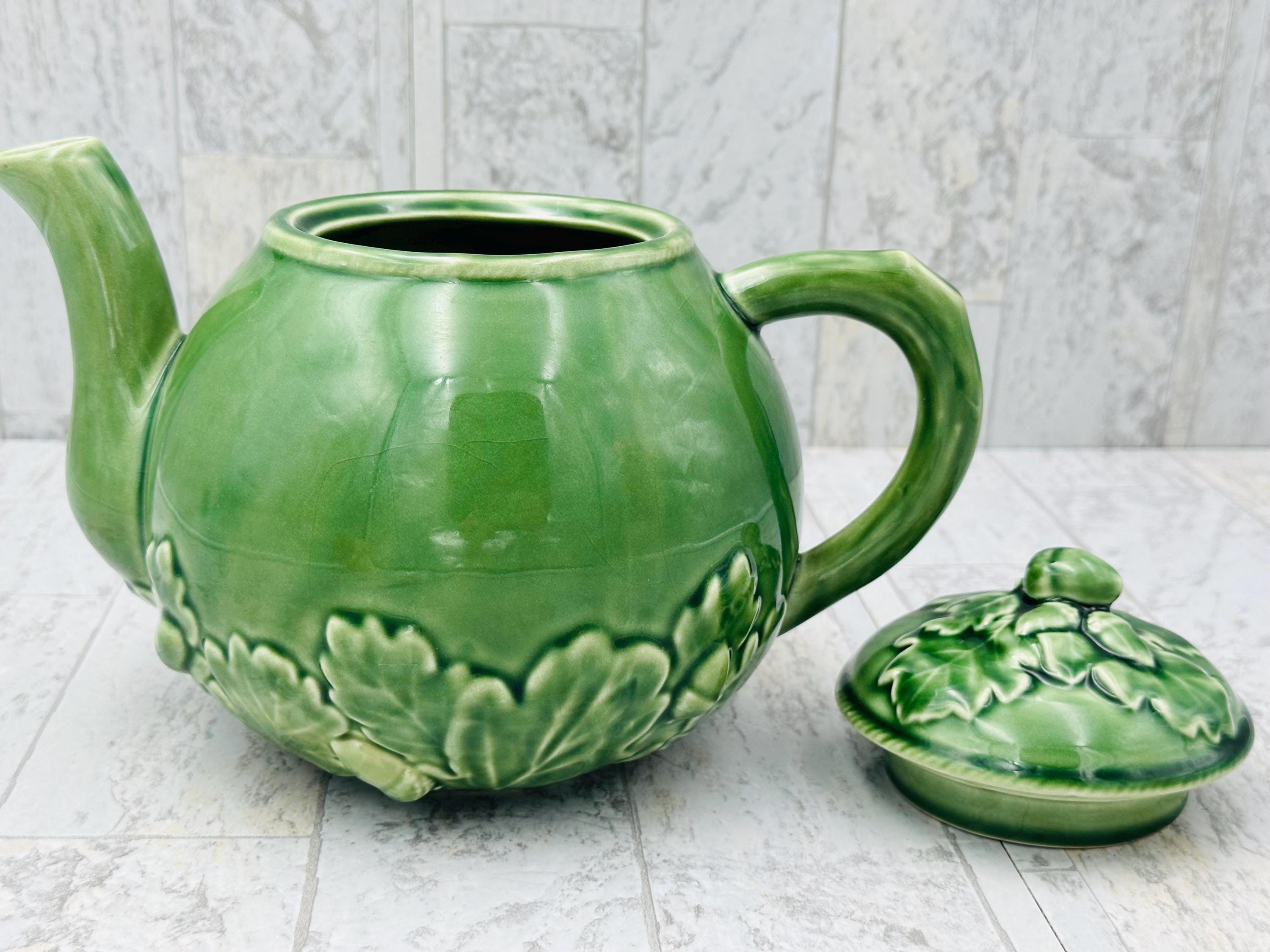 This is a beautiful vintage Mojalica teapot. it is perfect for a Display piece or collection. This teapot has beautiful details. It has a pattern of oakleaves along the bottom, also on the lid.
