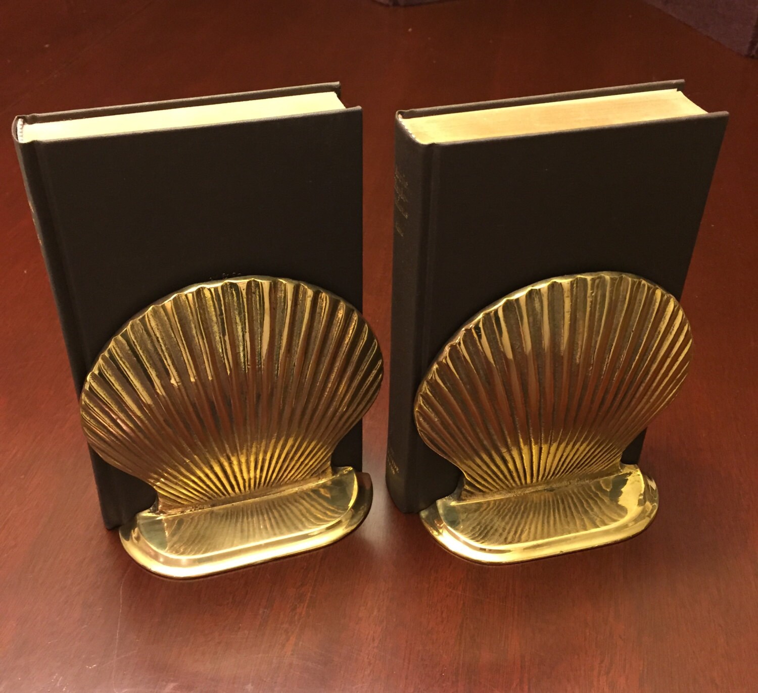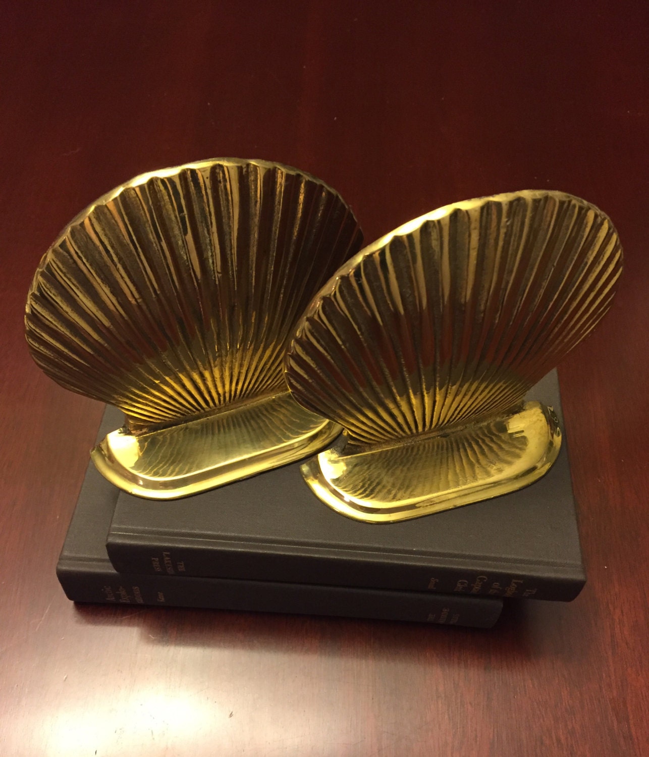 Vintage bookends with Nautical Seashells design. This pair of bookends is made of Brass and would be perfect in. Beach cottage theme.