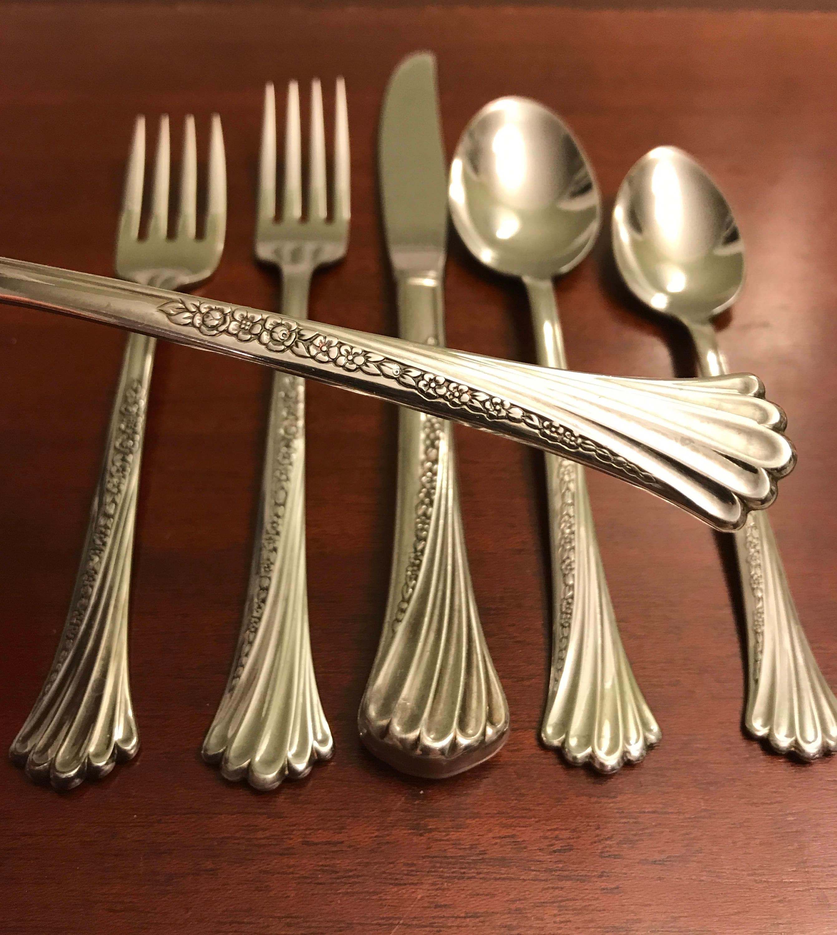 Vintage Oneida Spring Glen Stainless Flatware by Oneida USA. Gorgeous Stainless flatware in an elegant pattern. Lovely slanted Fluted design is combined with Precious Spring Flowers. The Quality of Oneida Stainless Flatware can be felt in the each piece.