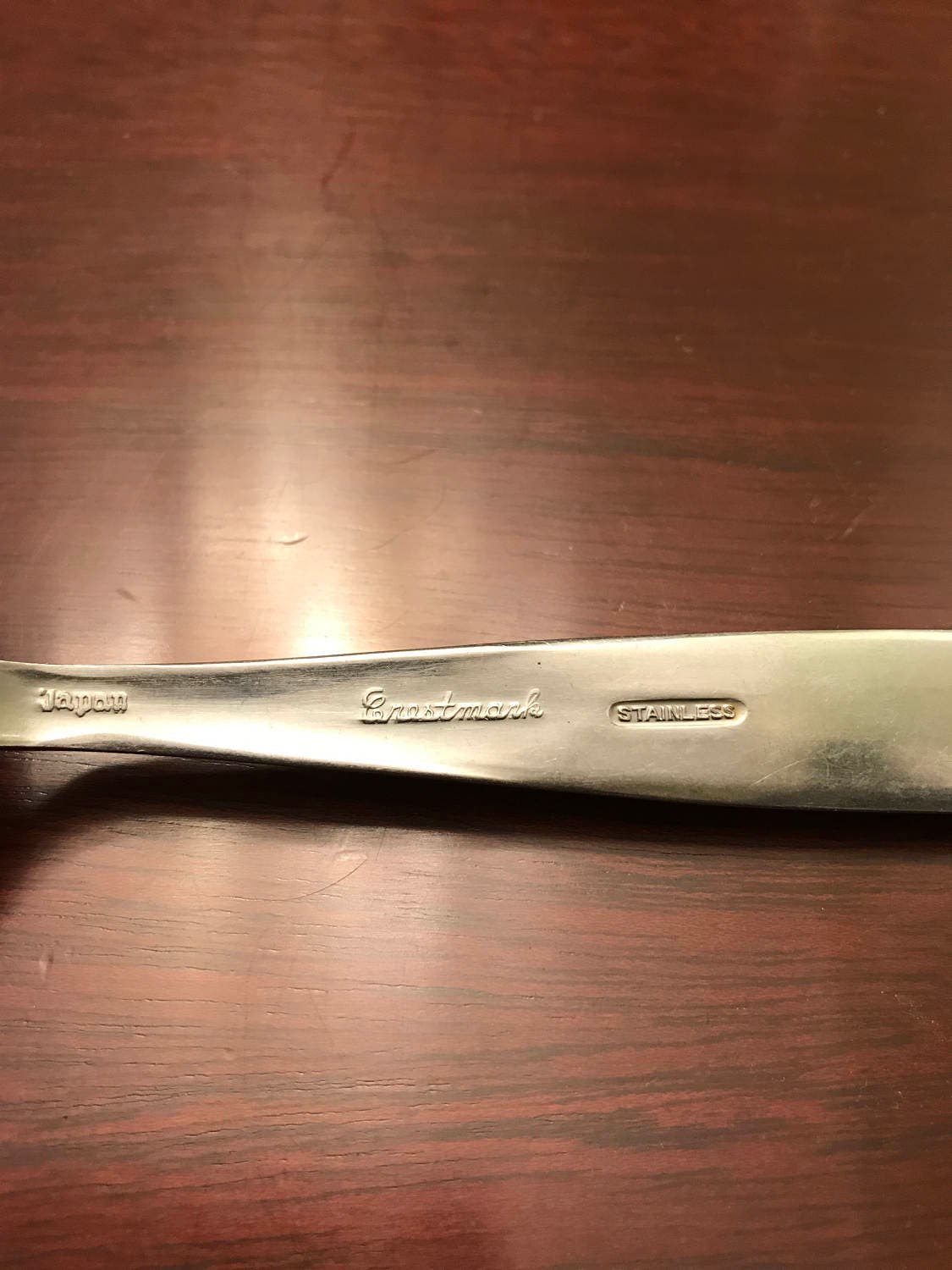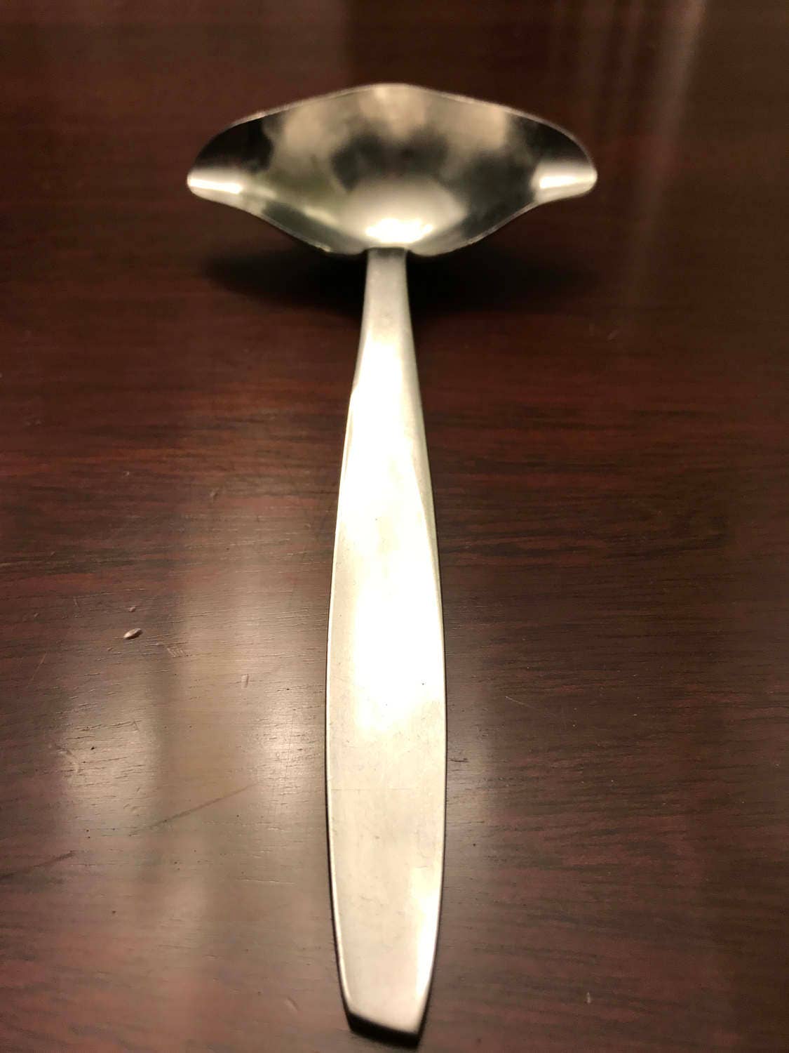 Vintage Crestmark Japan Stainless gravy spoon. This double spout spoon measures 7" long by 3-3/8" wide. This is a great gravy or sauce spoon.