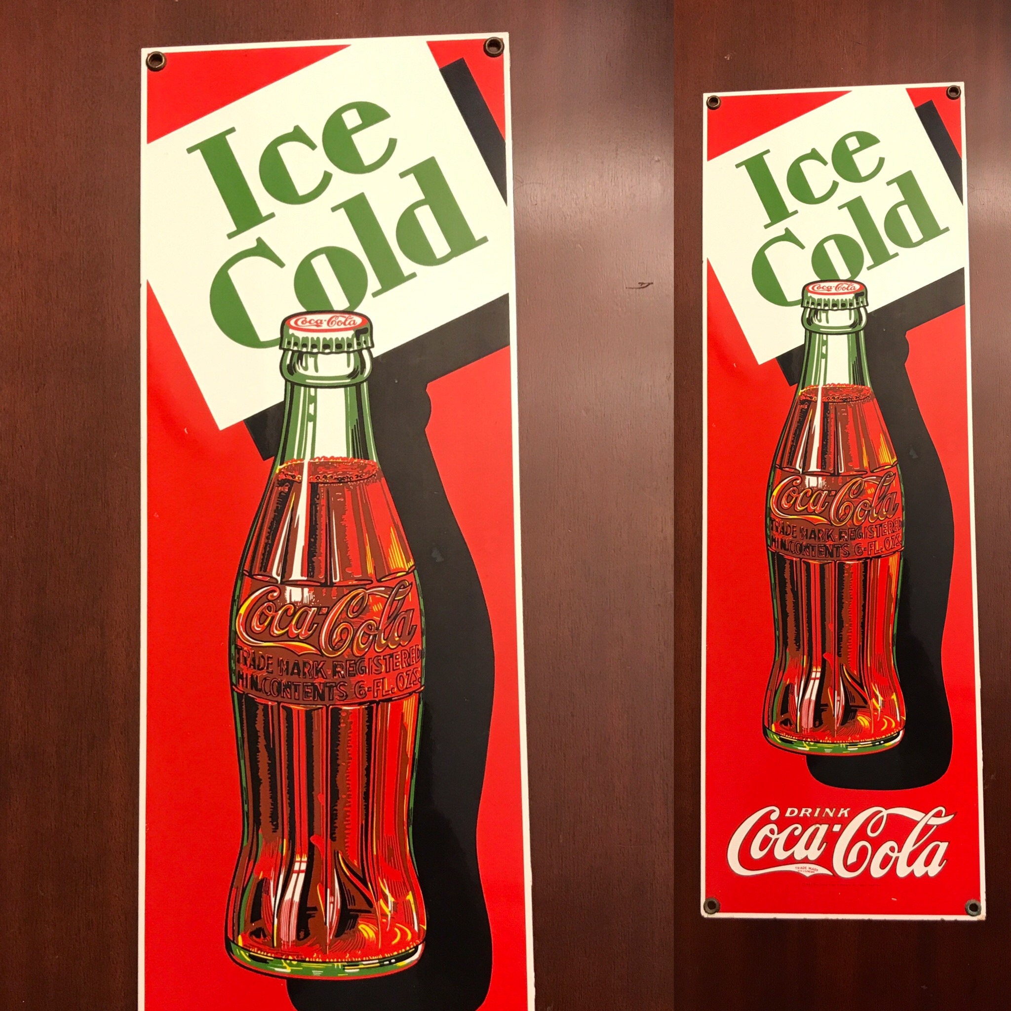 Vintage Coke porcelain on steel Sign. Advertising "Drink Coca-Cola!"