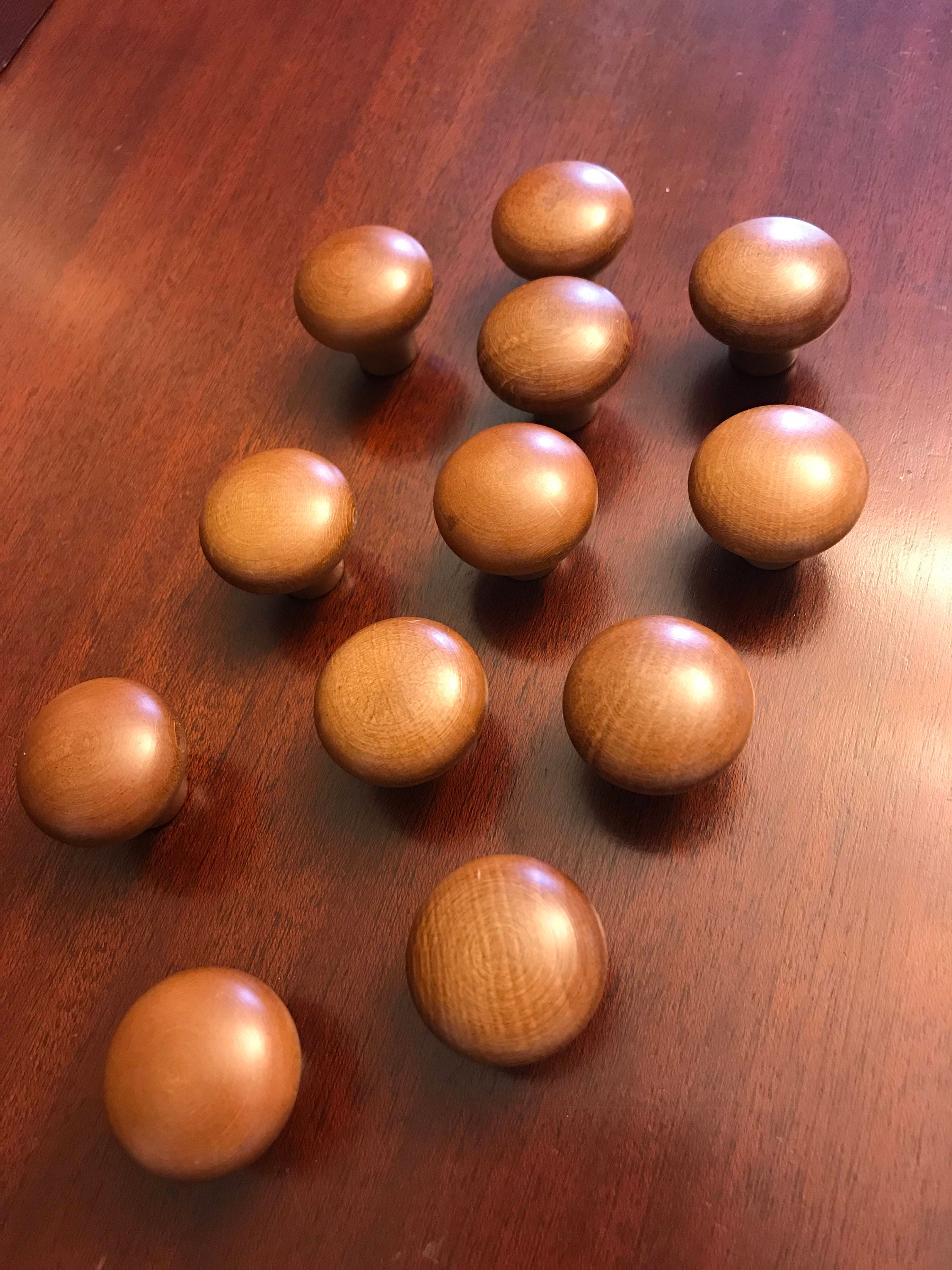 These are well made solid wood knobs with metal screw receiver inserts, ready for your craft or furniture project.