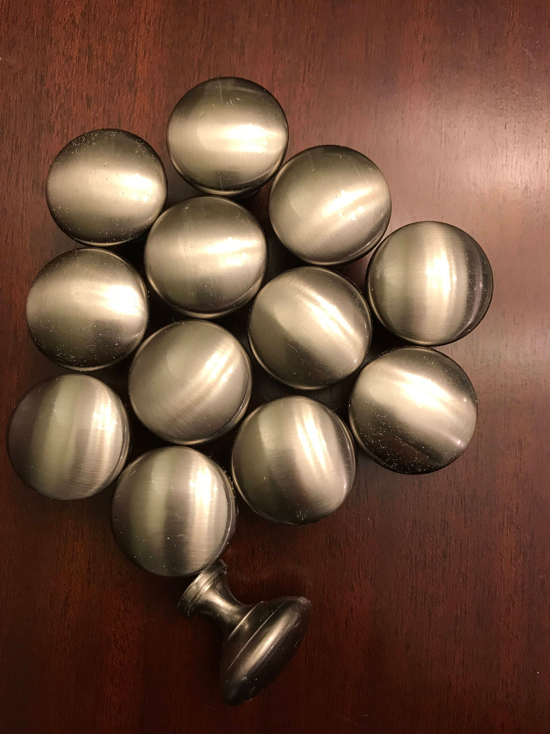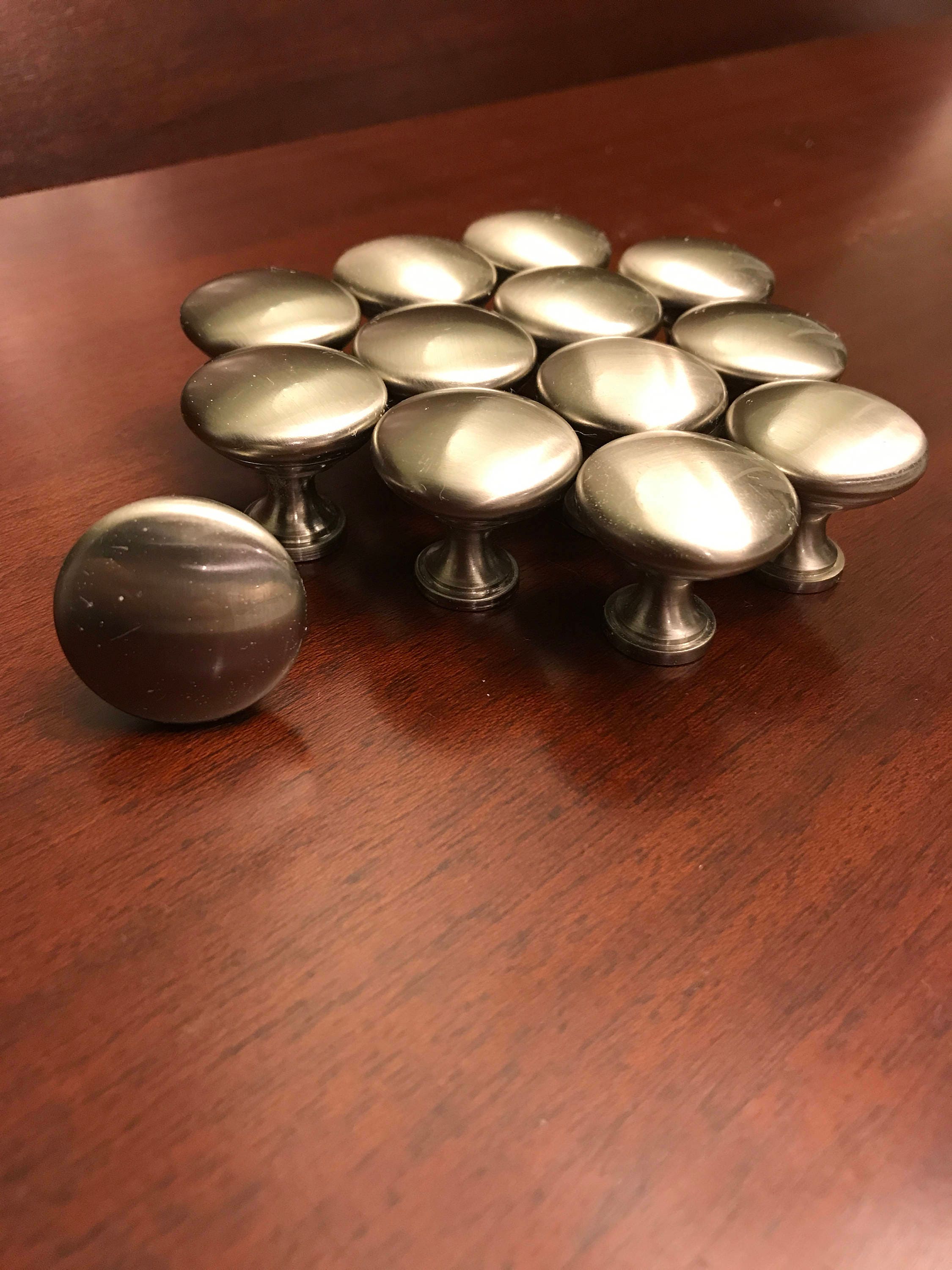 Cabinet Knobs or Drawer pulls. These Button Style satin finish knobs are minimalist in design. Simple metal knob or drawer pull which will go well with almost any style of decor.