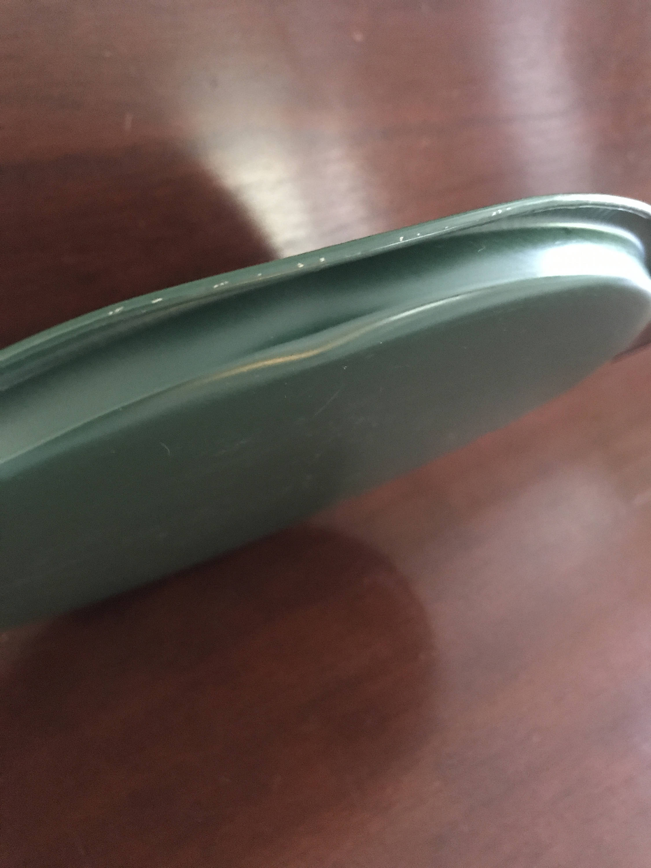 This lovely tray has a some surface scratches, but is in overall wonderful condition for a serving tray of its age. It has a small dent in the bottom edge, which is only noticed when the tray is flipped over.