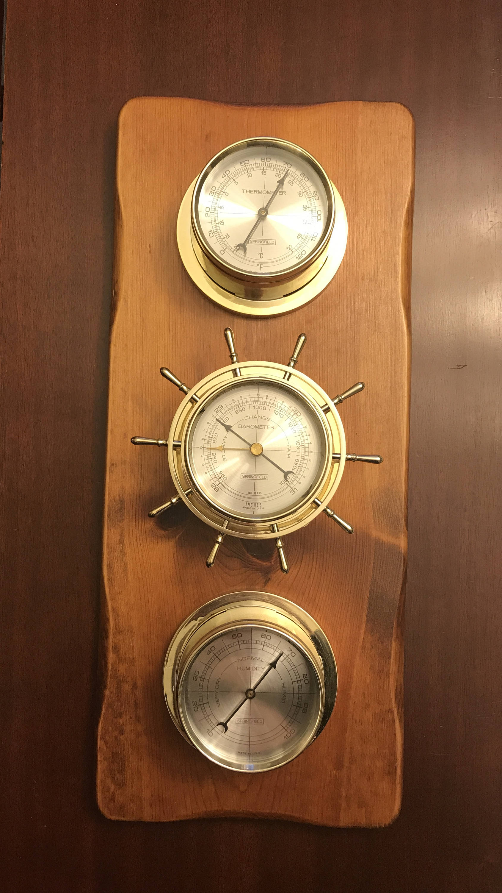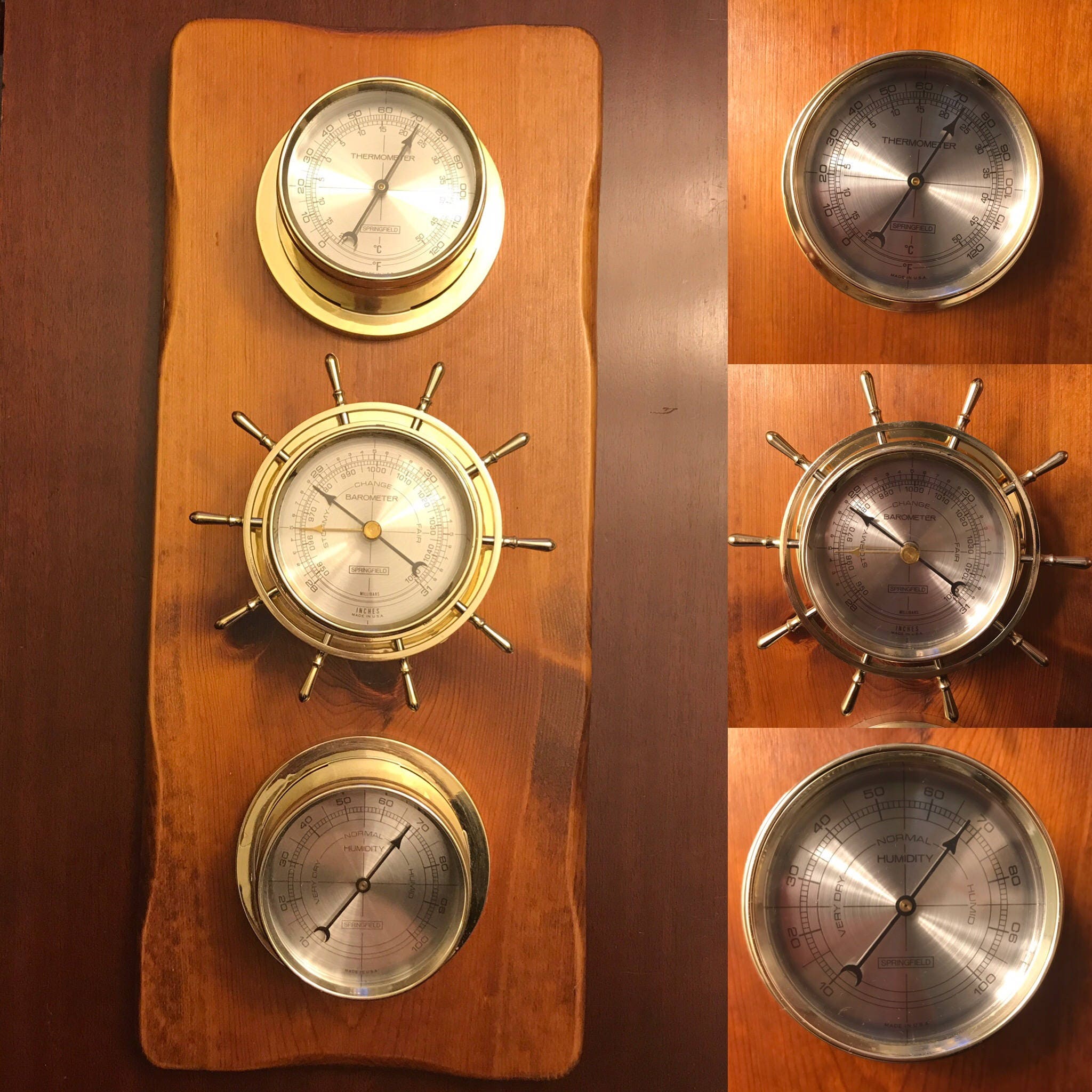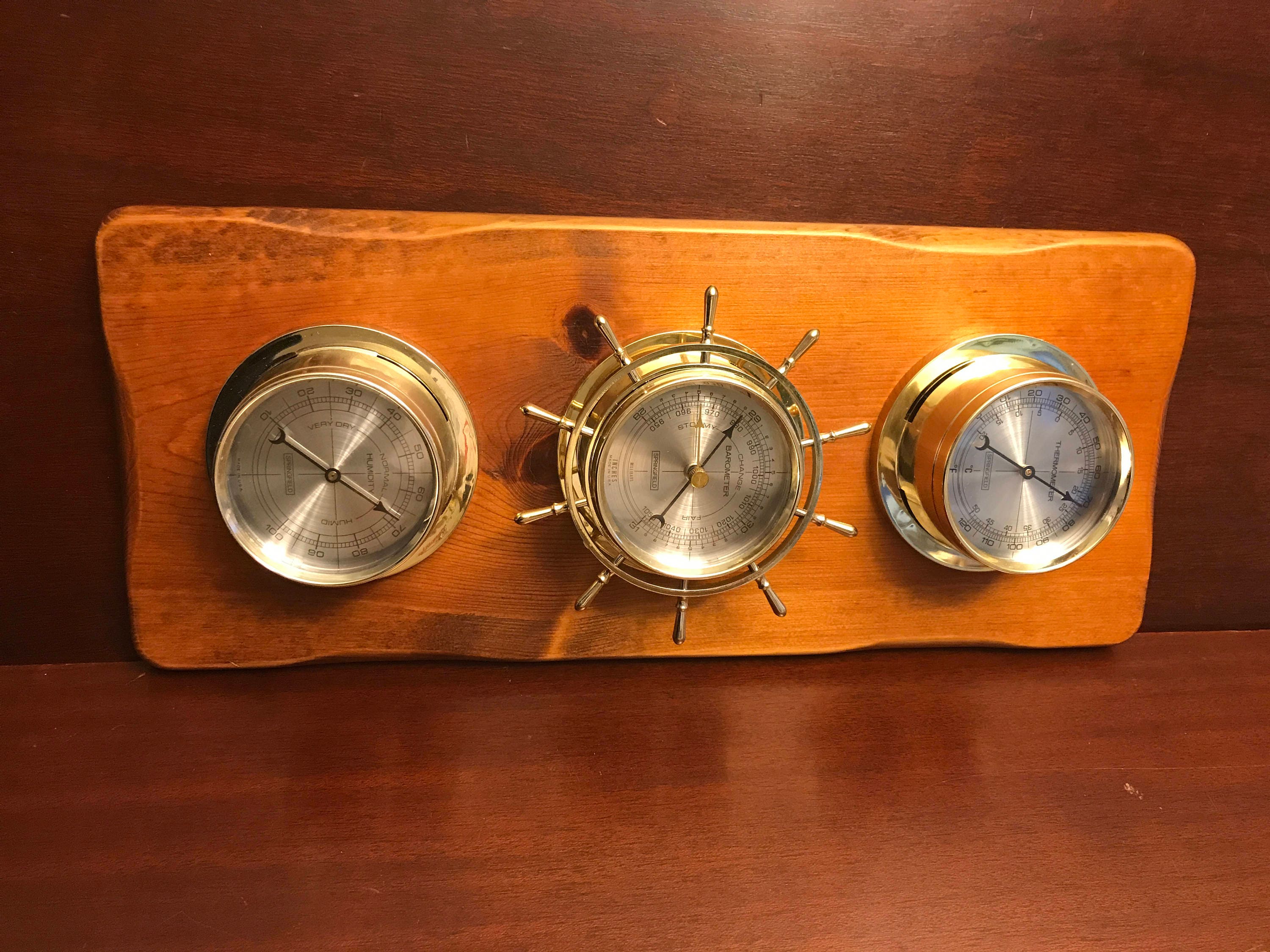 Unique Collectible Airguide Weather Station in solid Wood with lovely brass toned plastic accents. Very Classy