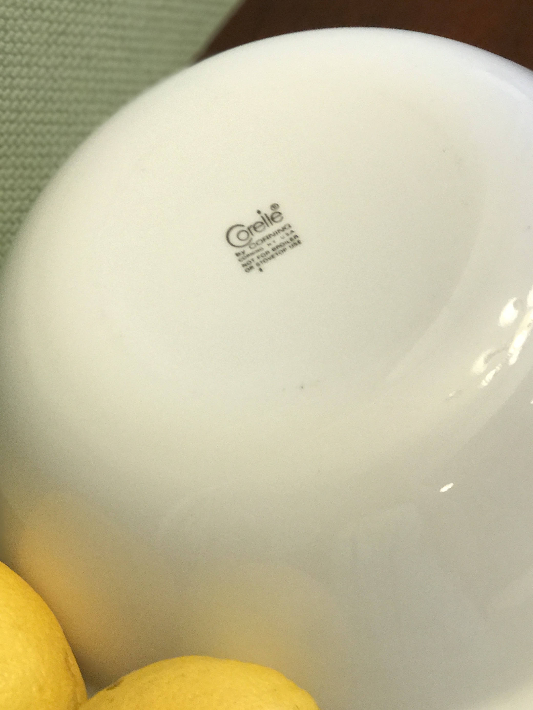 Vintage Citrus 2 tone yellow striped Corelle large Vegetable serving Bowl. Corelle is microwave and dishwasher safe and is break-resistant. I love Corelle dishes! My cupboards are full of them. They are so easy to care for and do not show signs of use as other dishware. This lovely pattern is bright and cheery and would go well in almost any kitchen.