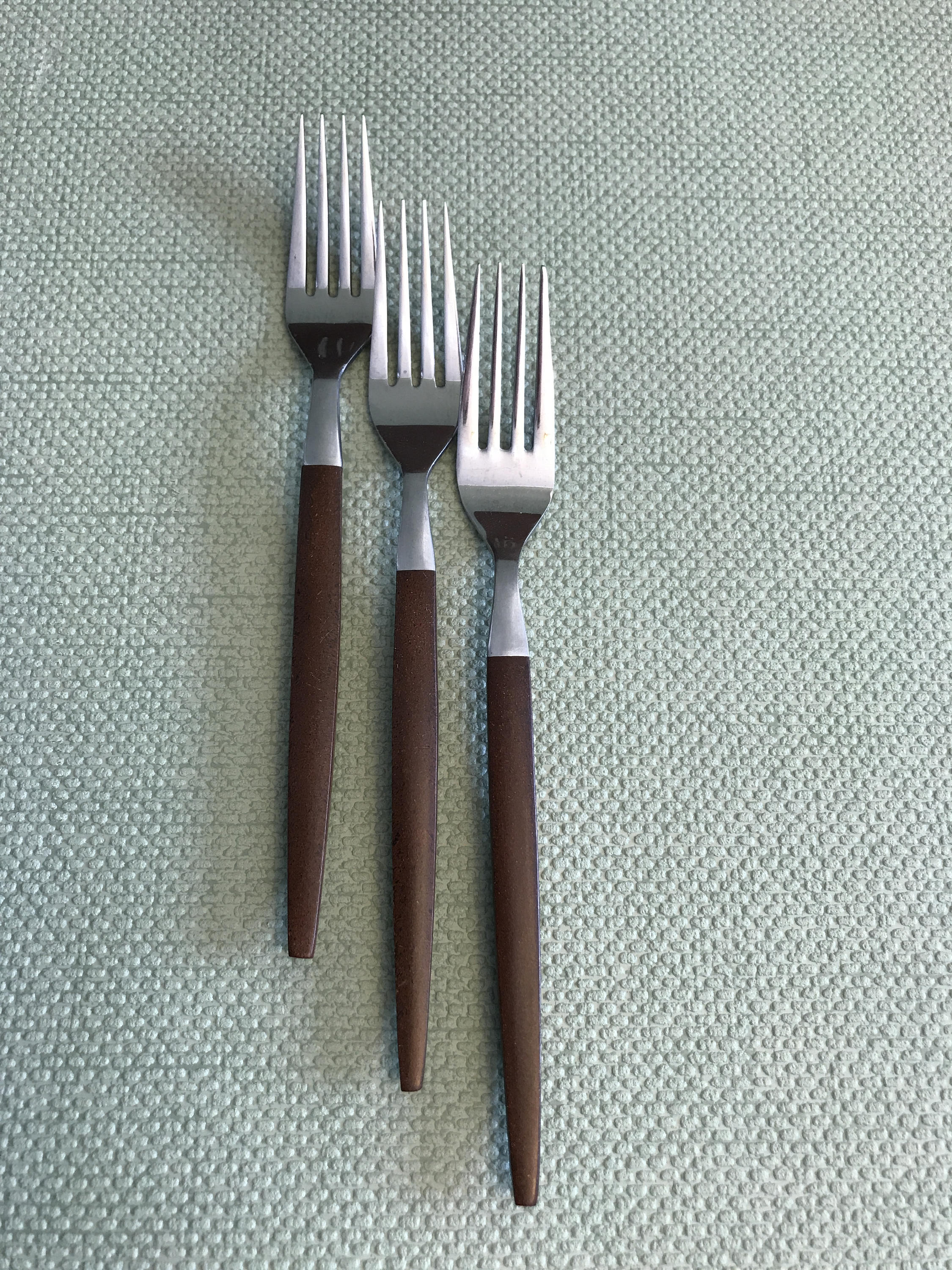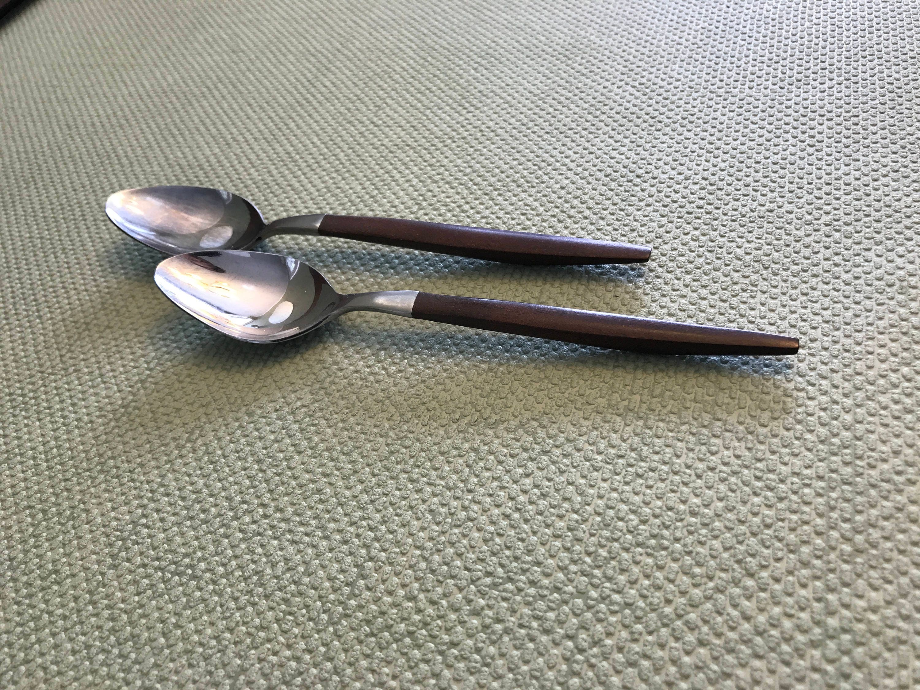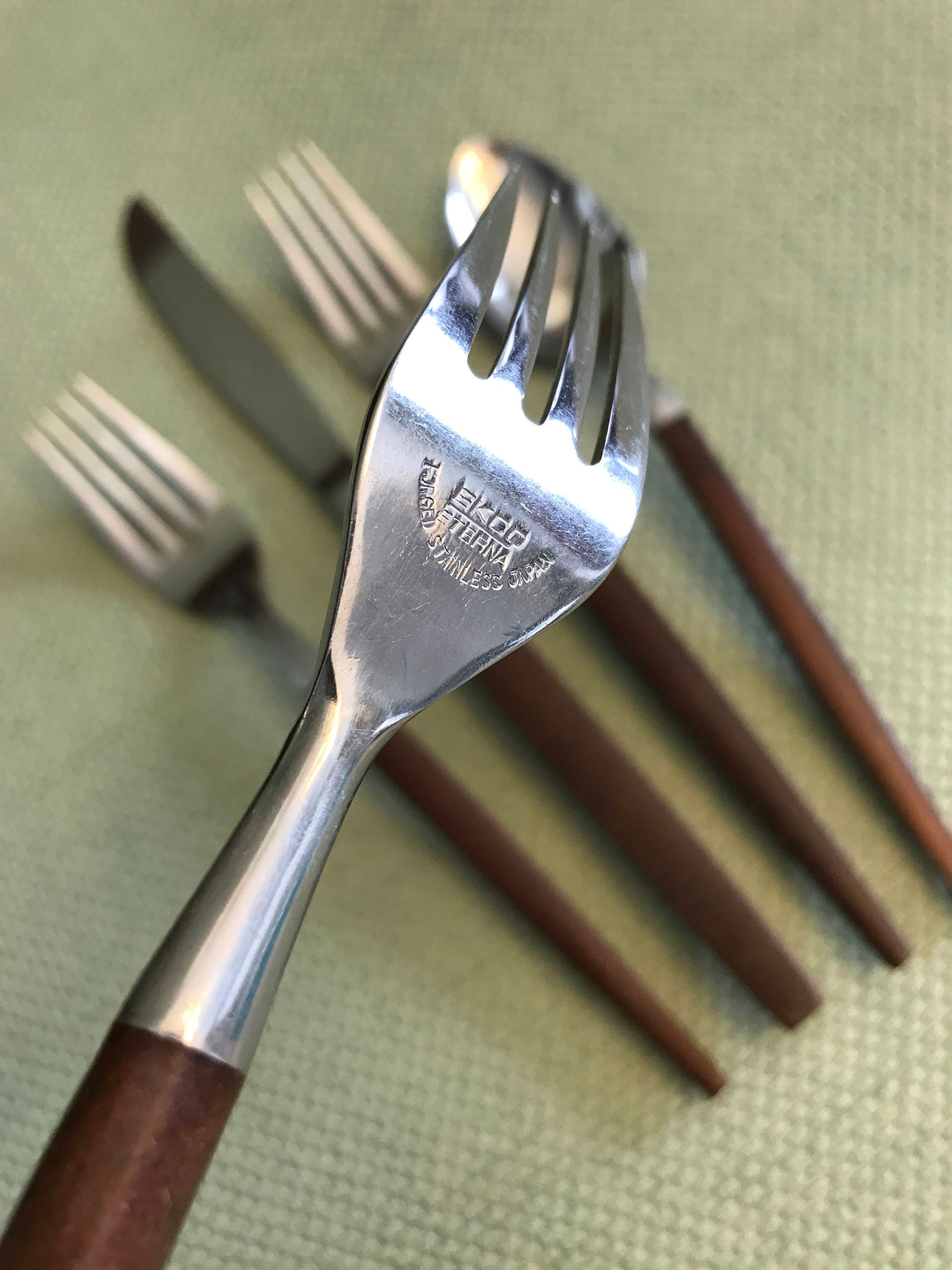 This flatware is in good vintage condition. The stainless steel has some light scratches from use. Handles are in good condition.