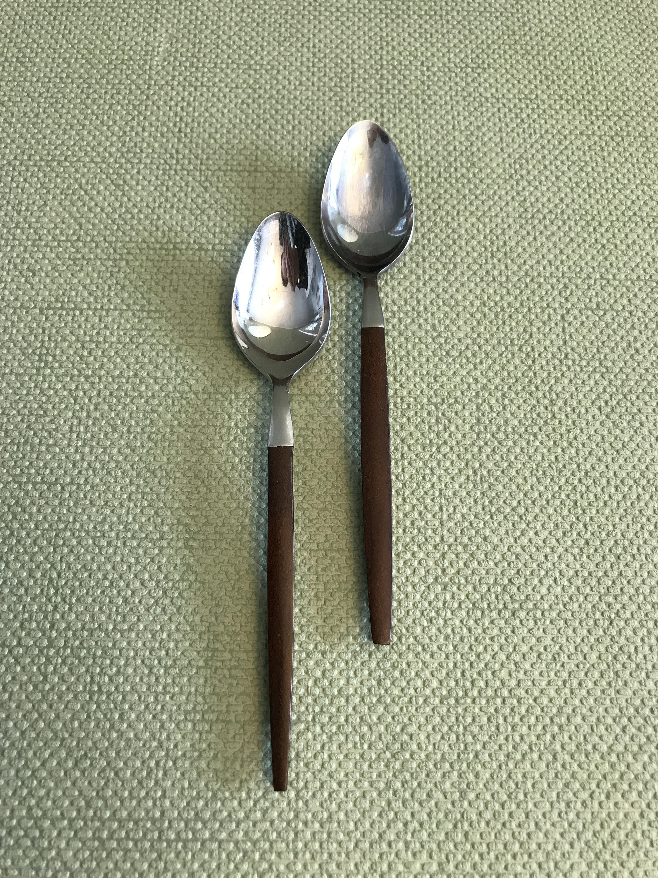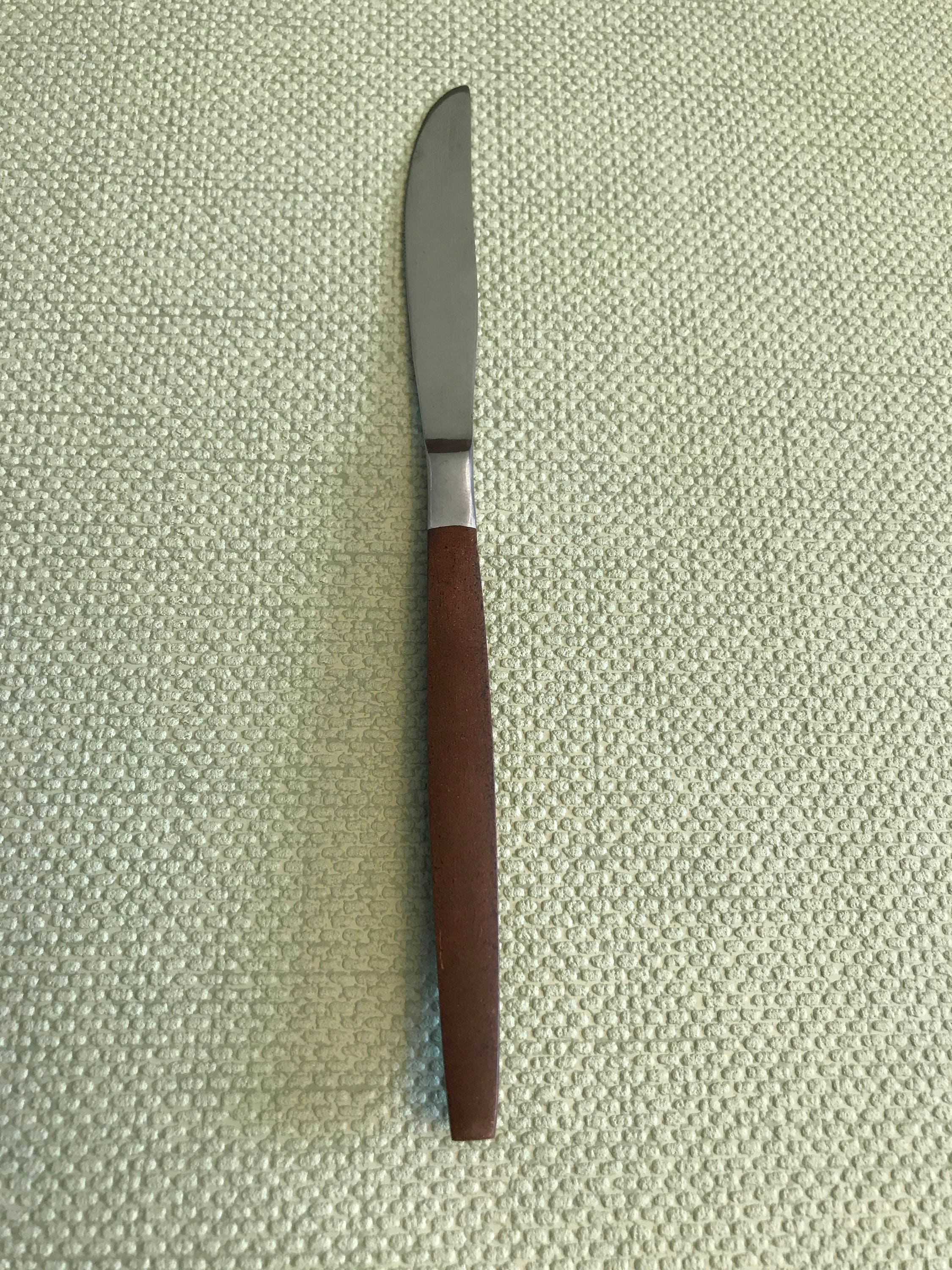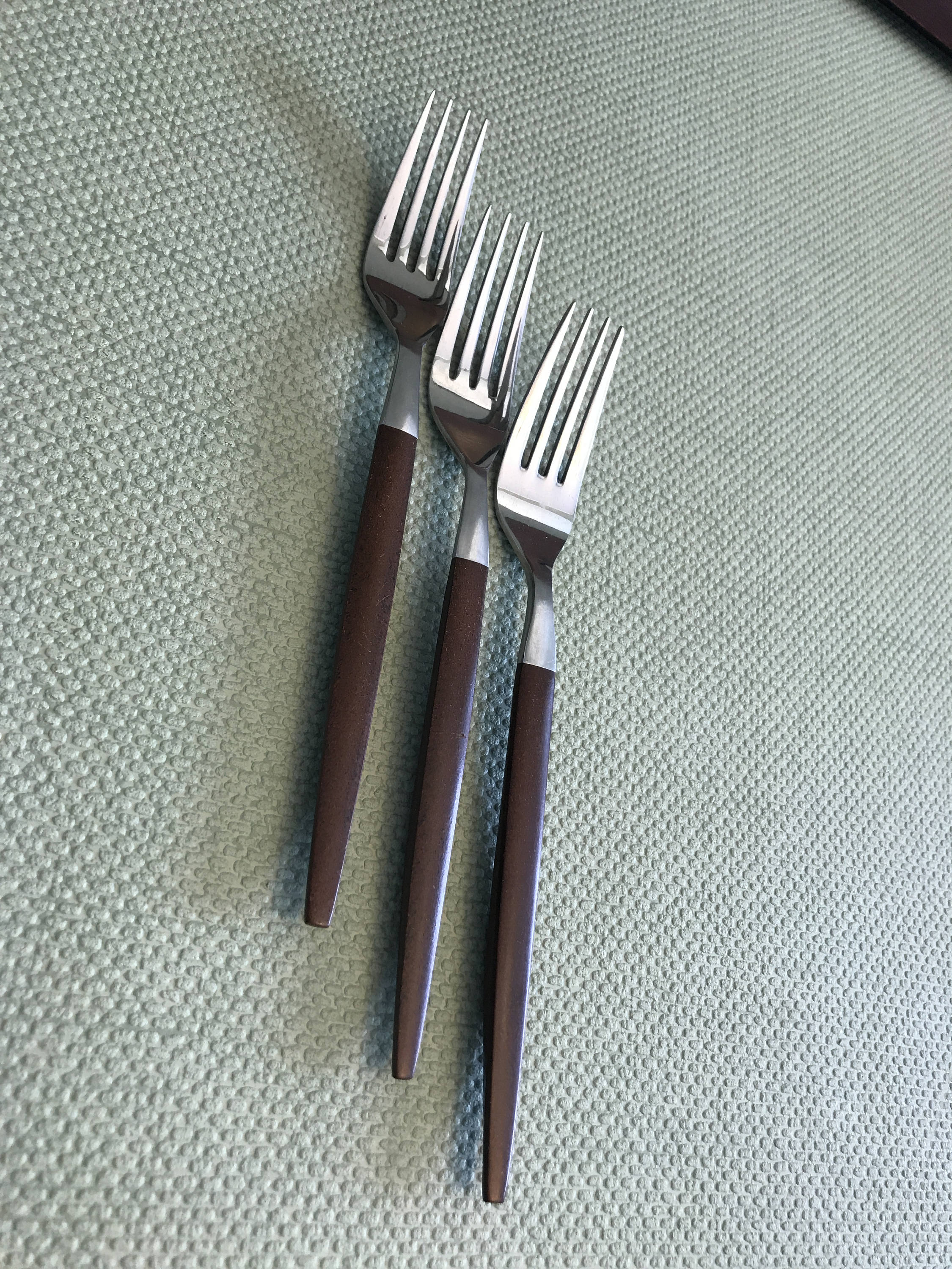 This flatware is in good vintage condition. The stainless steel has some light scratches from use. Handles are in good condition.