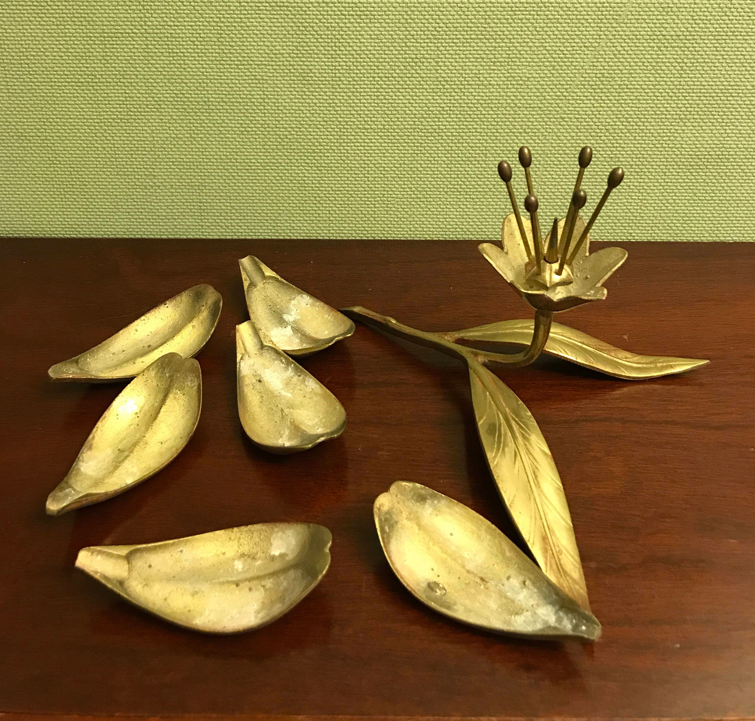 Note; While researching this lovely sculpture; I found the original use was as a Unique ashtray with petals used as individual ashtrays (each have molded cigarette rests).