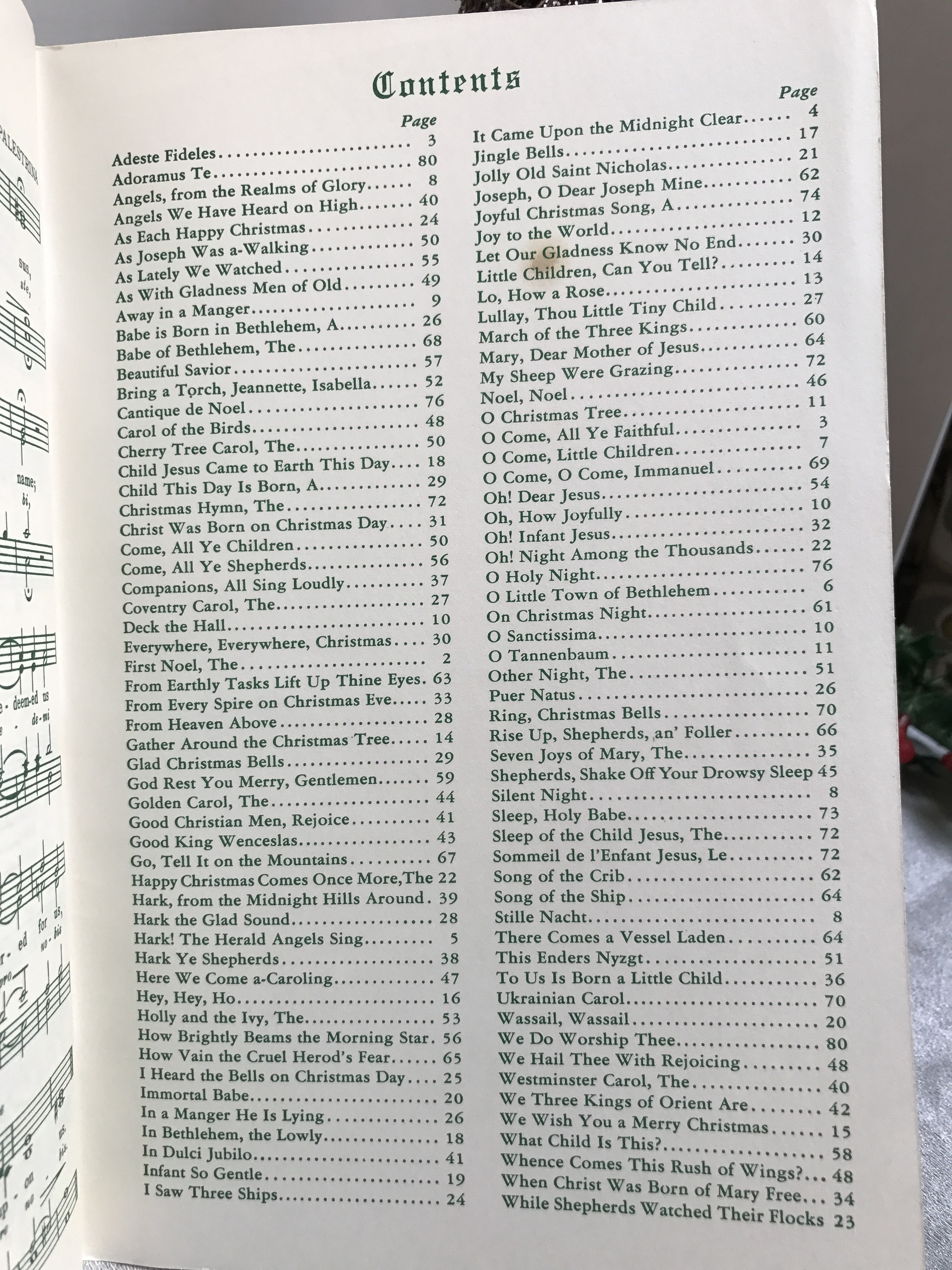 This is a very comprehensive caroling book with 80 pages in total, a picture of the contents shows the complete list of songs in this book.