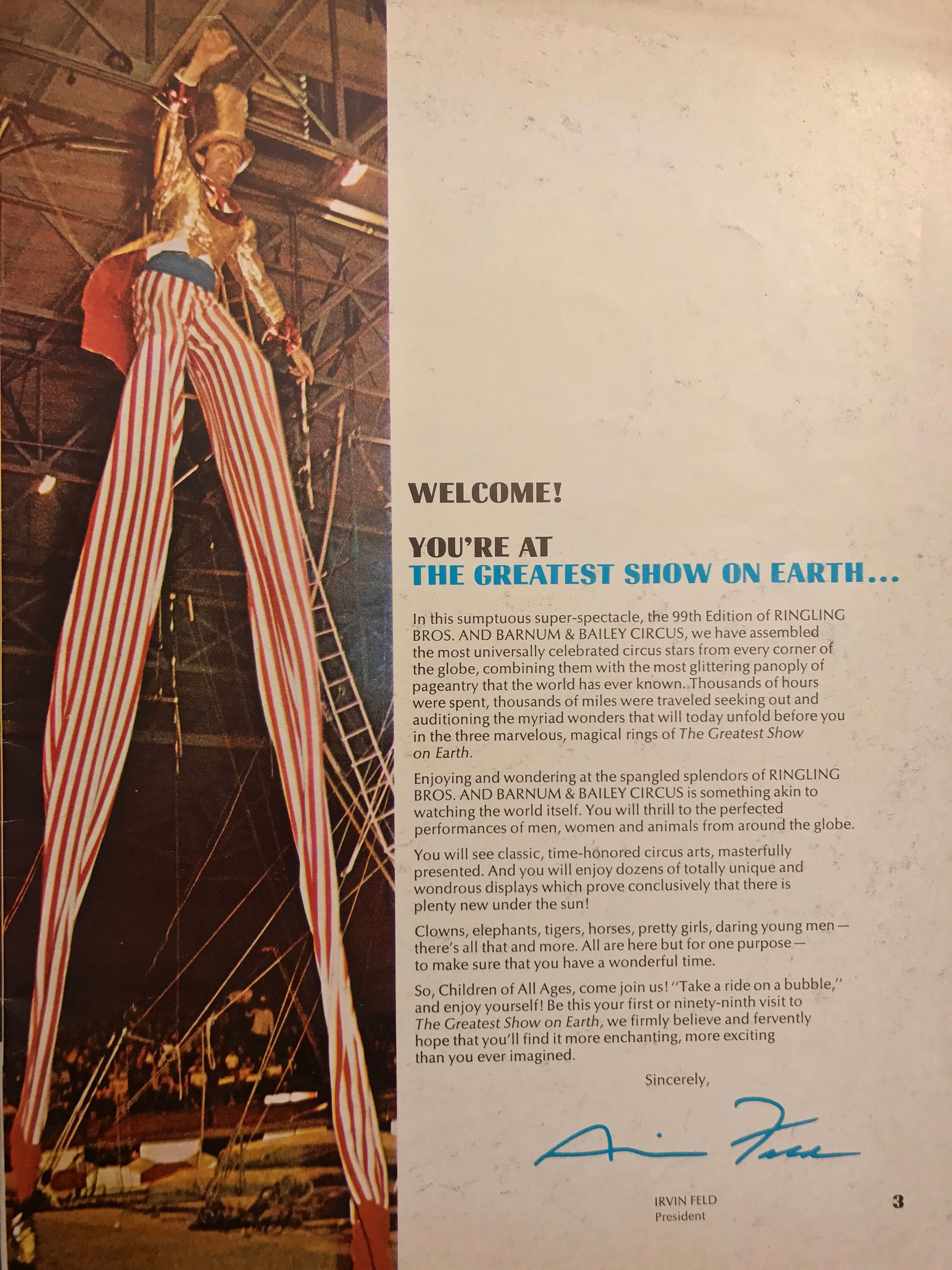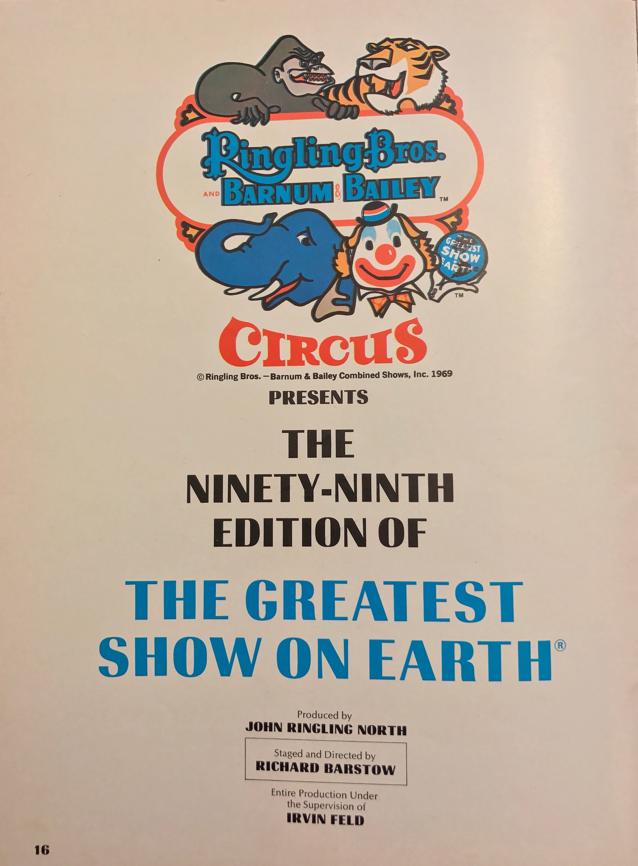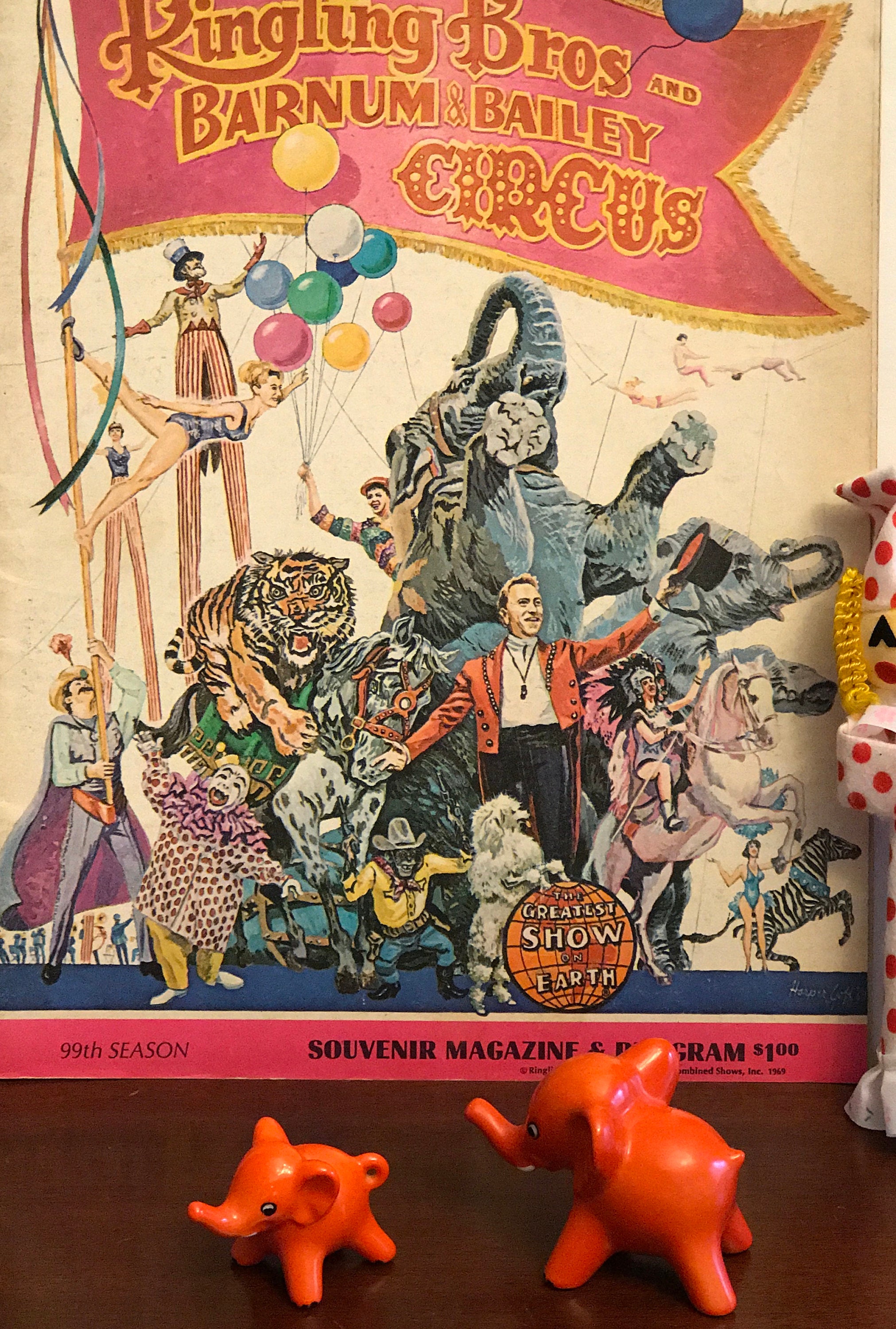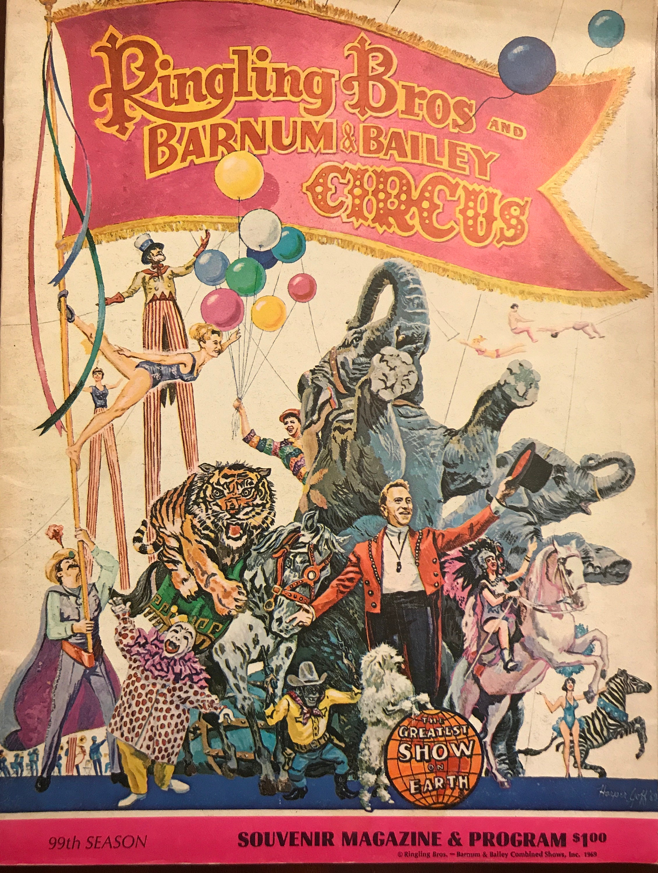 Vintage 99th Season Ringling Brothers and Barnum & Bailey Circus souvenir program and magazine. Published in 1969 for the Greatest Show on Earth this fabulous program and magazine is a must have for collectors of Circus memorabilia.