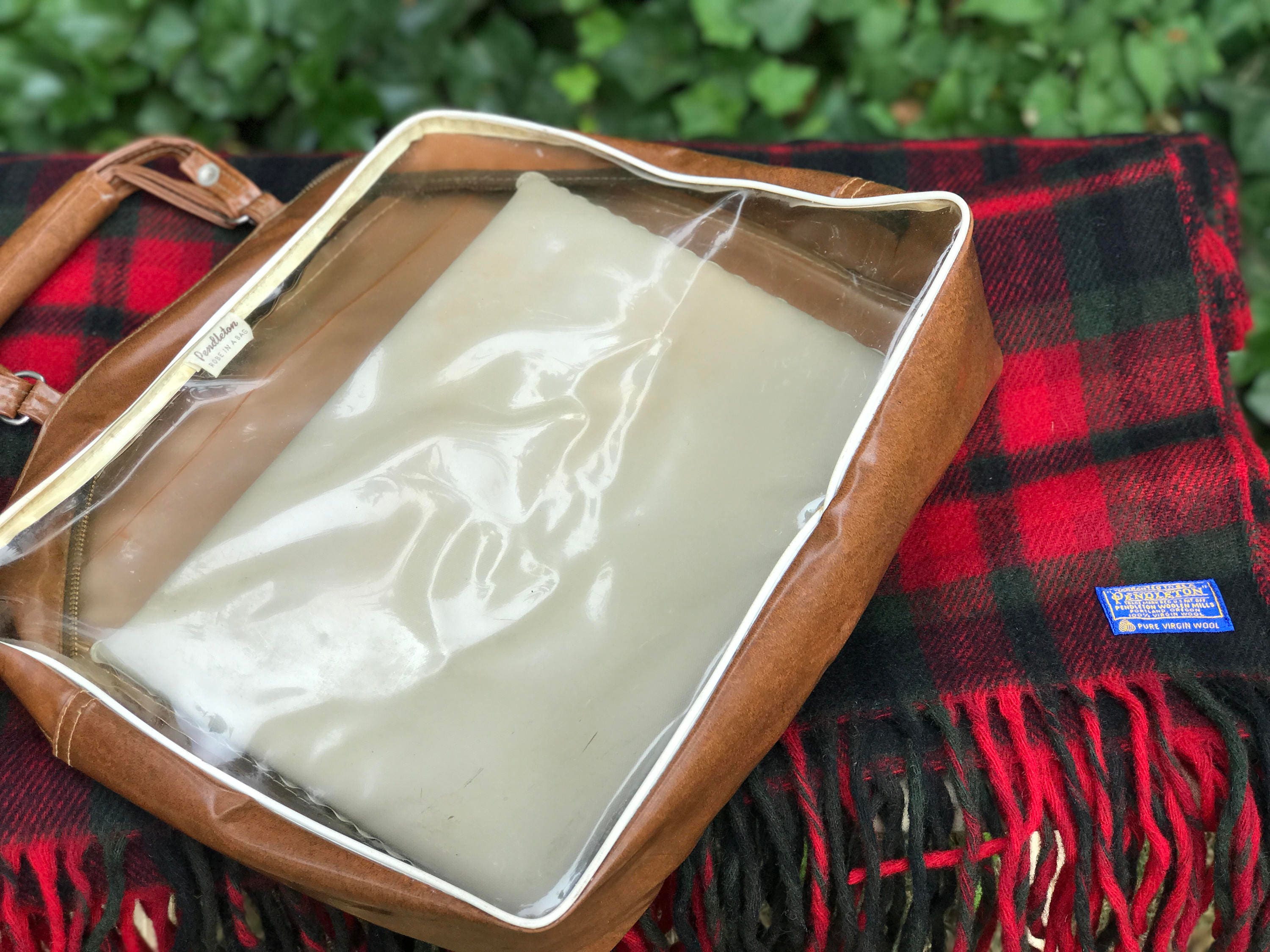 Vintage Pendleton Woolen Mills Blanket. In Highland Plaid color #553. Wonderful Pendleton "Robe in a Bag". This Is a medium sized Blanket in a vinyl carrying case with small cushion for a bench seat at a stadium. Made to keep conveniently stored in your car for use when on the go, it would also be a gorgeous throw Blanket in a western themed room. I love the look of these blankets at the foot of a bed for chilly nights.
