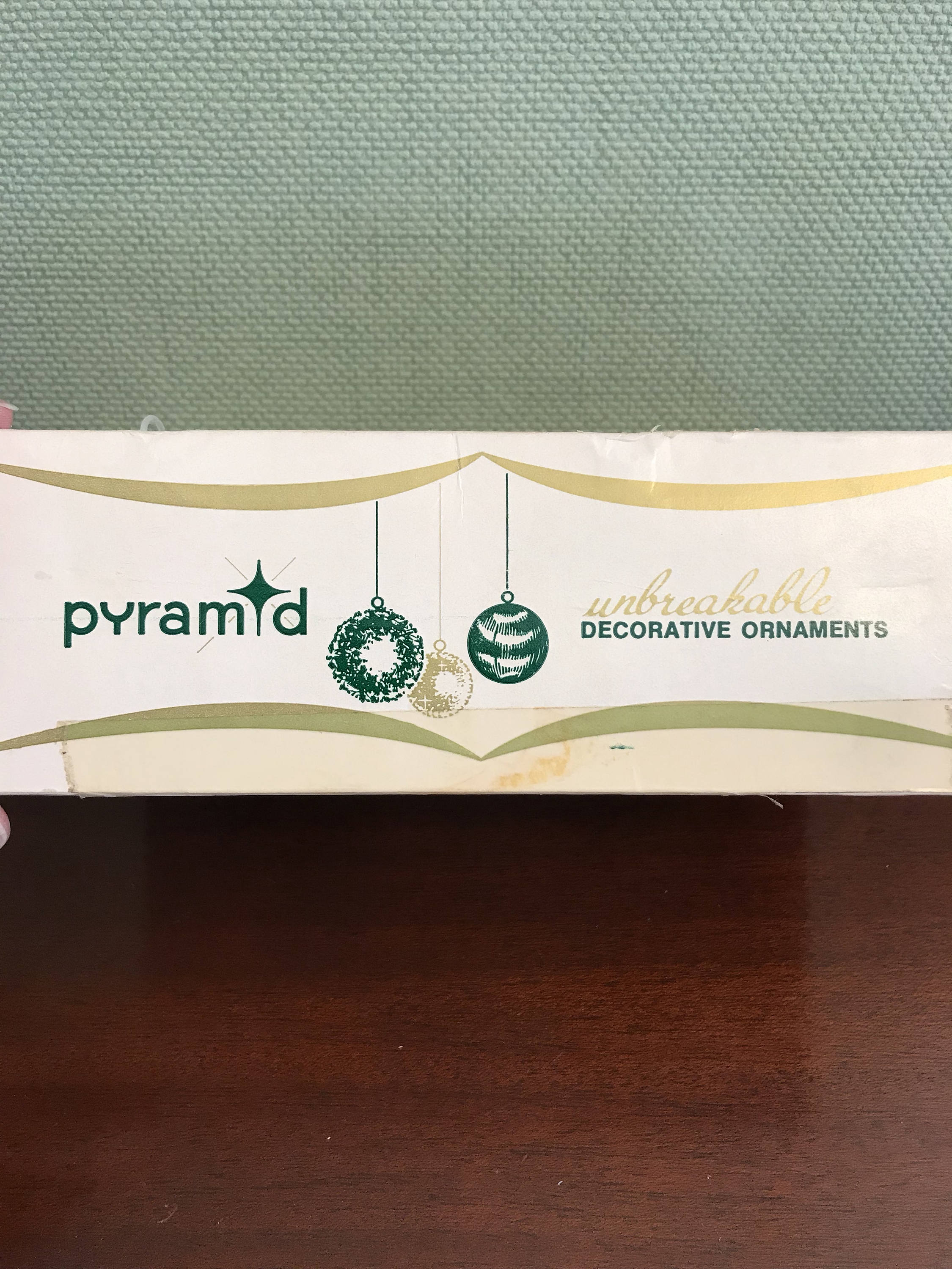 This is a unique Vintage set of 6 white Snowball Christmas Ornaments in the original display box. I love the fun look of these Christmas Balls. A wonderful addition to your vintage Christmas decor, these Christmas balls are perfect for the tree or display in a large bowl for a unique centerpiece! This box contains 6 original Pyramid Balls.