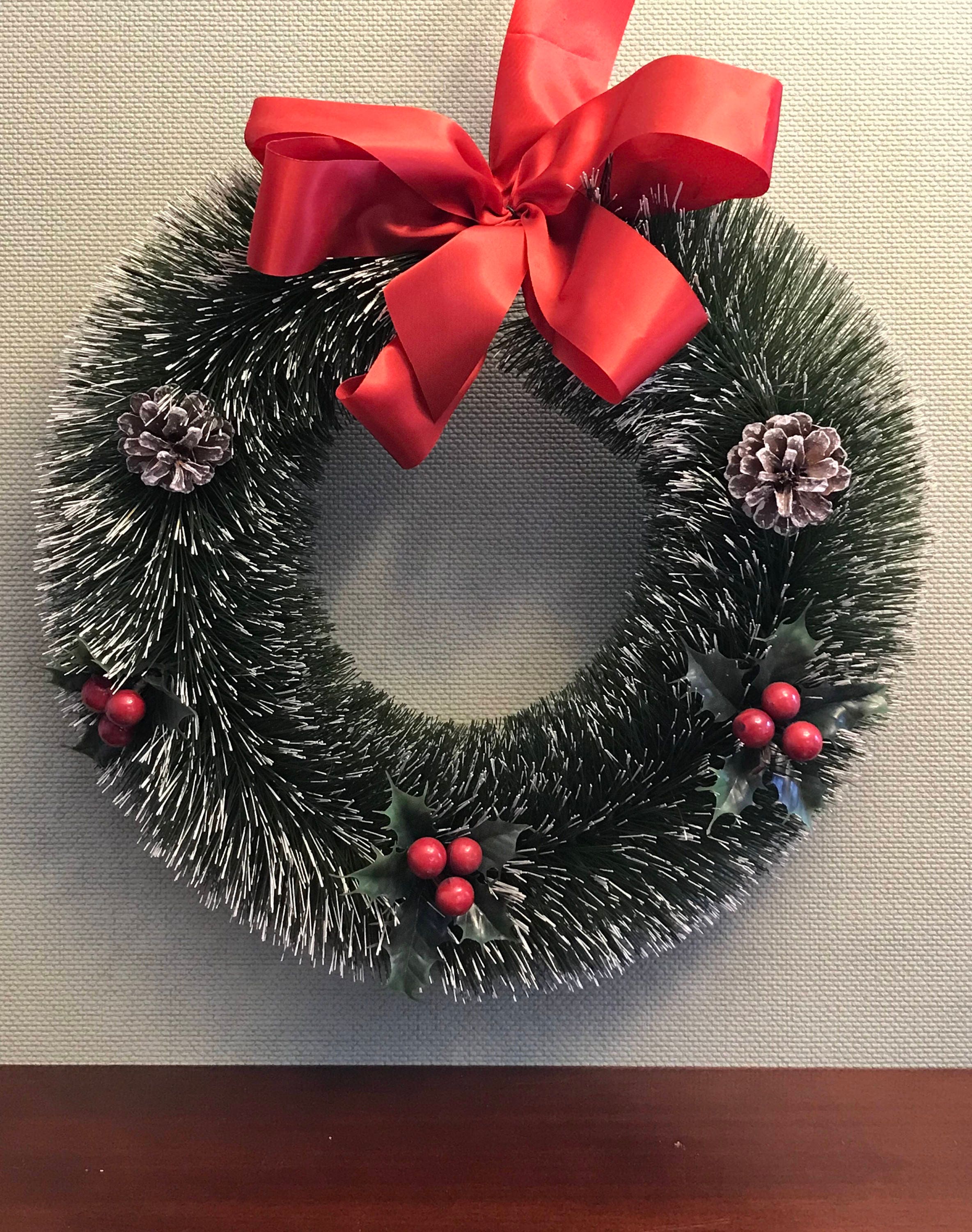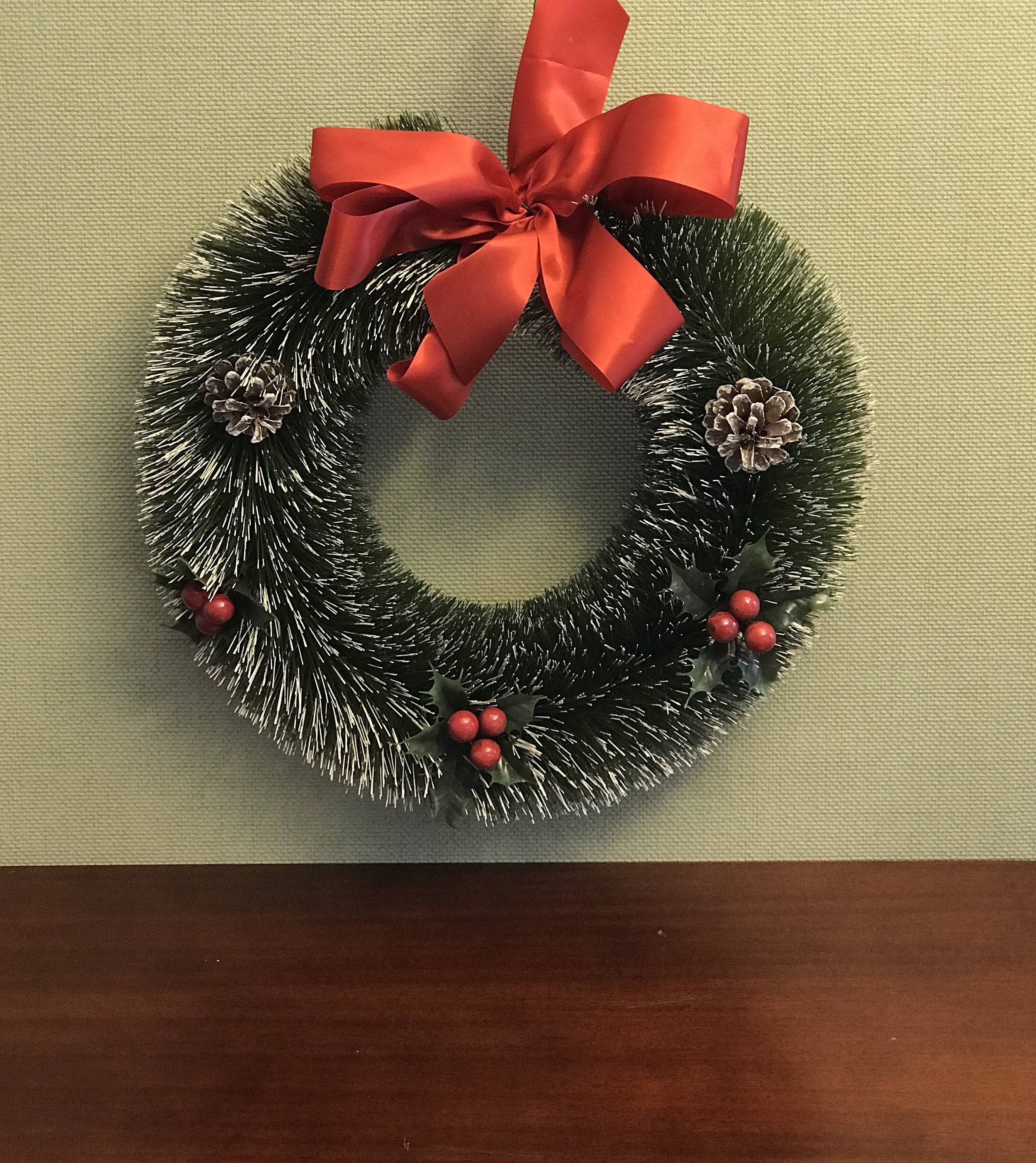 These are very popular now in major department stores, but this is an authentic vintage bottle brush wreath from an estate sale.