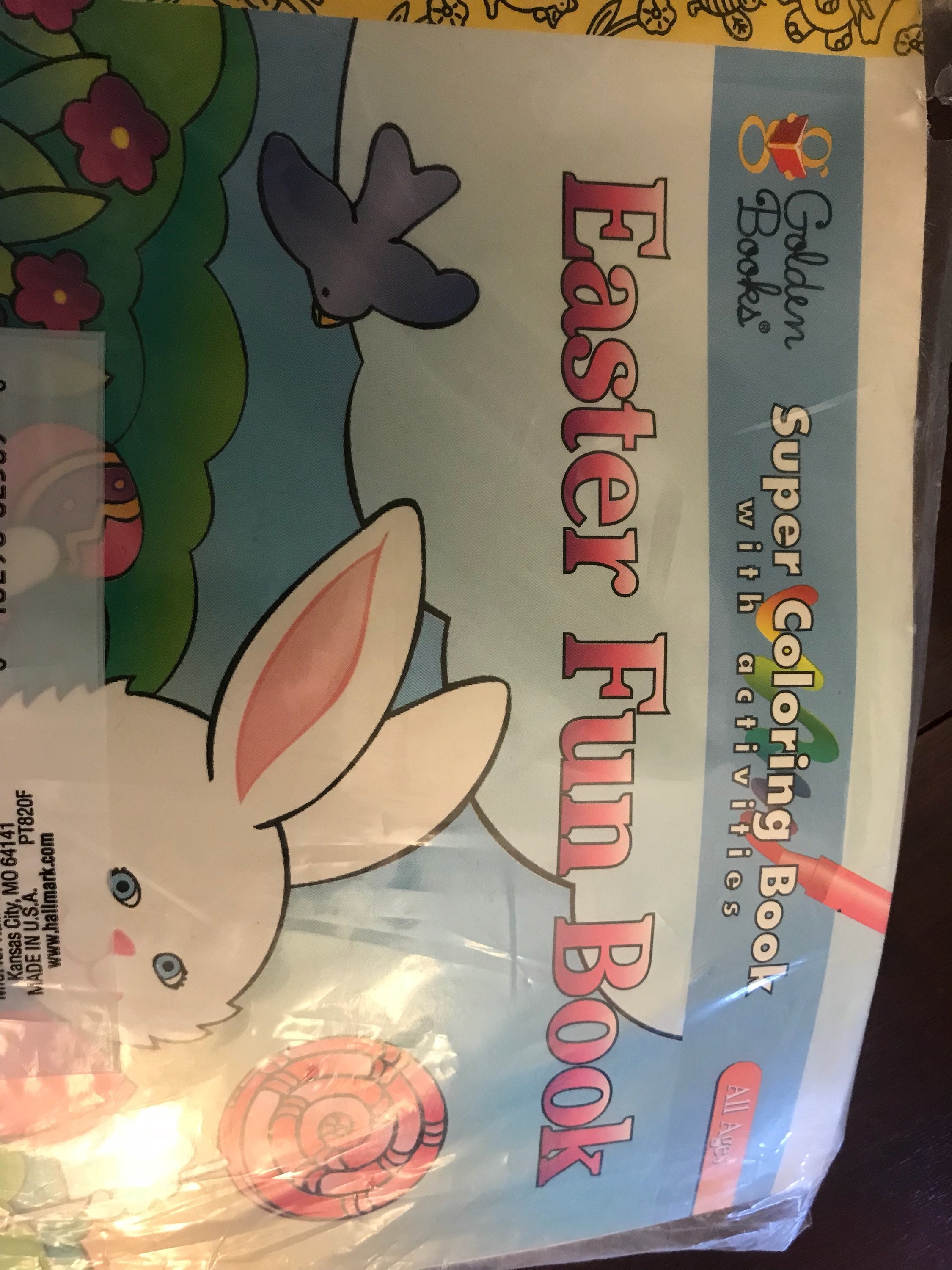 This is a great vintage Easter basket kit. It combines a super coloring book with activities made by Little Golden Books. Titled “Easter fun book” it has easy tear out pages. The coloring book is made for all ages. The coloring book comes with an Easter basket assessories kit from Hallmark expressions.