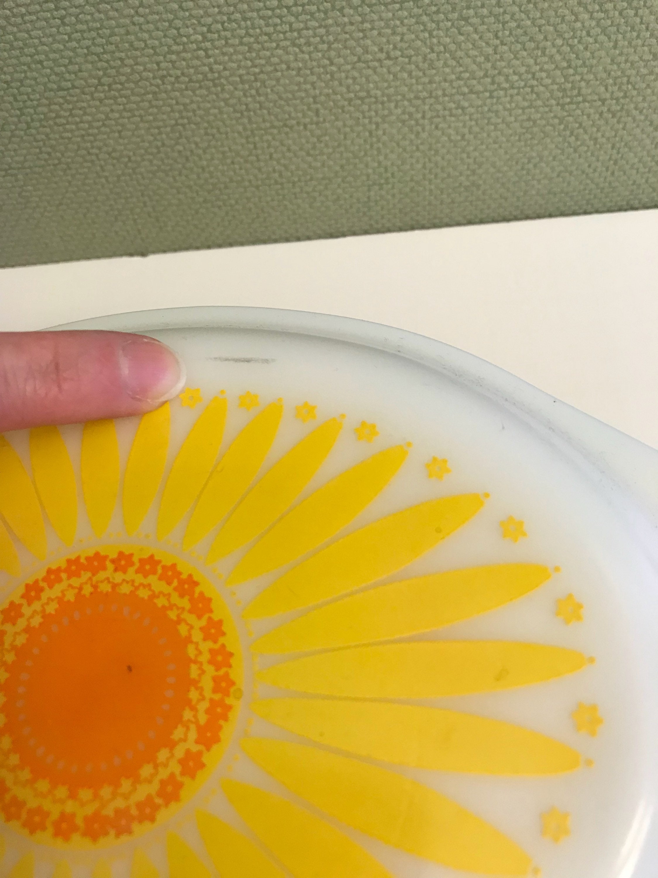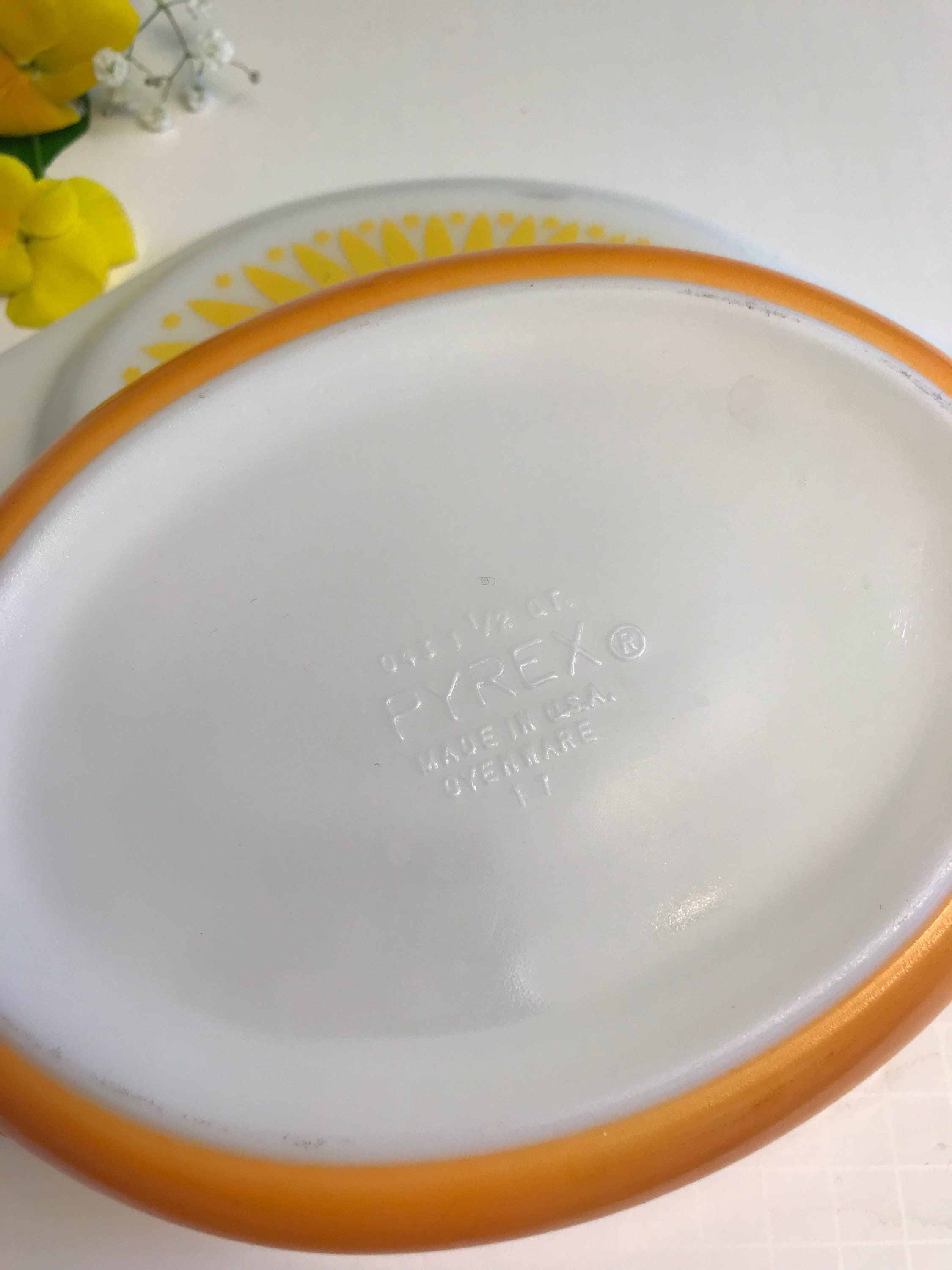• This is the Daisy pattern, sometimes referred to as Sunflower Pyrex.