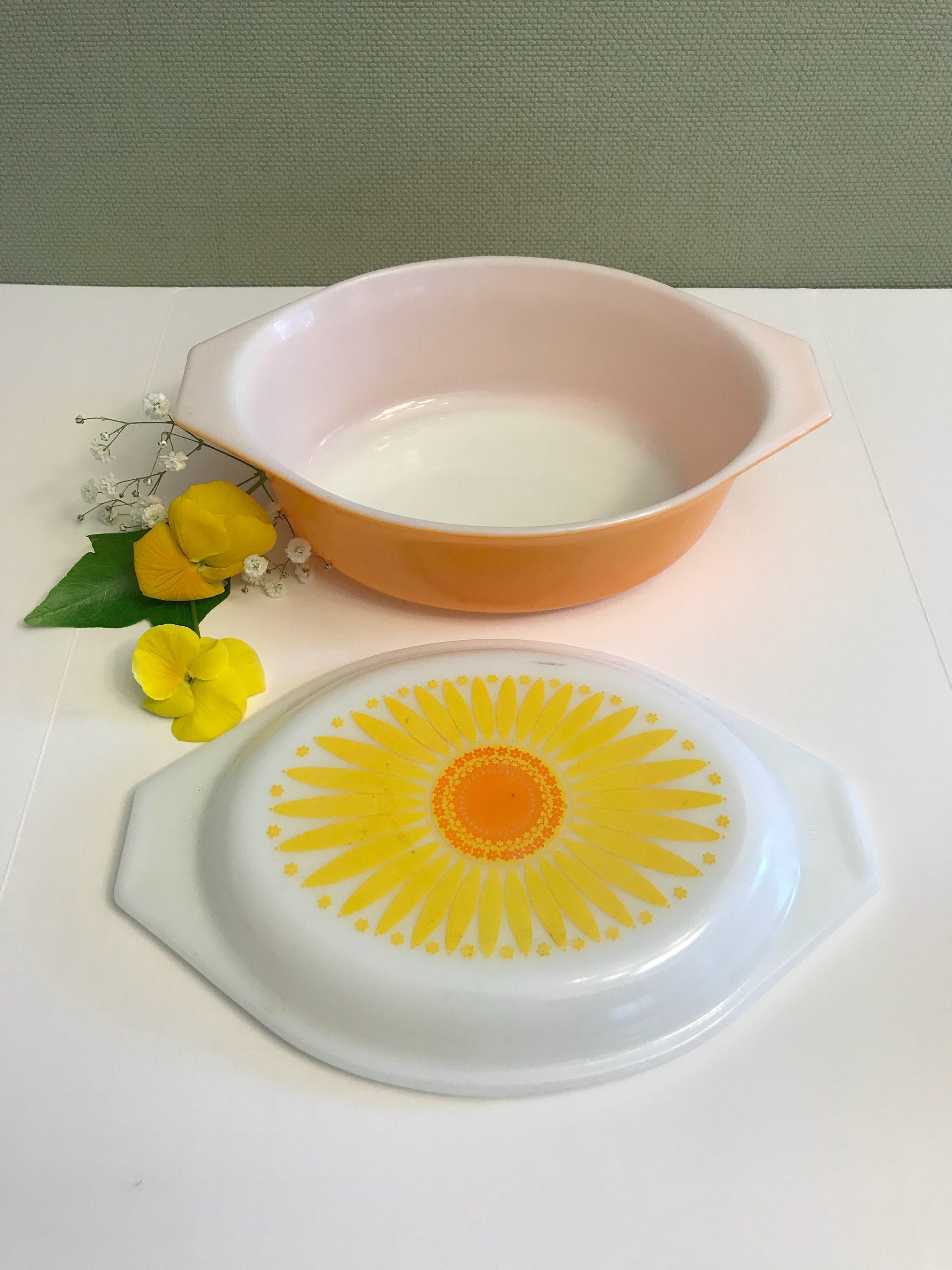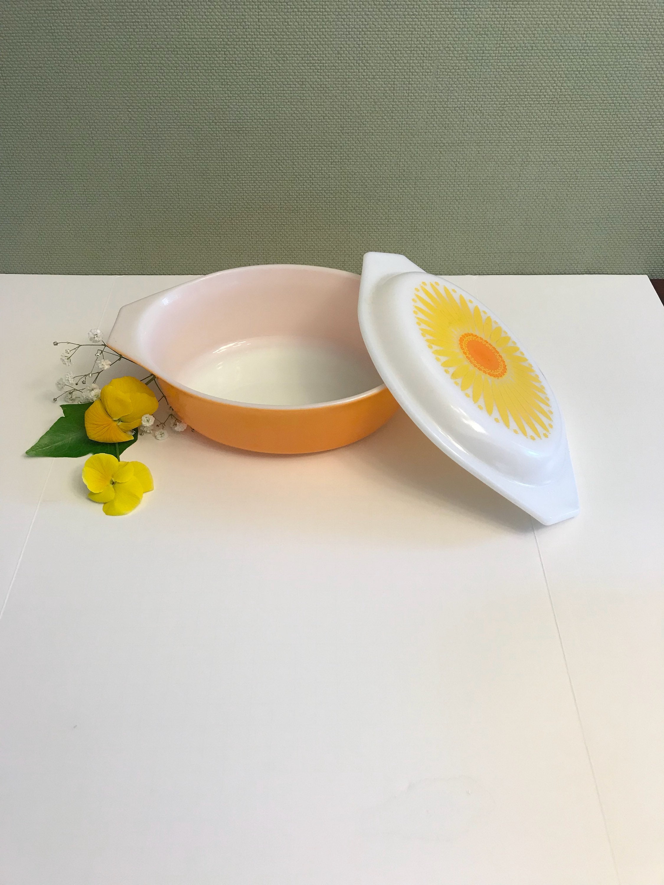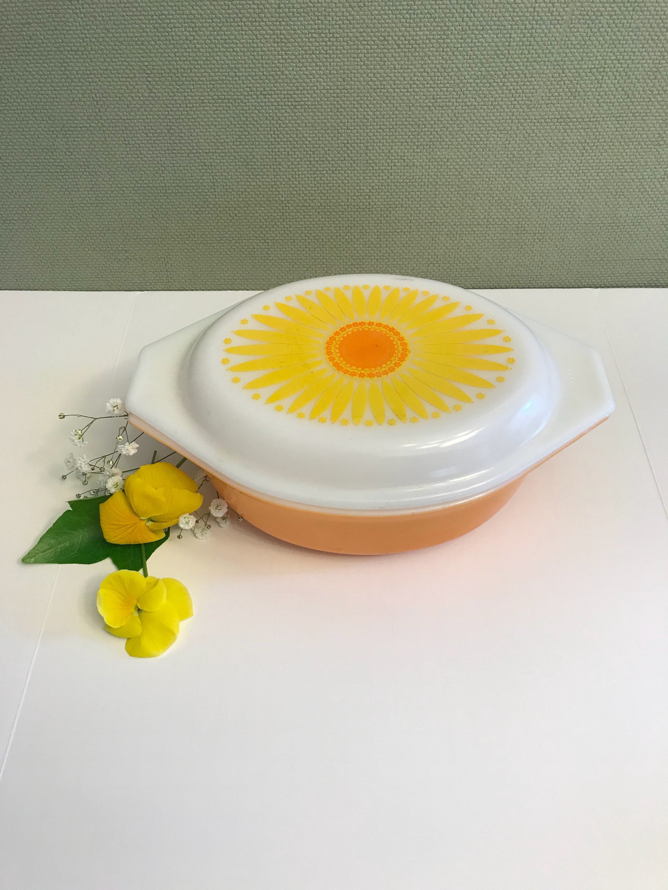 Vintage Pyrex Orange Daisy Casserole dish 043 This lovely Casserole is part of the