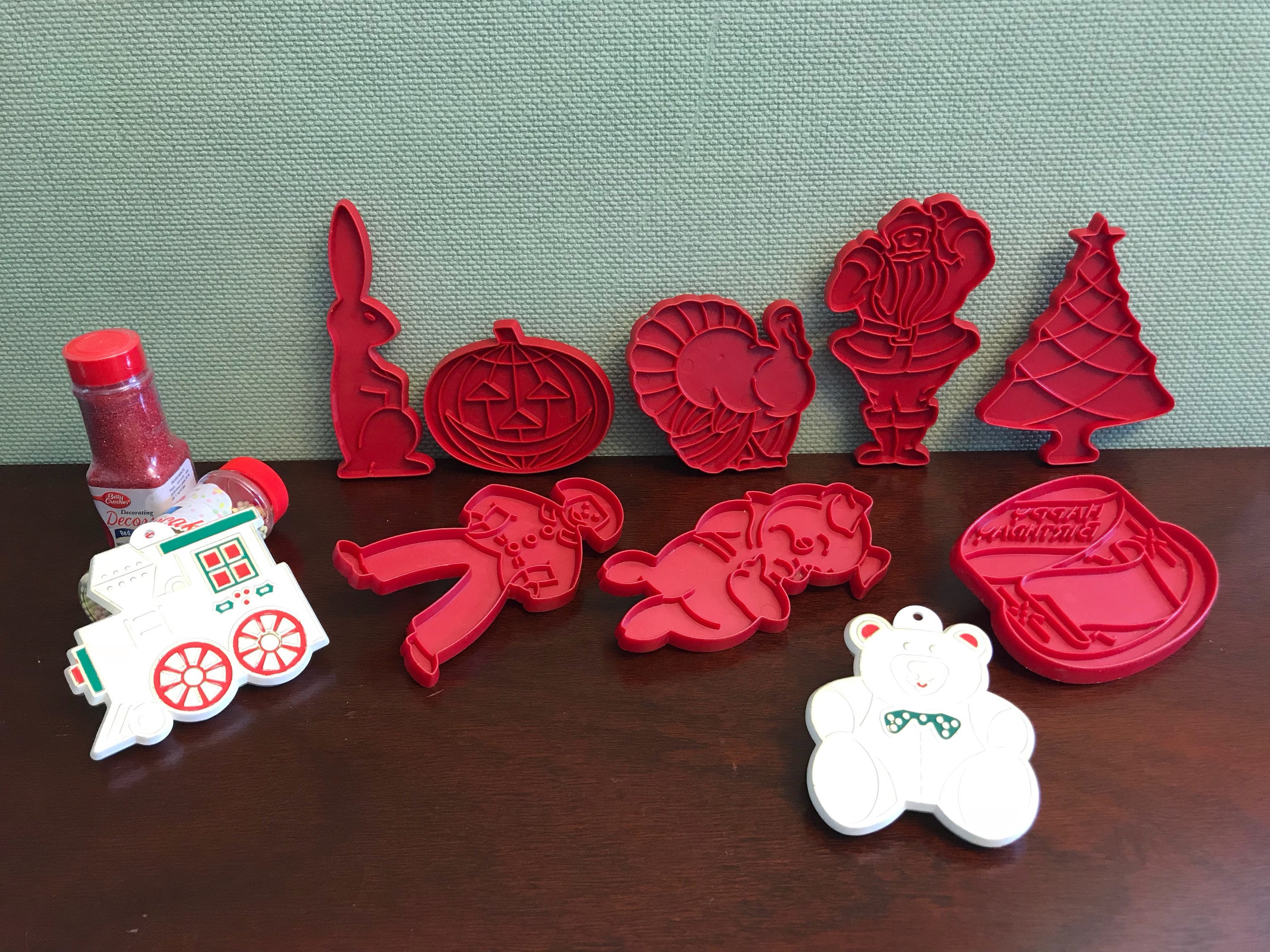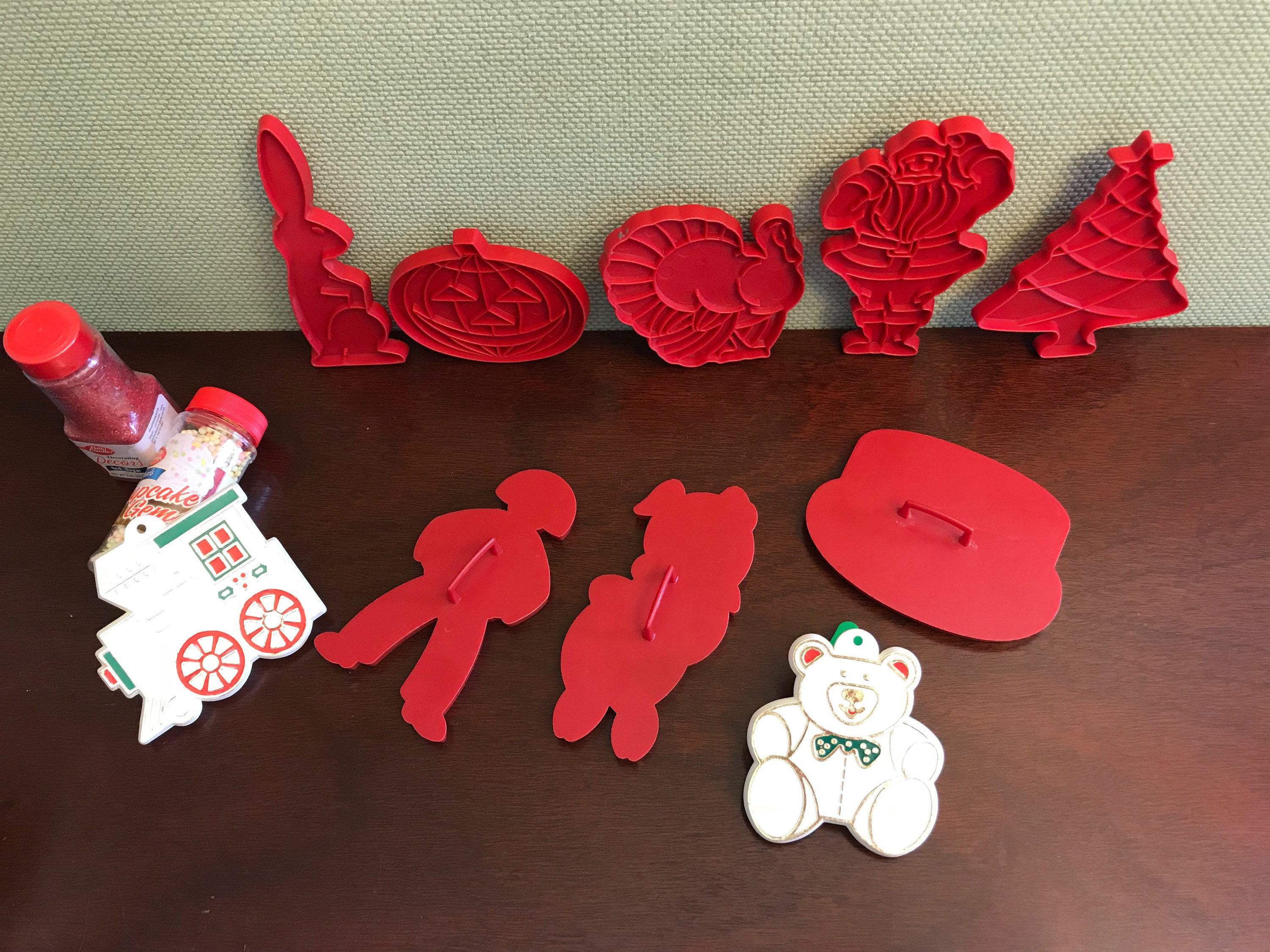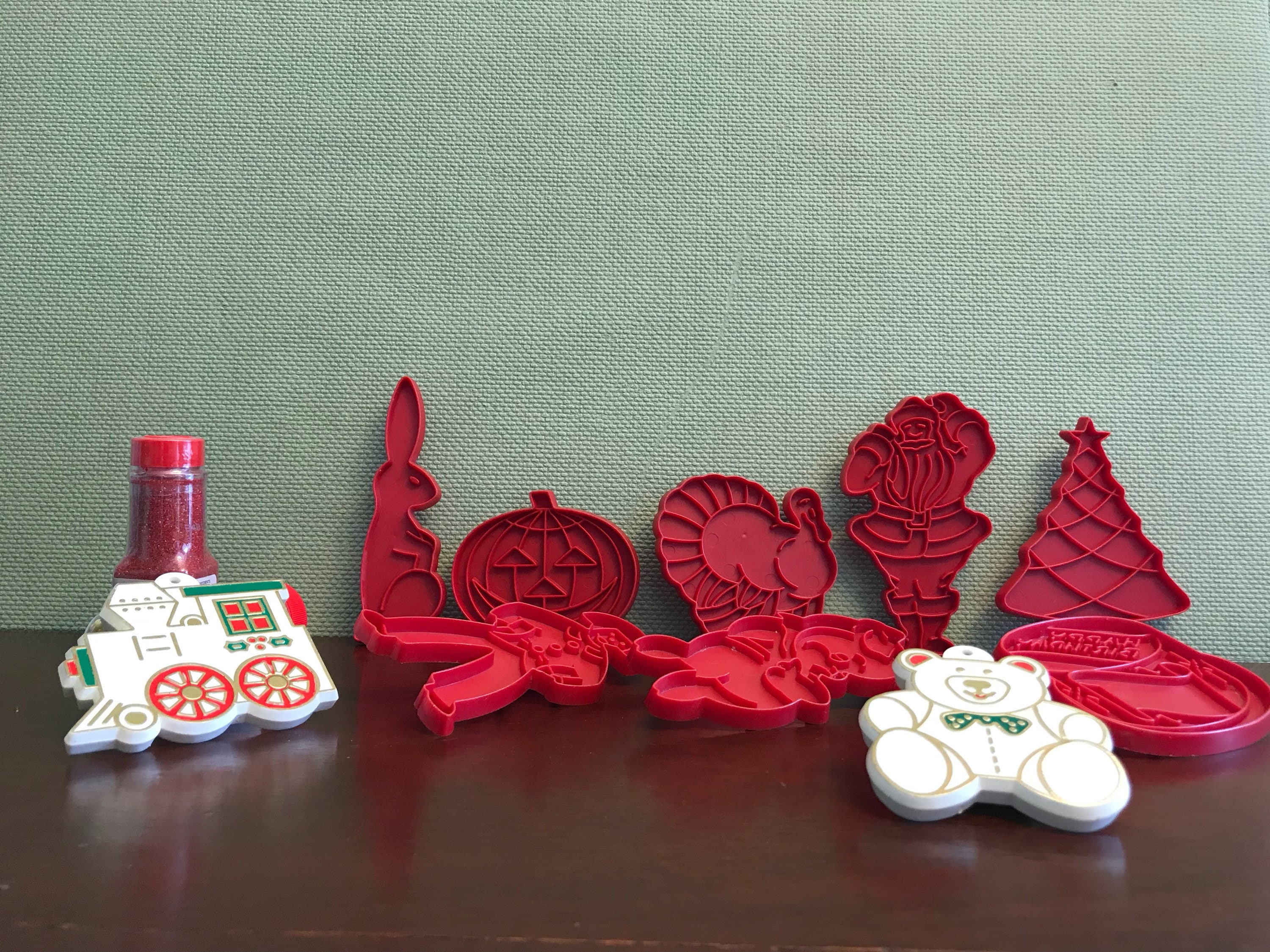 This is a wonderful large vintage set of Tupperware holiday cookie cutters.