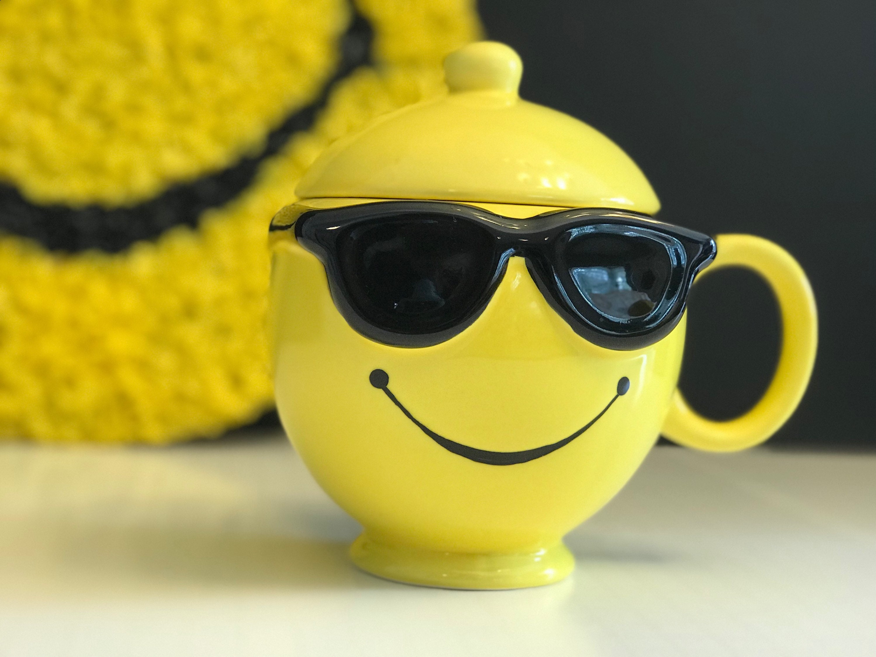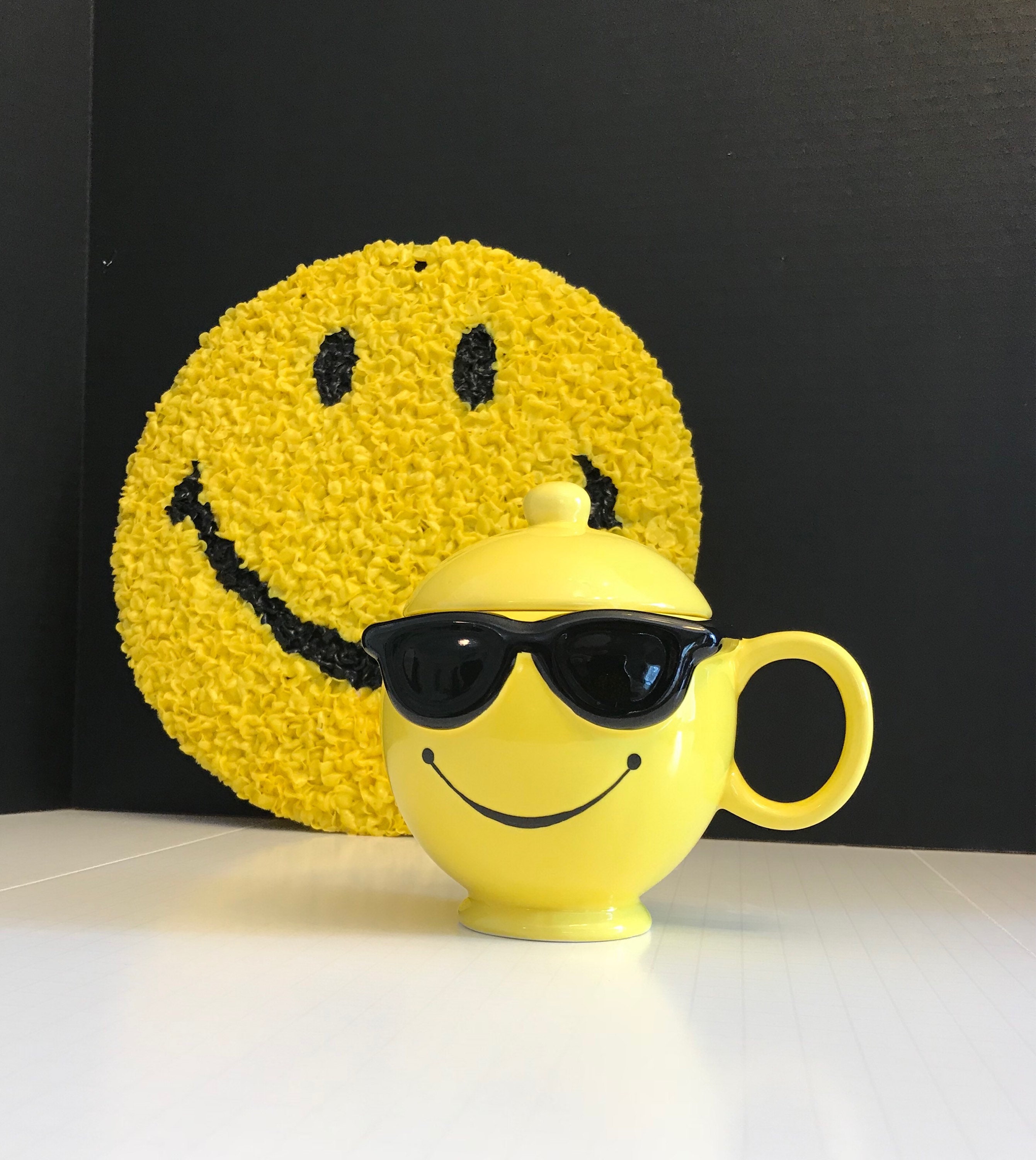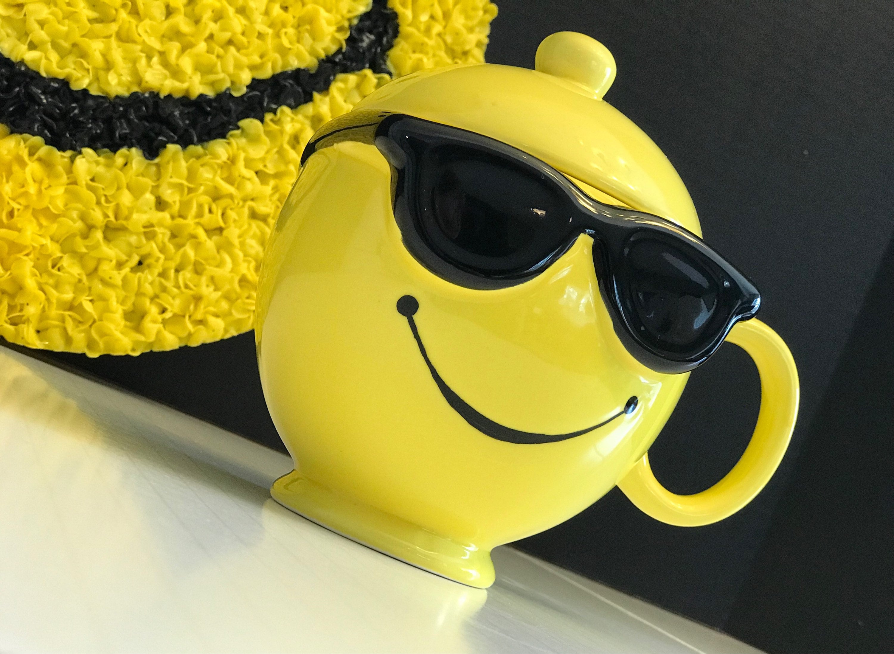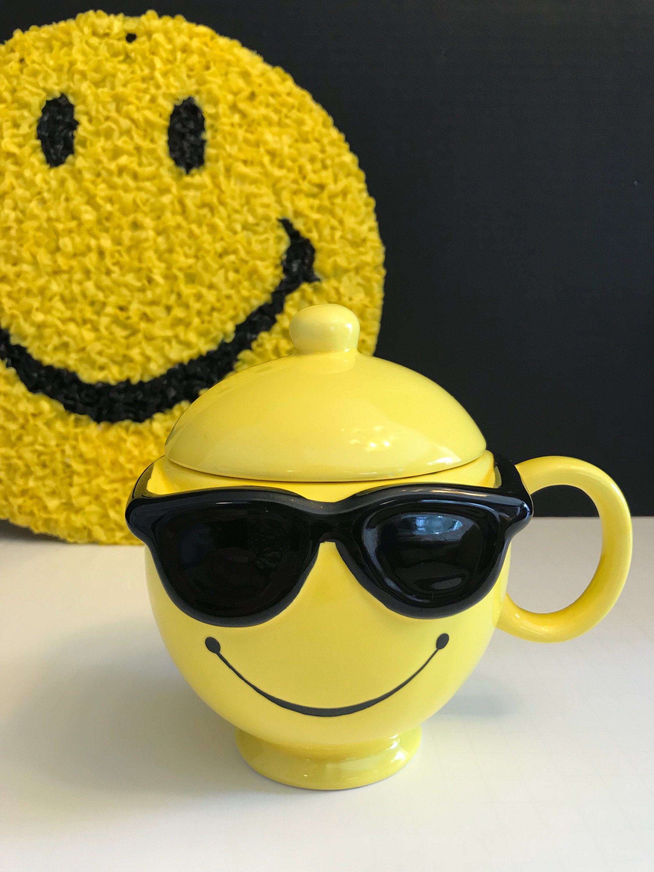 Vintage “Joe Cool” Yellow smiley face gift mug. I love the look of this great Smiley Mug with 80s style sunglasses.