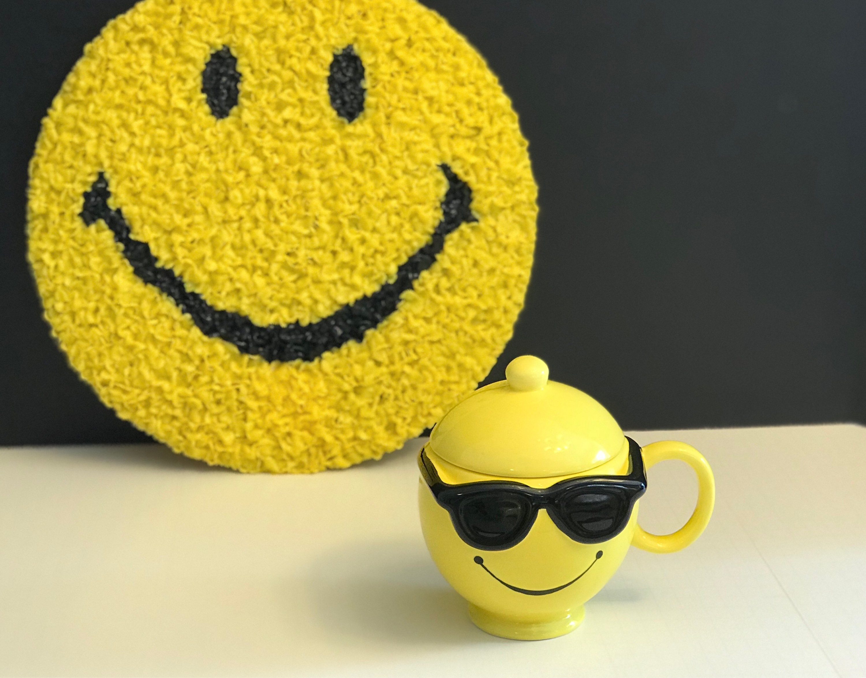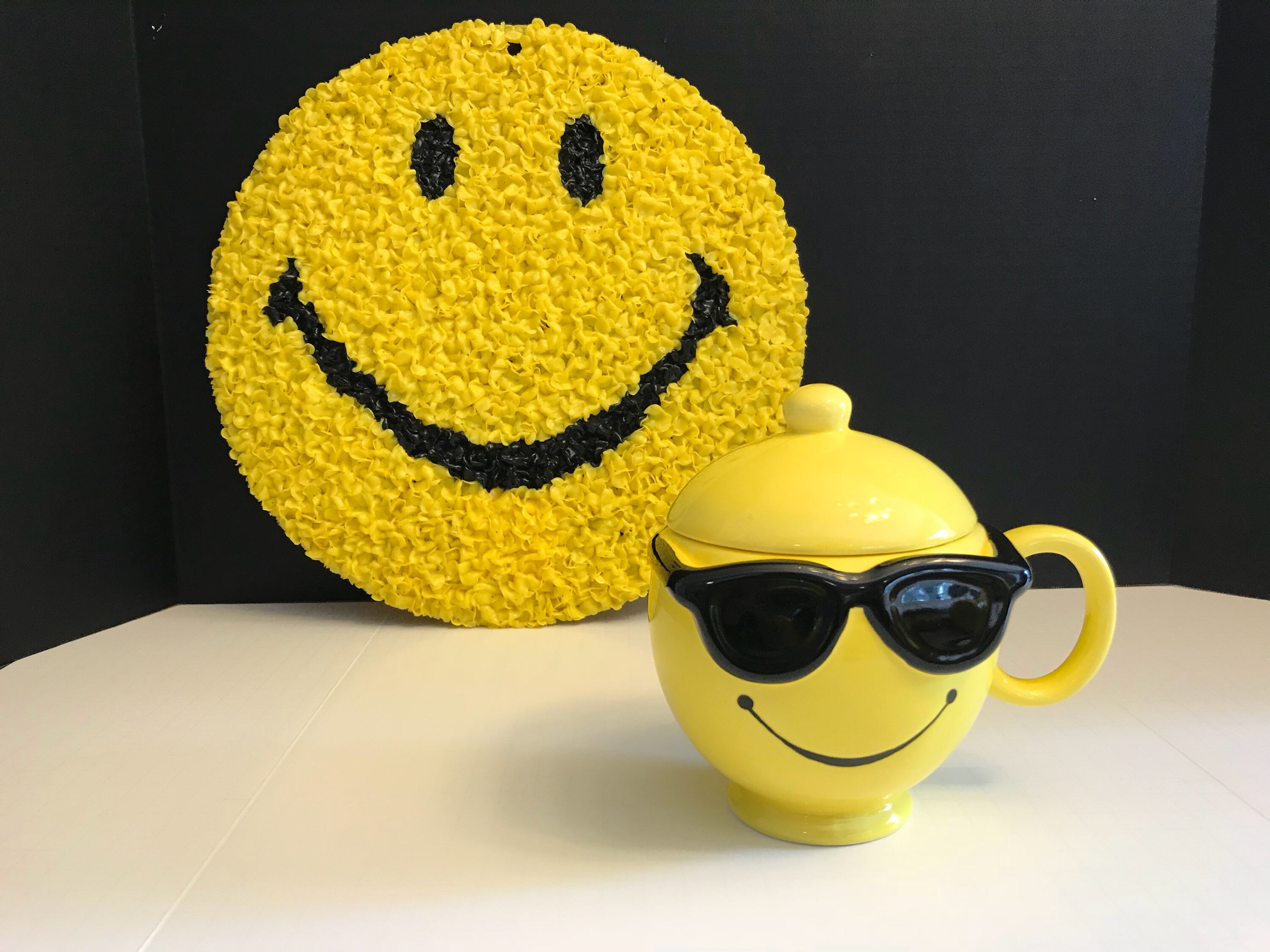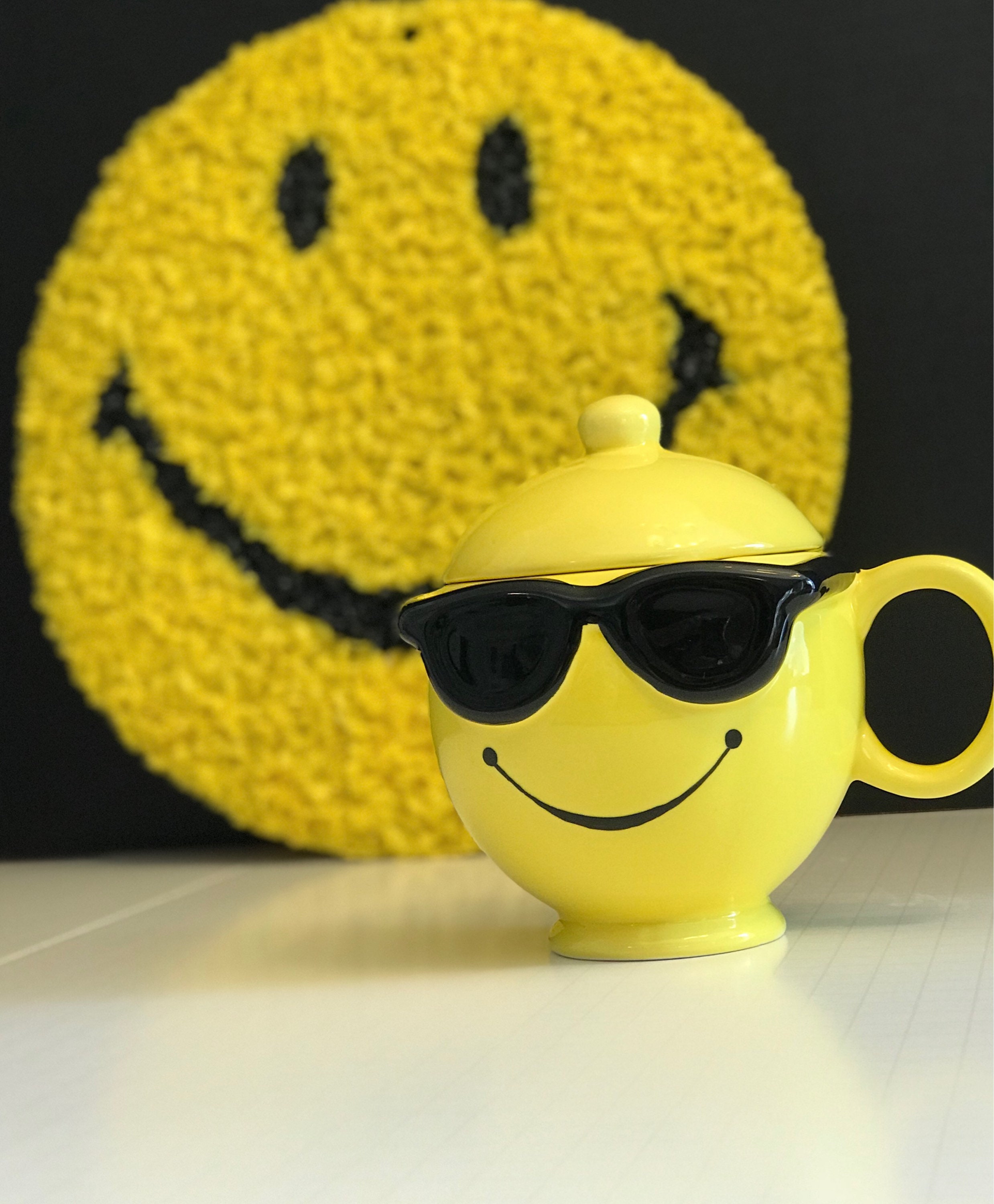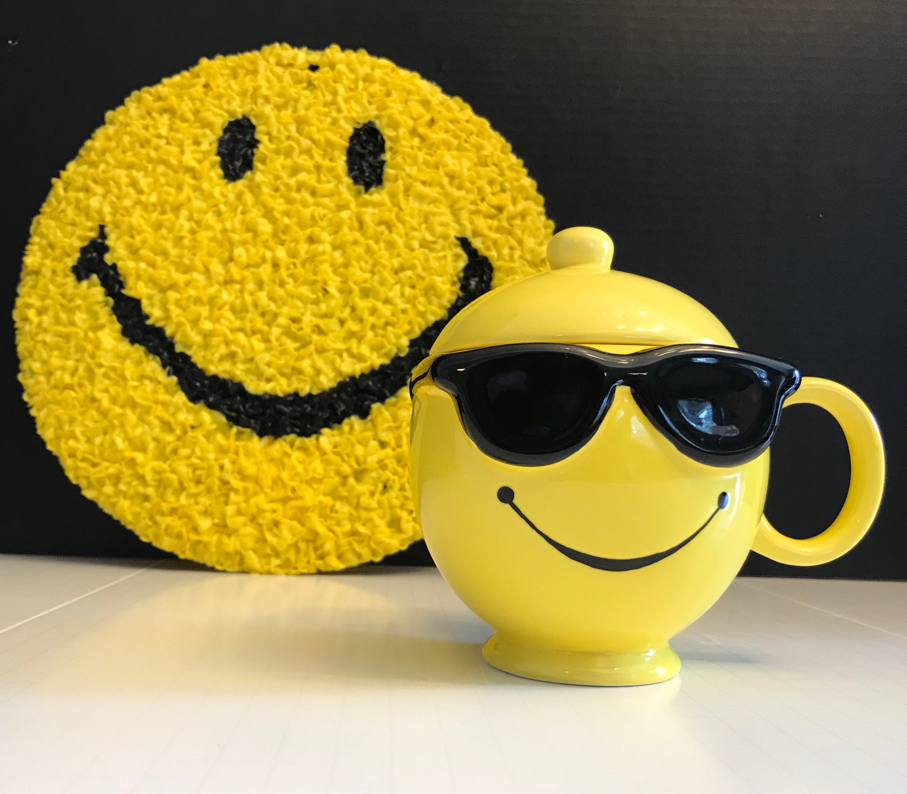 Vintage “Joe Cool” Yellow smiley face gift mug. I love the look of this great Smiley Mug with 80s style sunglasses.