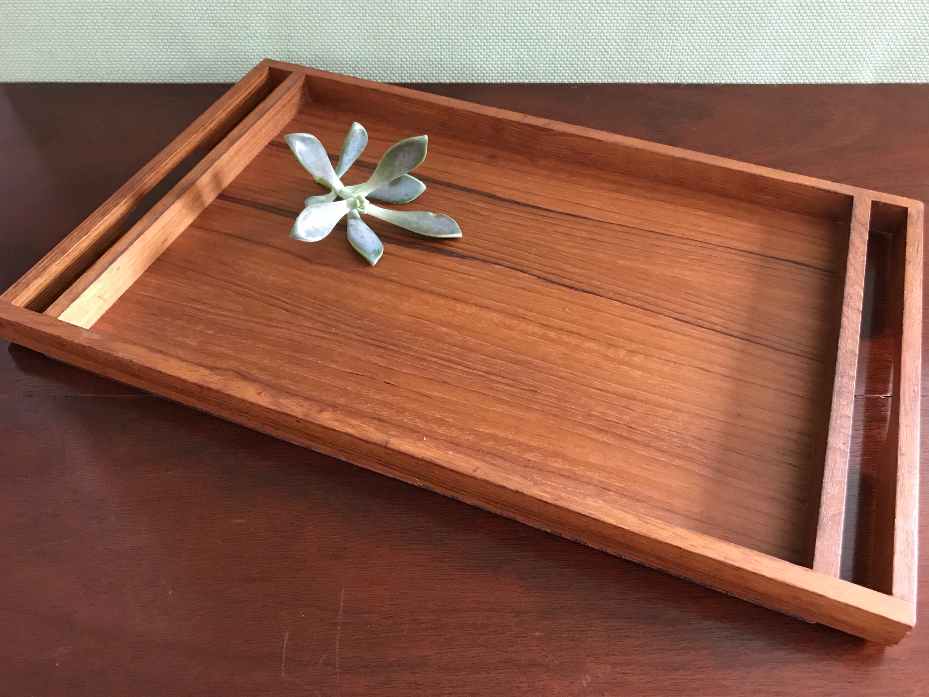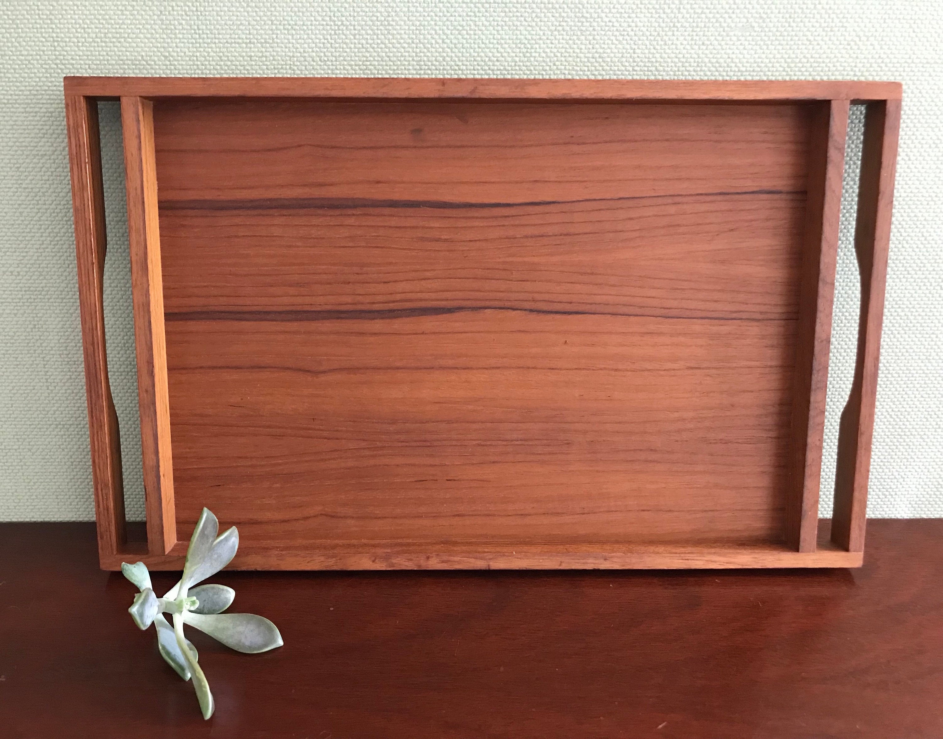 This is a Danish Modern serving Tray by Selandia Designs. Beautifully Crafted in Solid Teakwood, with a smoothly finished surface. I love the grain of the gorgeous teakwood.