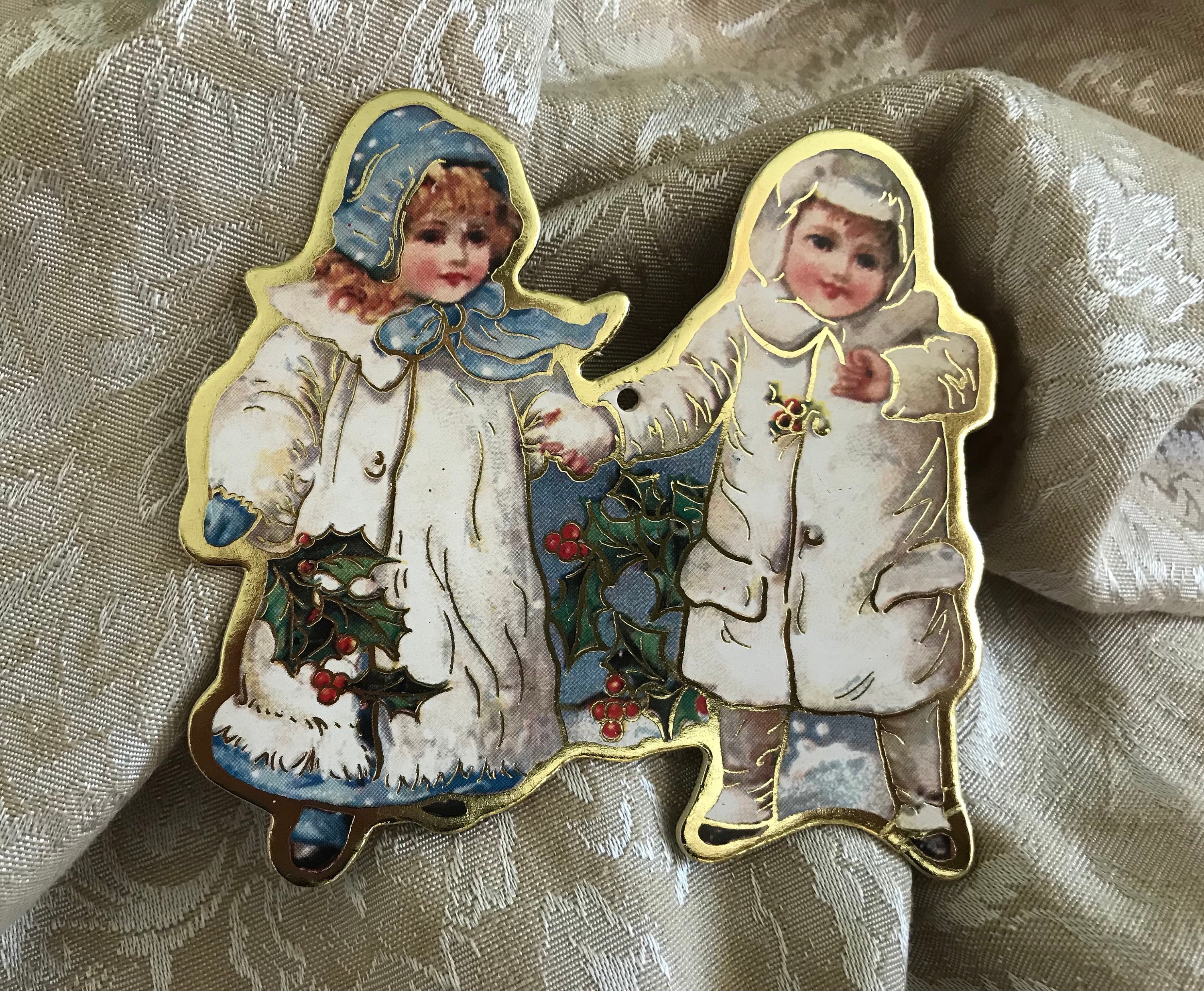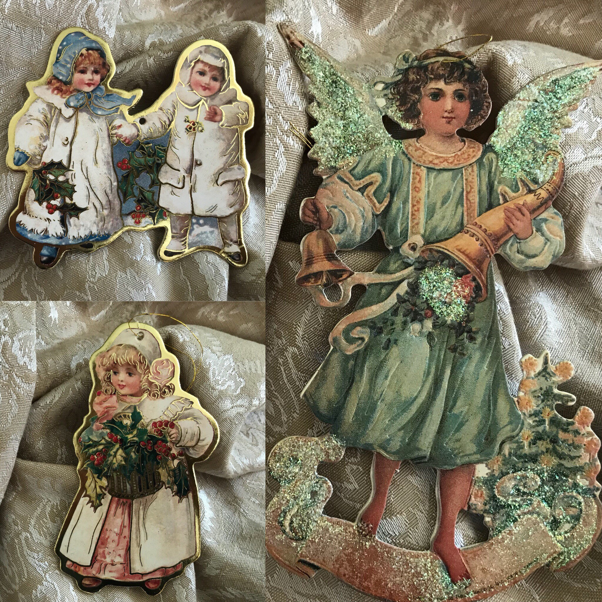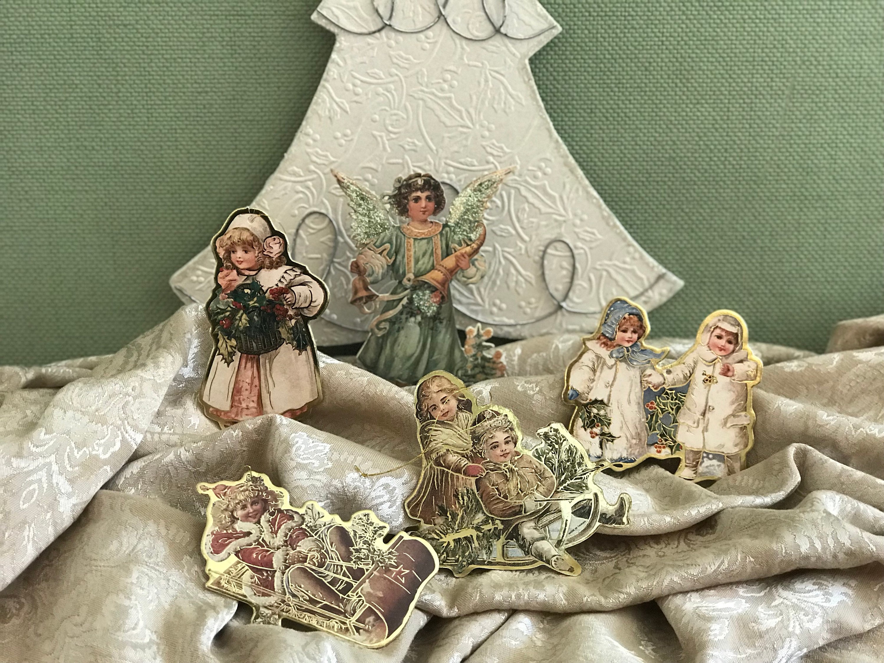This set of ornaments has Little Old Fashioned Children, and I have included a glittering Angel to watch over them. I love the pretty colors of these ornaments. They would be perfect on an Old Fashioned Style Christmas Tree.