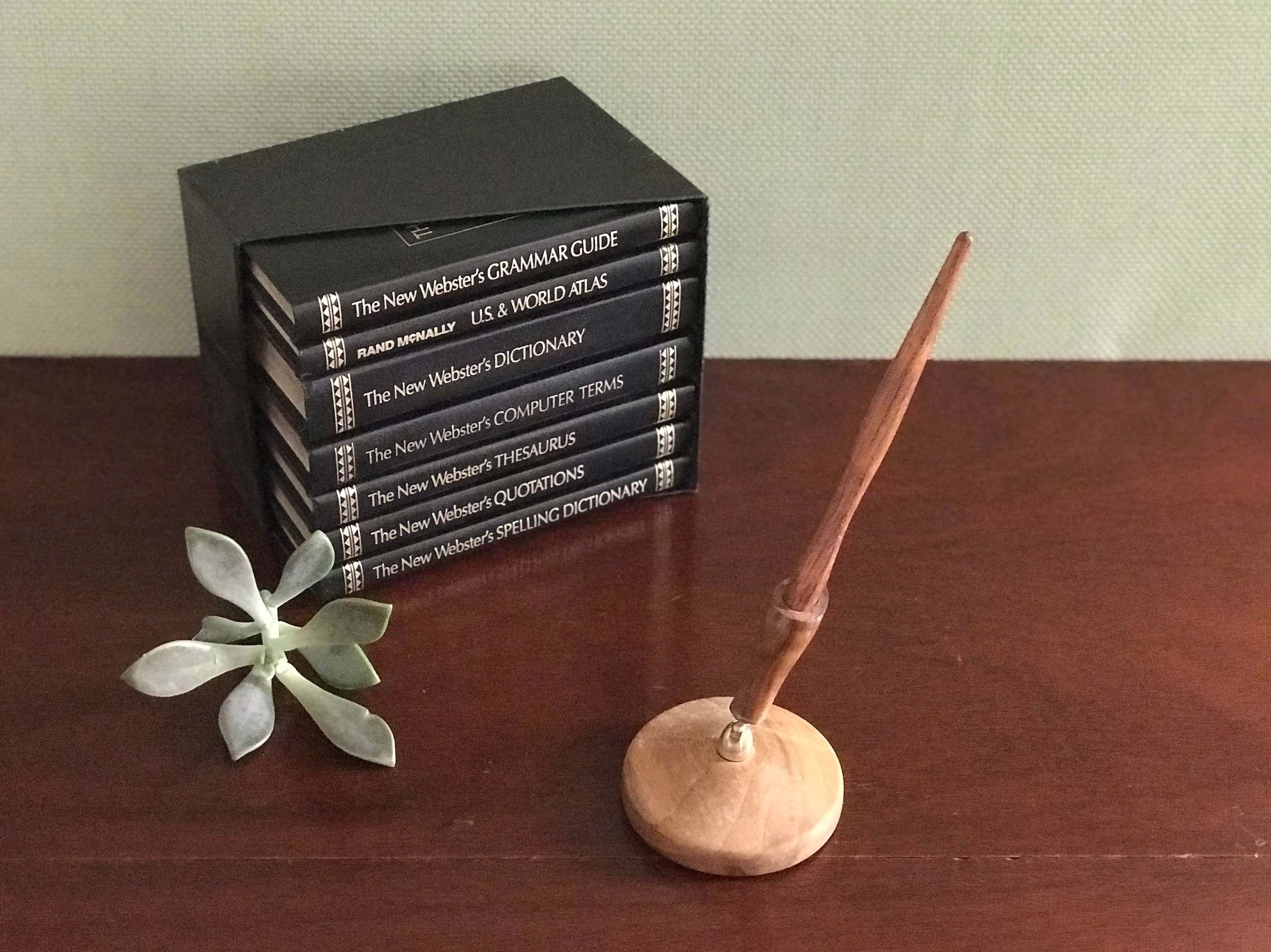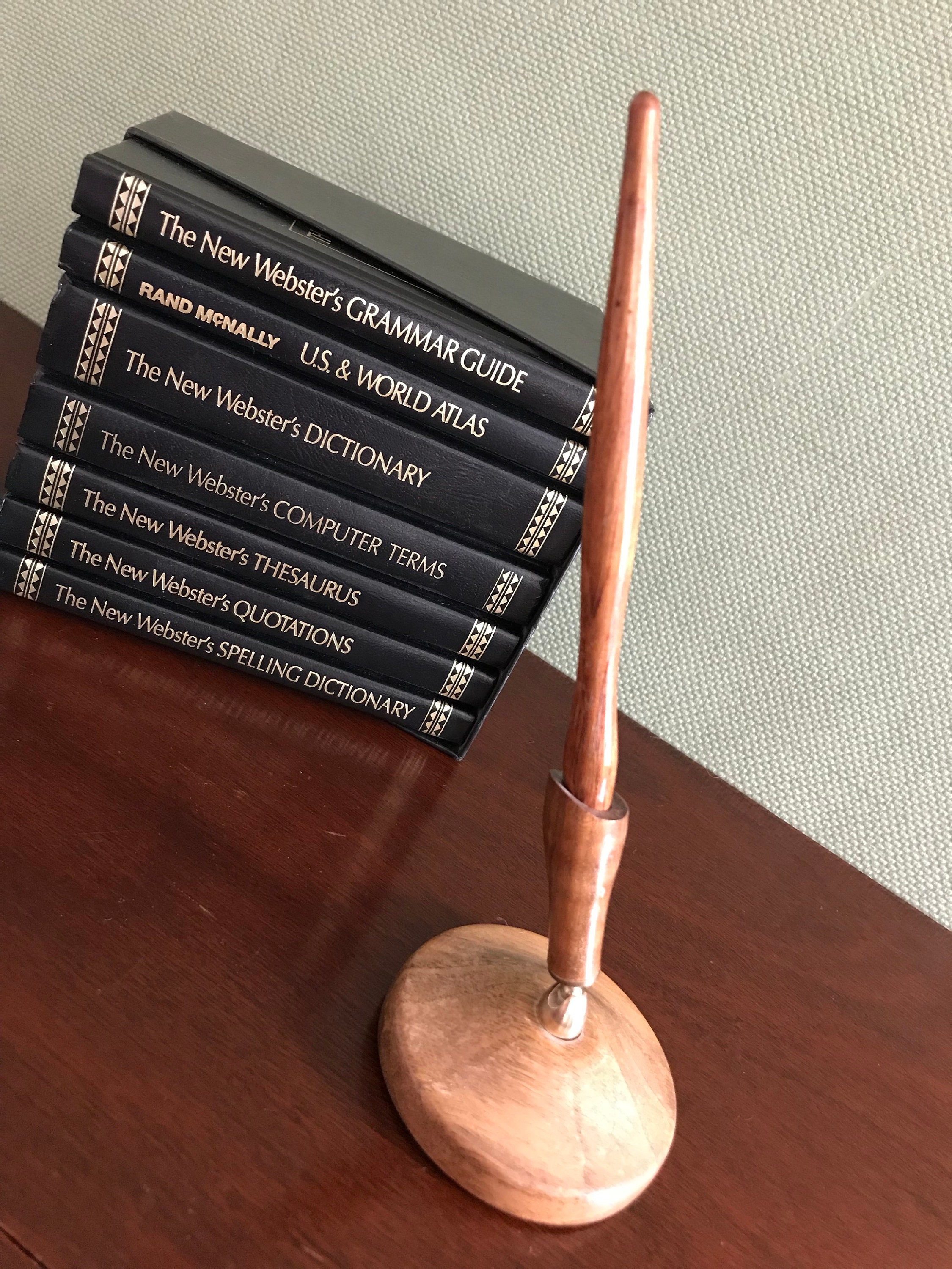 9" x 3 1/8” diameter base. The pen is 7” long.