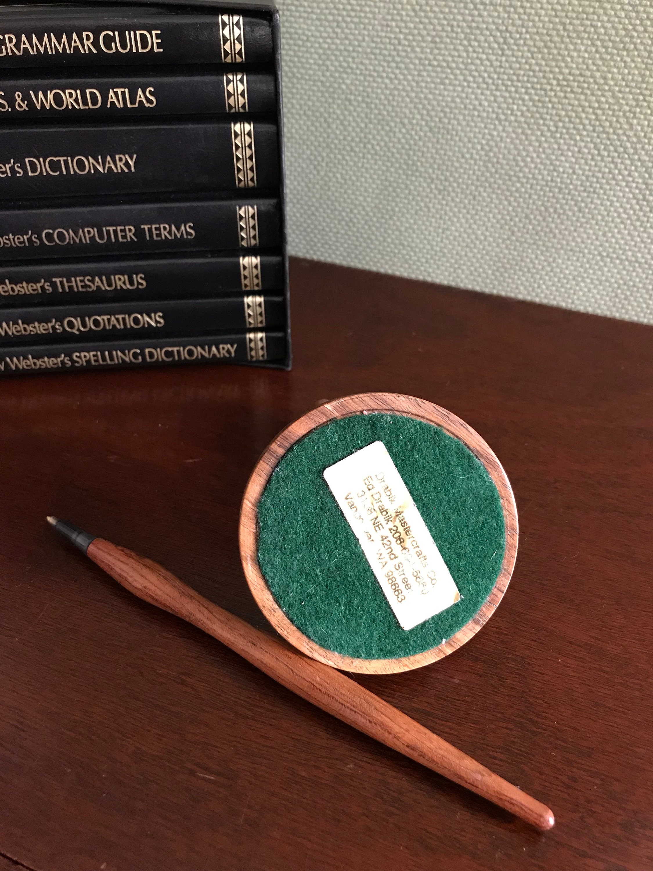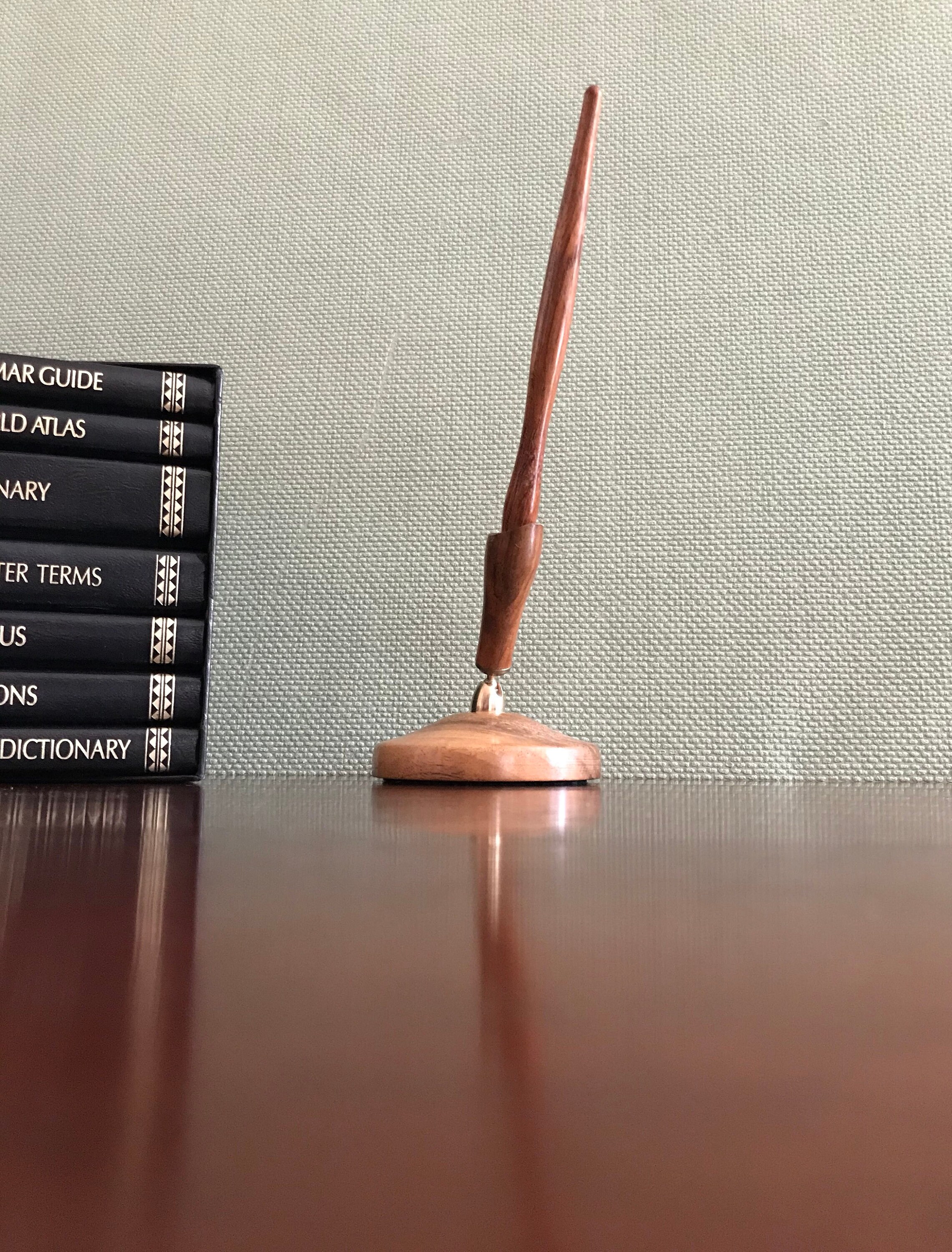 This is a vintage exotic wood Ink pen with Pen Holder. This beautiful set is finely hand crafted from exotic wood and brass hardware. Gorgeous!