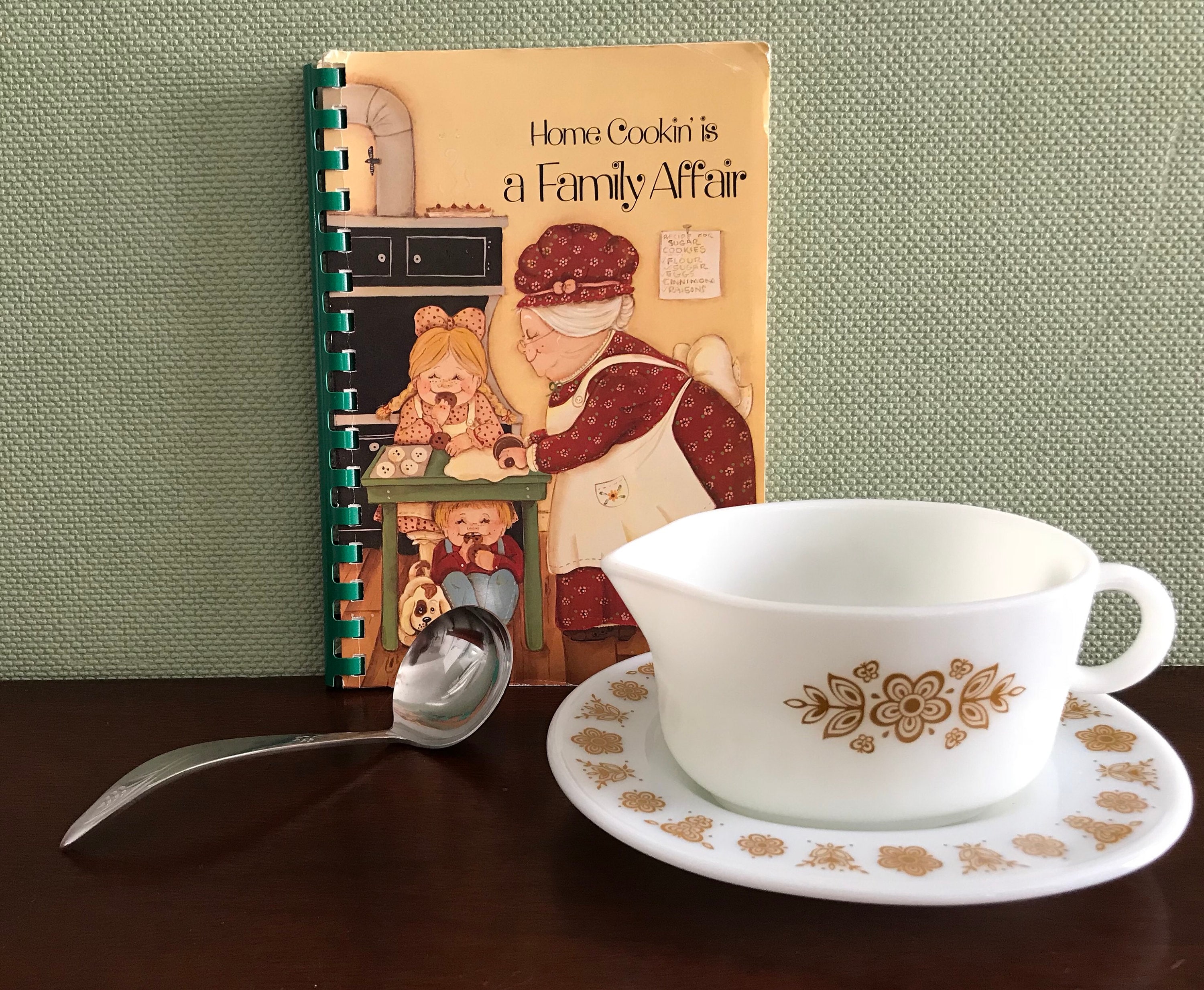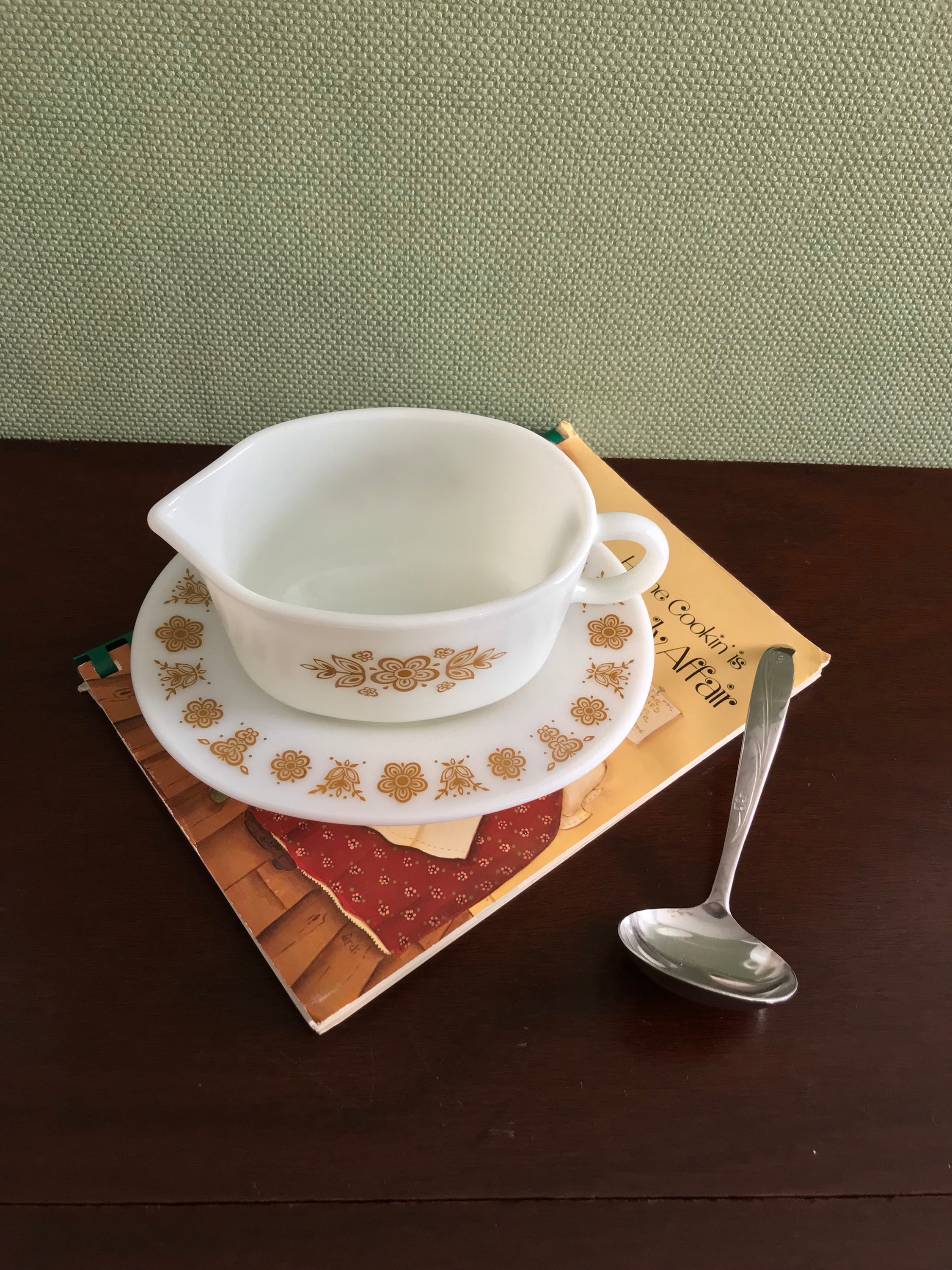This Pyrex Gravy Boat comes with the matching under-plate, perfect for catching drips.