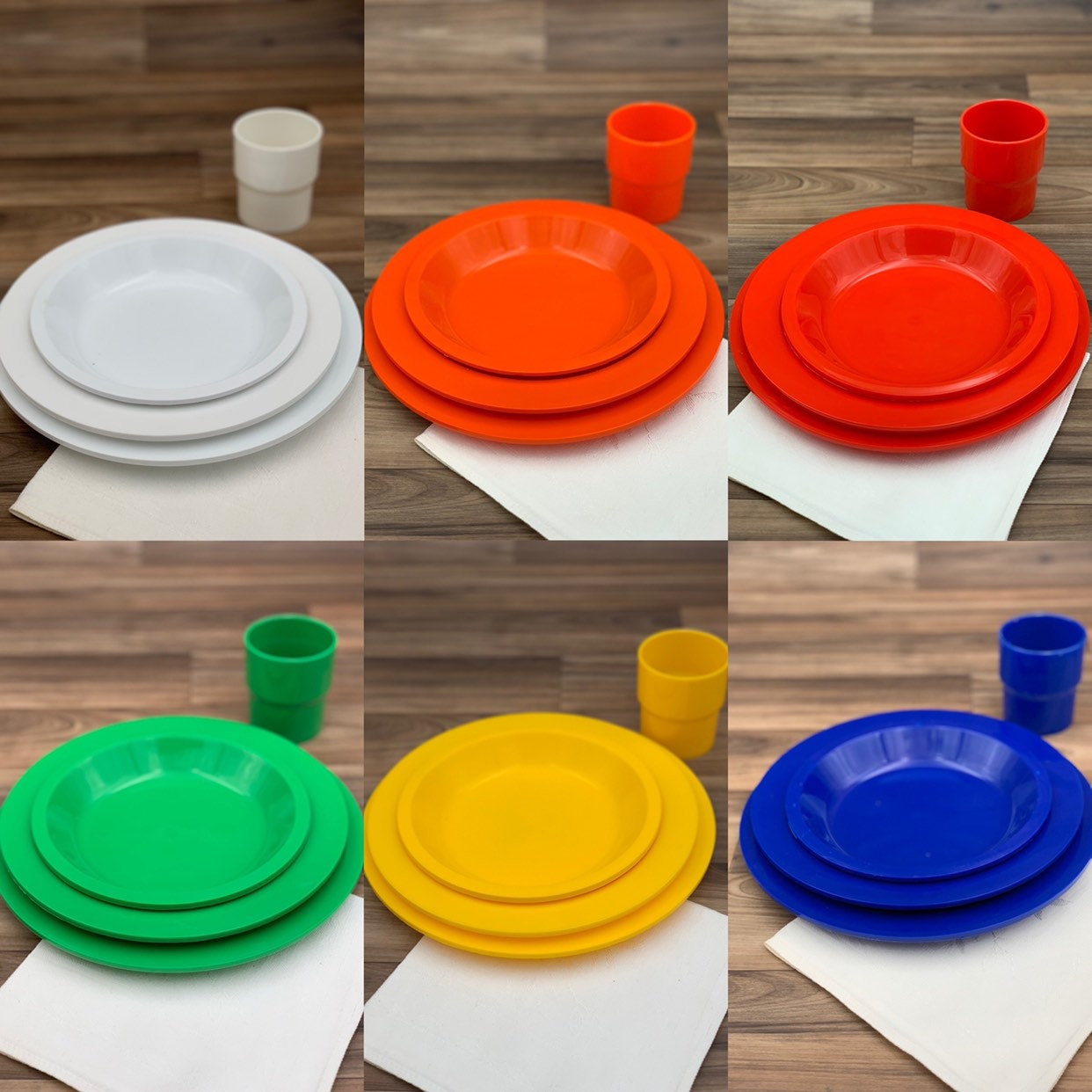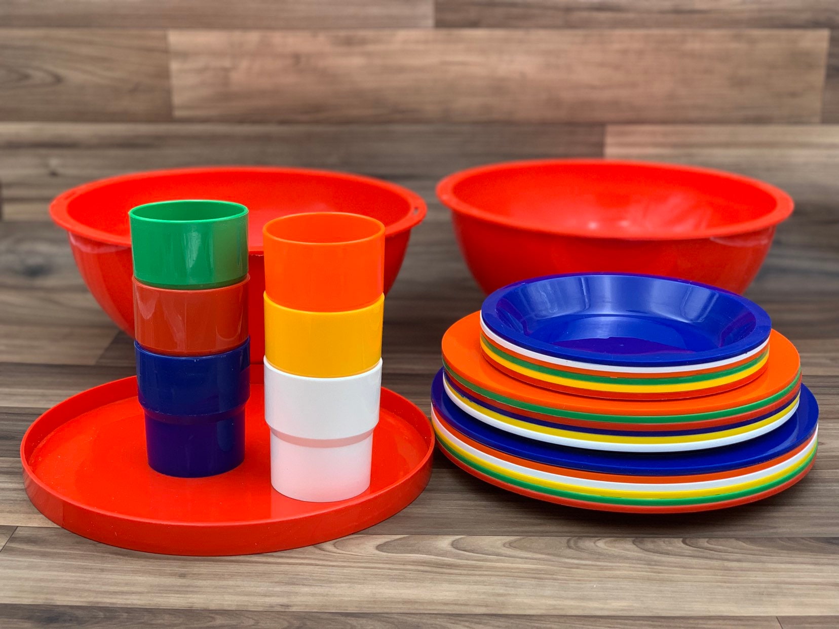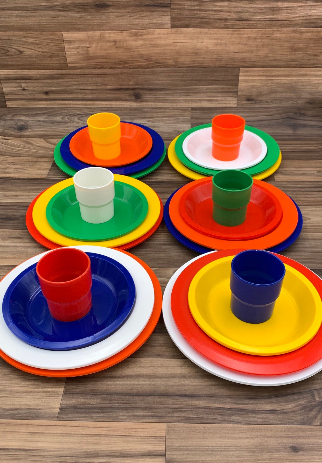 So thrilled with this purchase! It is exactly as described, shipping was so fast and we now have a great set of dishes for picnics and camping. Thank you!!!!