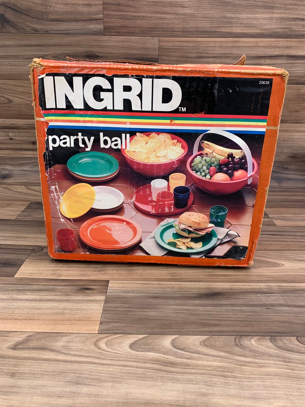 This is a Fabulous Vintage Ingrid Party Ball in the original Box. This set is in amazing condition, it appears to have never been used. The party ball is so unique. The ball halves can be used as serving bowls for Chips fruit etc.