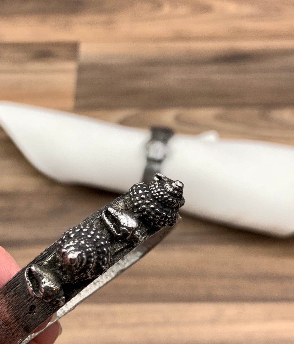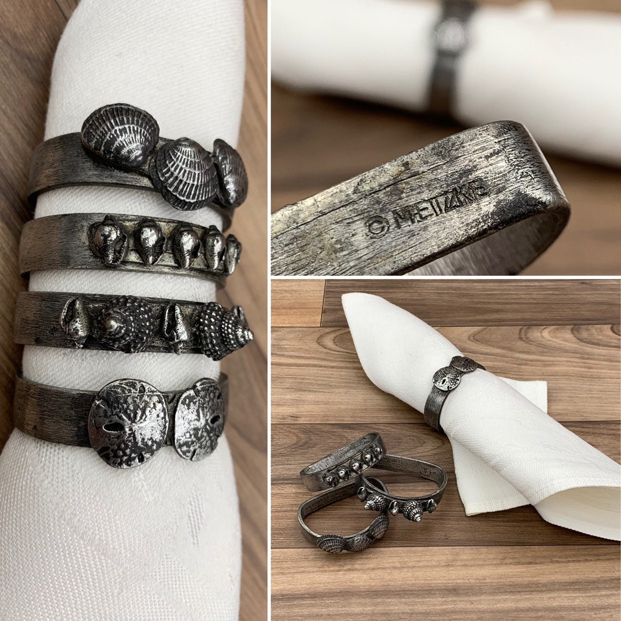These napkin rings would be an excellent addition to your table decor. They are made of Pewter with some vintage Patina. They ready to use or give as a gift.