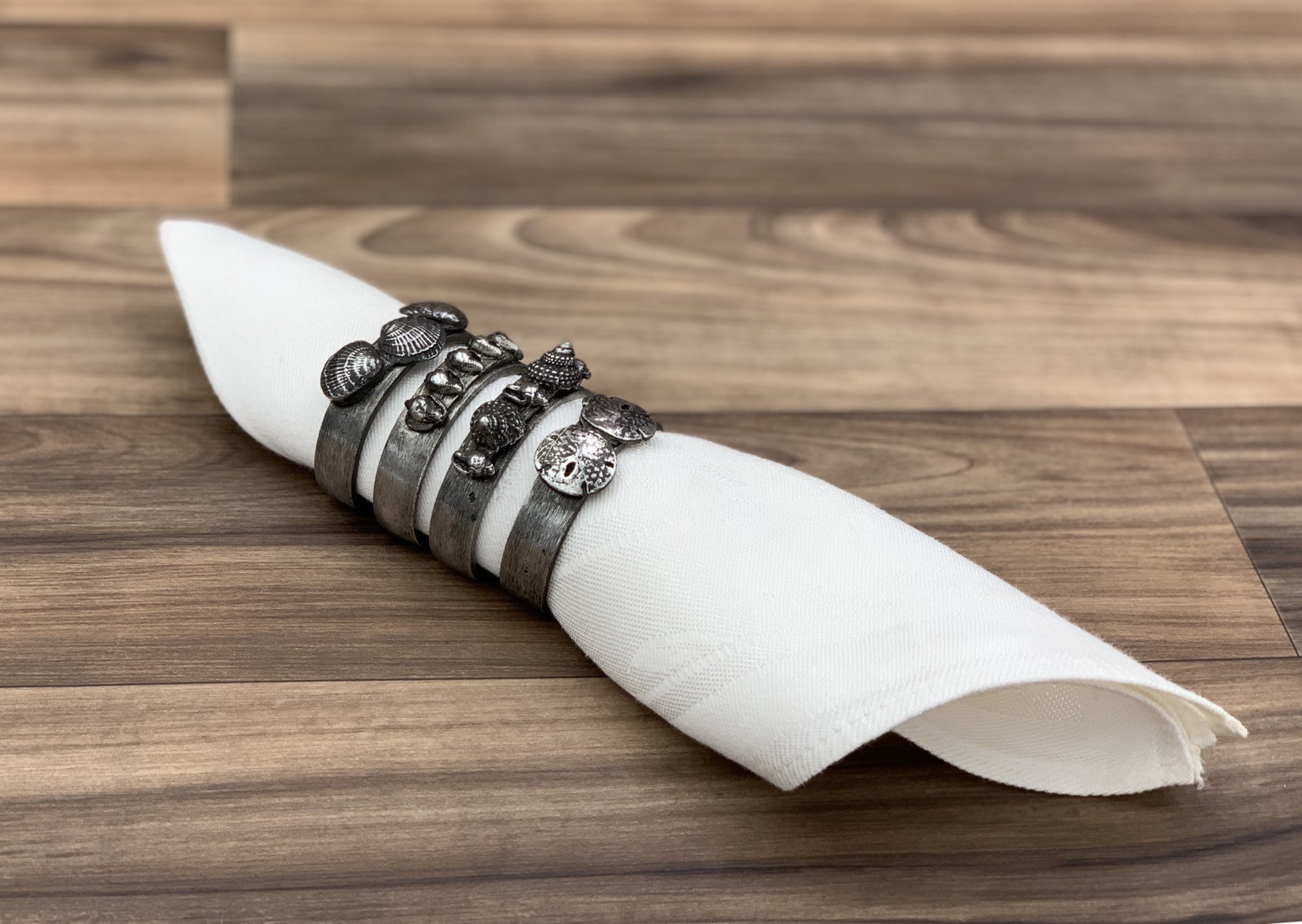This is a lovely set of 4 Vintage Napkin Rings. I love the style of these napkin rings; It is an elegant design of a figural Sea shells on matching rings. Designed by Metzke Pewter. Beautiful