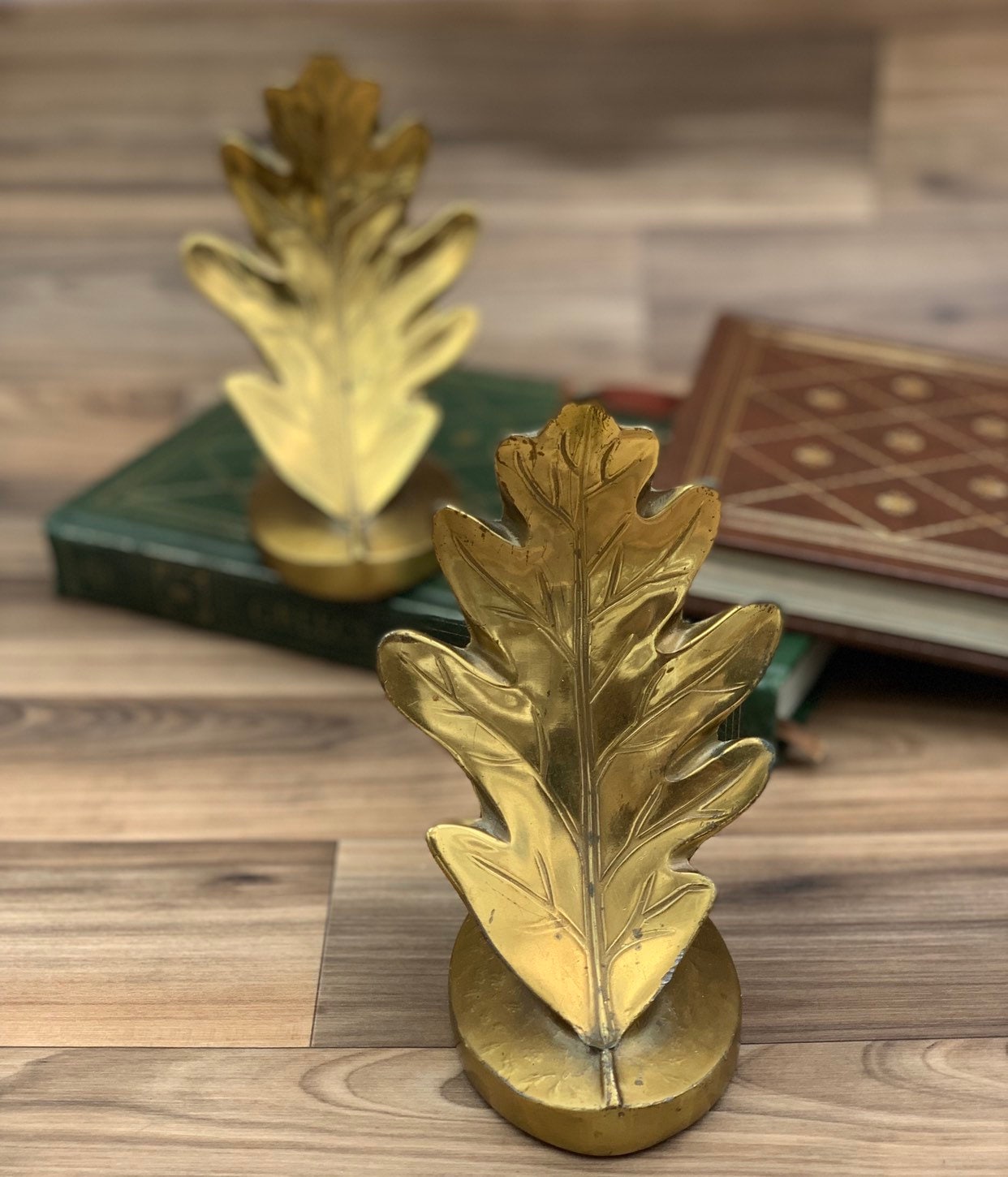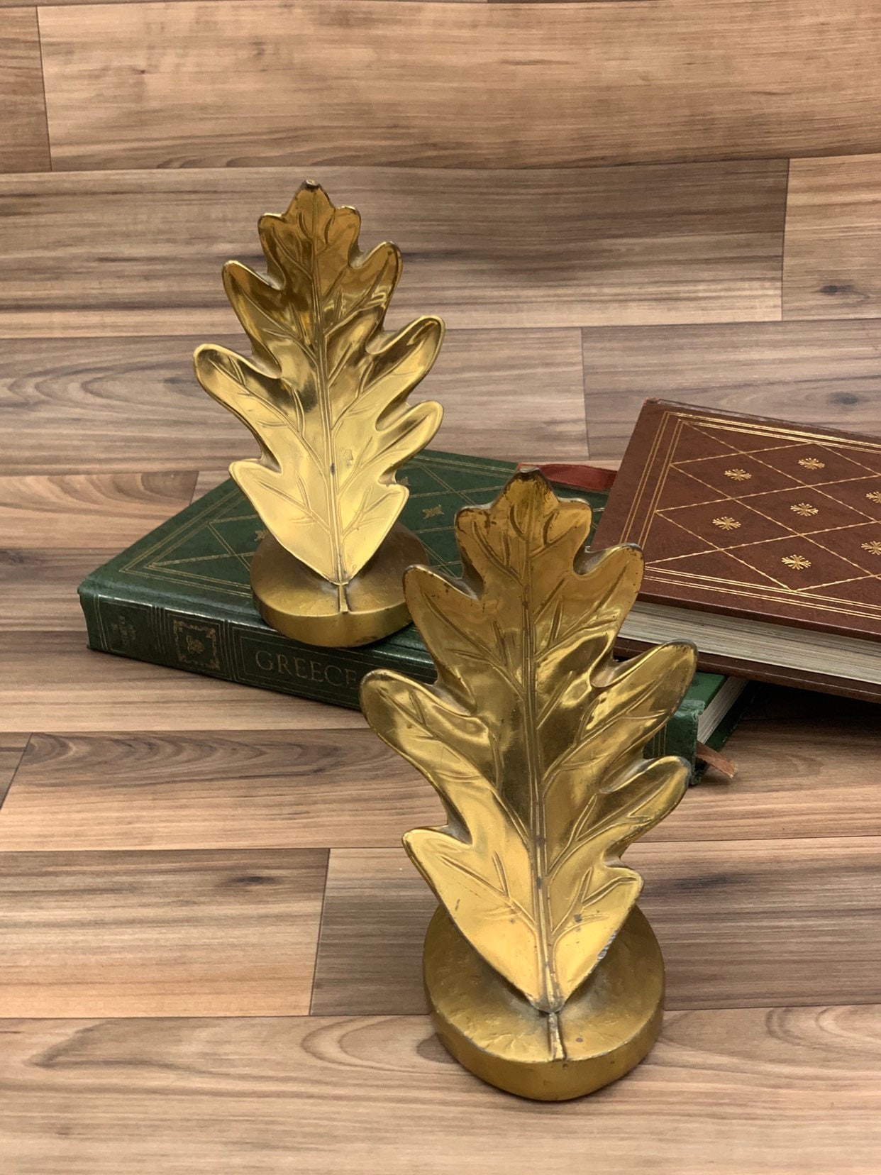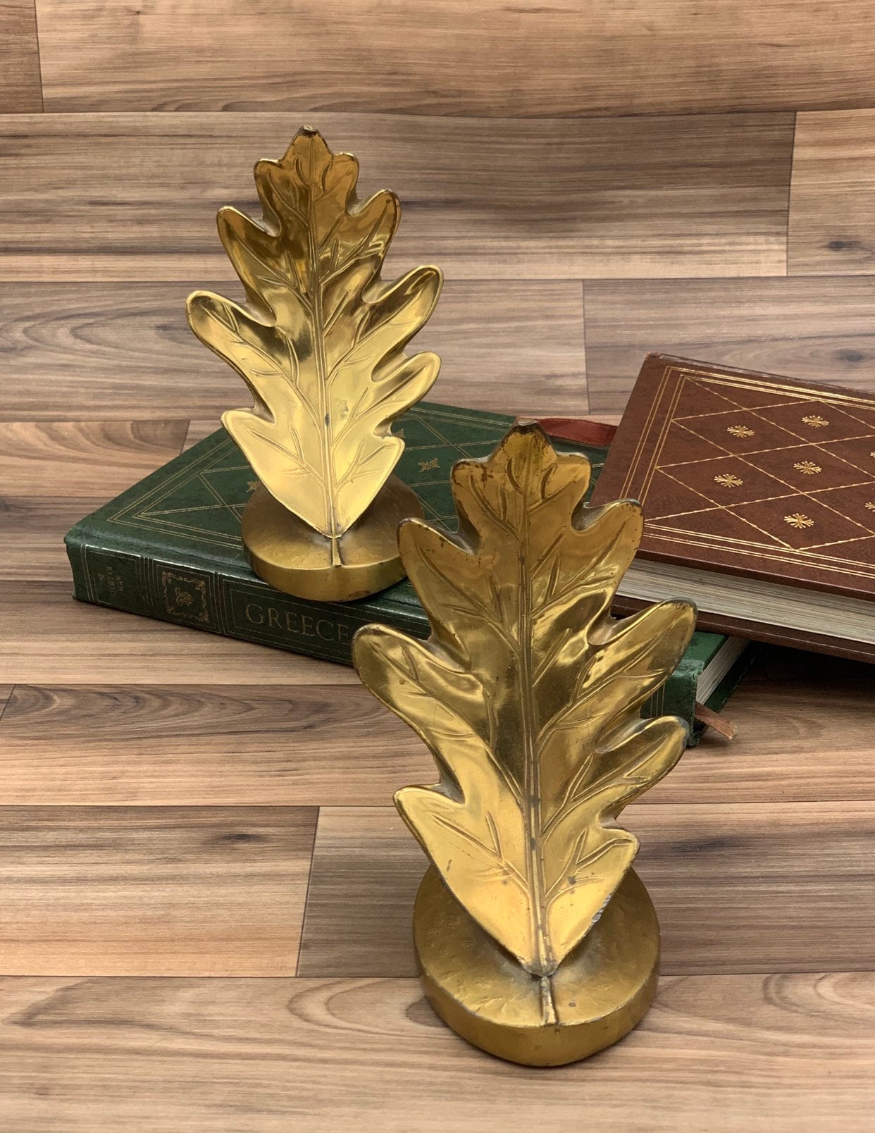 Vintage Oak Leaf Bronze bookends. This pair of classy bookends are a lovely collectible. The Metal design results in a very heavy quality bookend which will hold books securely.