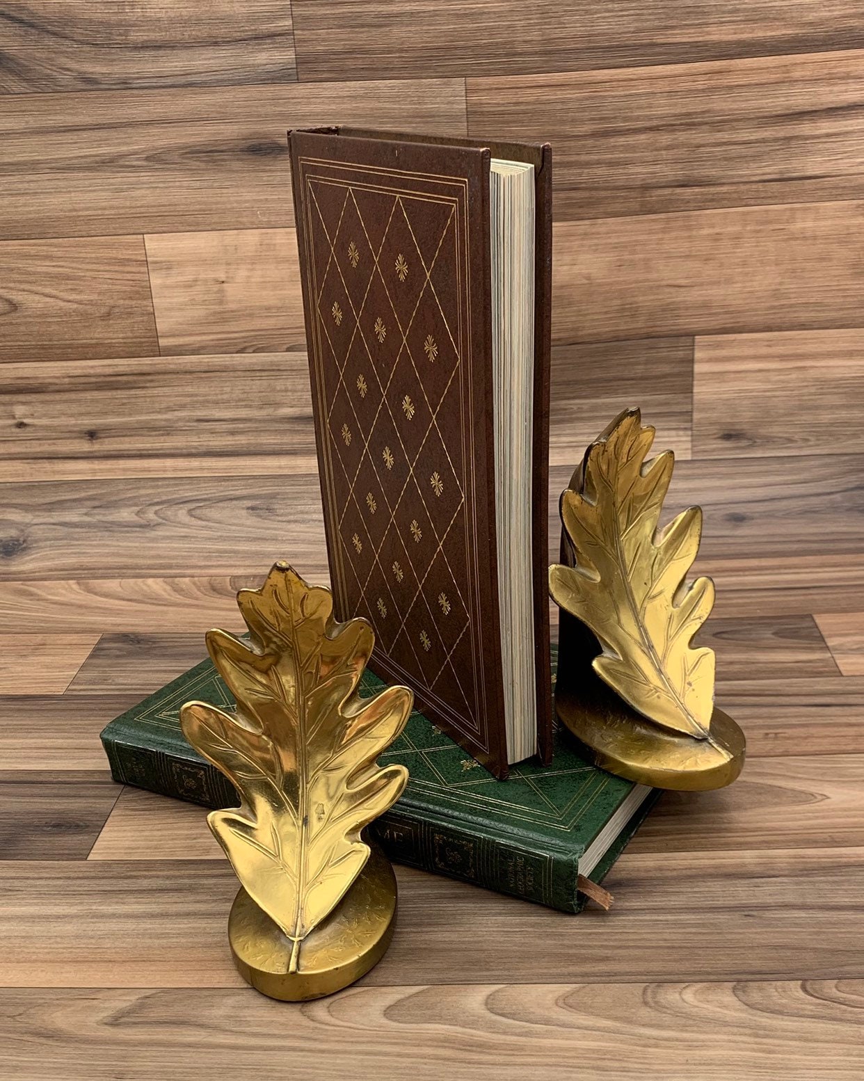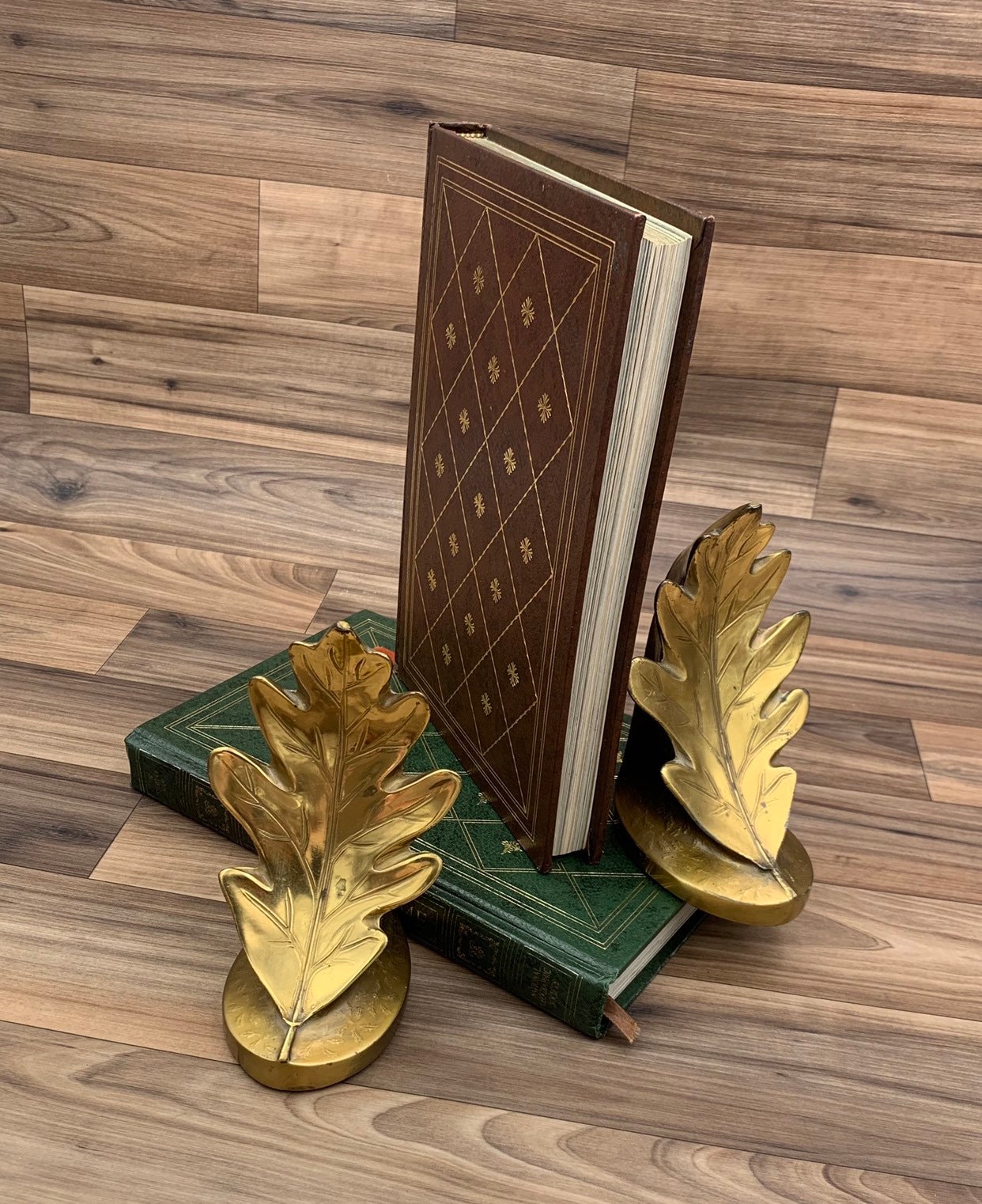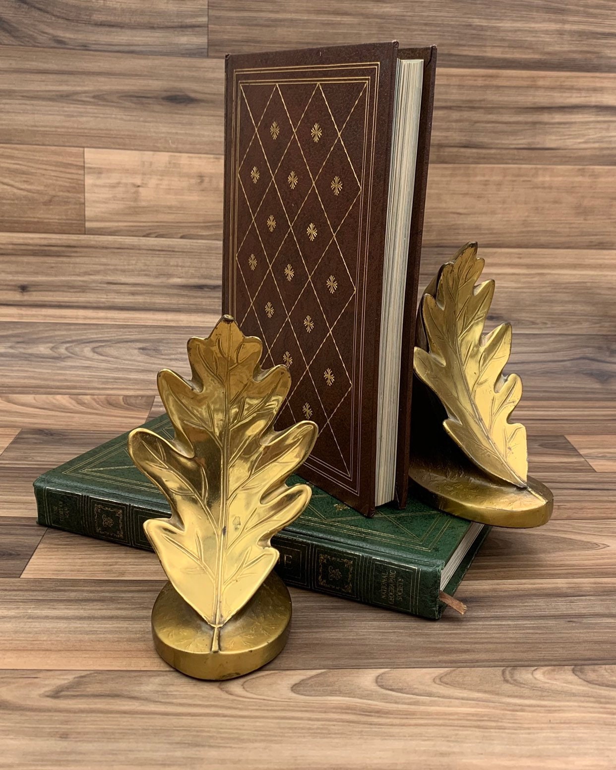 Vintage Oak Leaf Bronze bookends. This pair of classy bookends are a lovely collectible. The Metal design results in a very heavy quality bookend which will hold books securely.