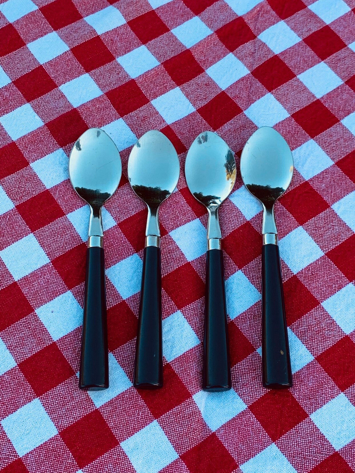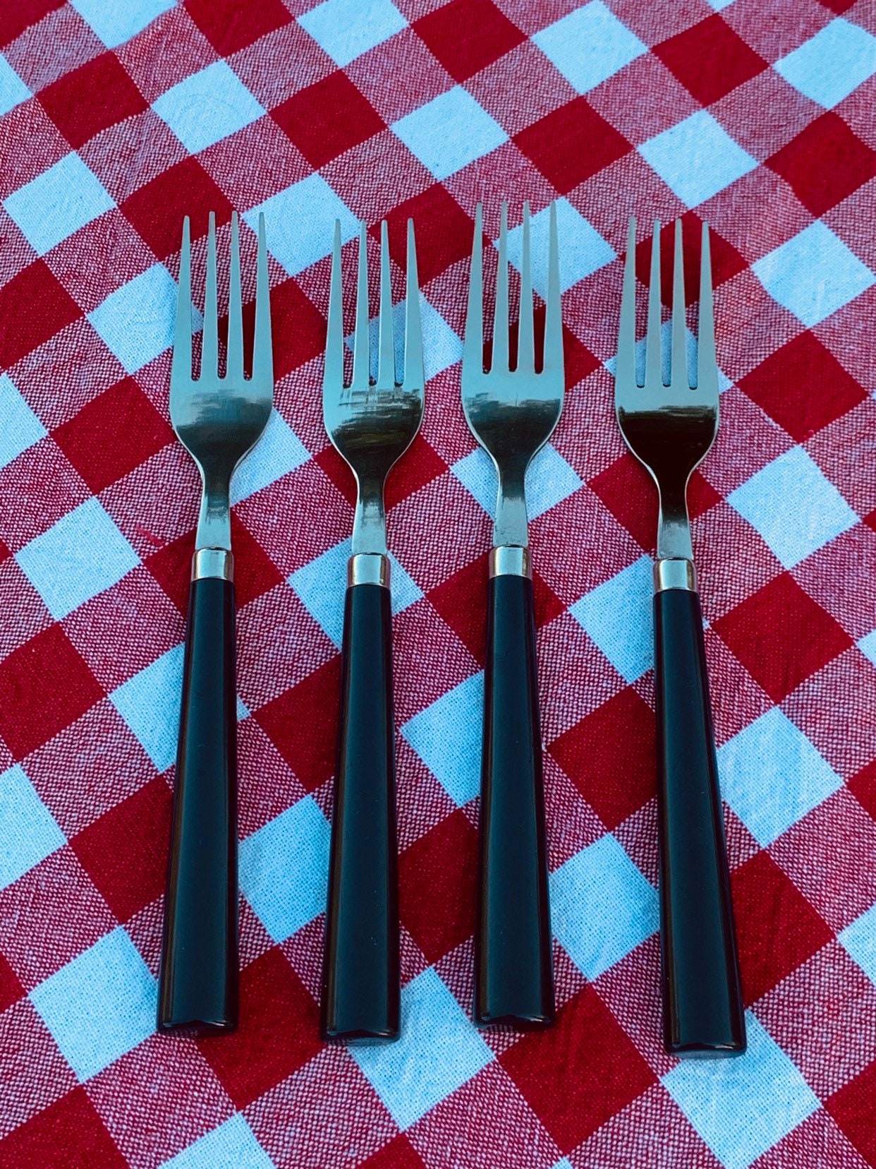 CONDITION NOTES; This flatware is new and unused in the original plastic sleeves and box. It is in very good vintage condition. Vintage Made in Taiwan. (Not China like newer sets!)