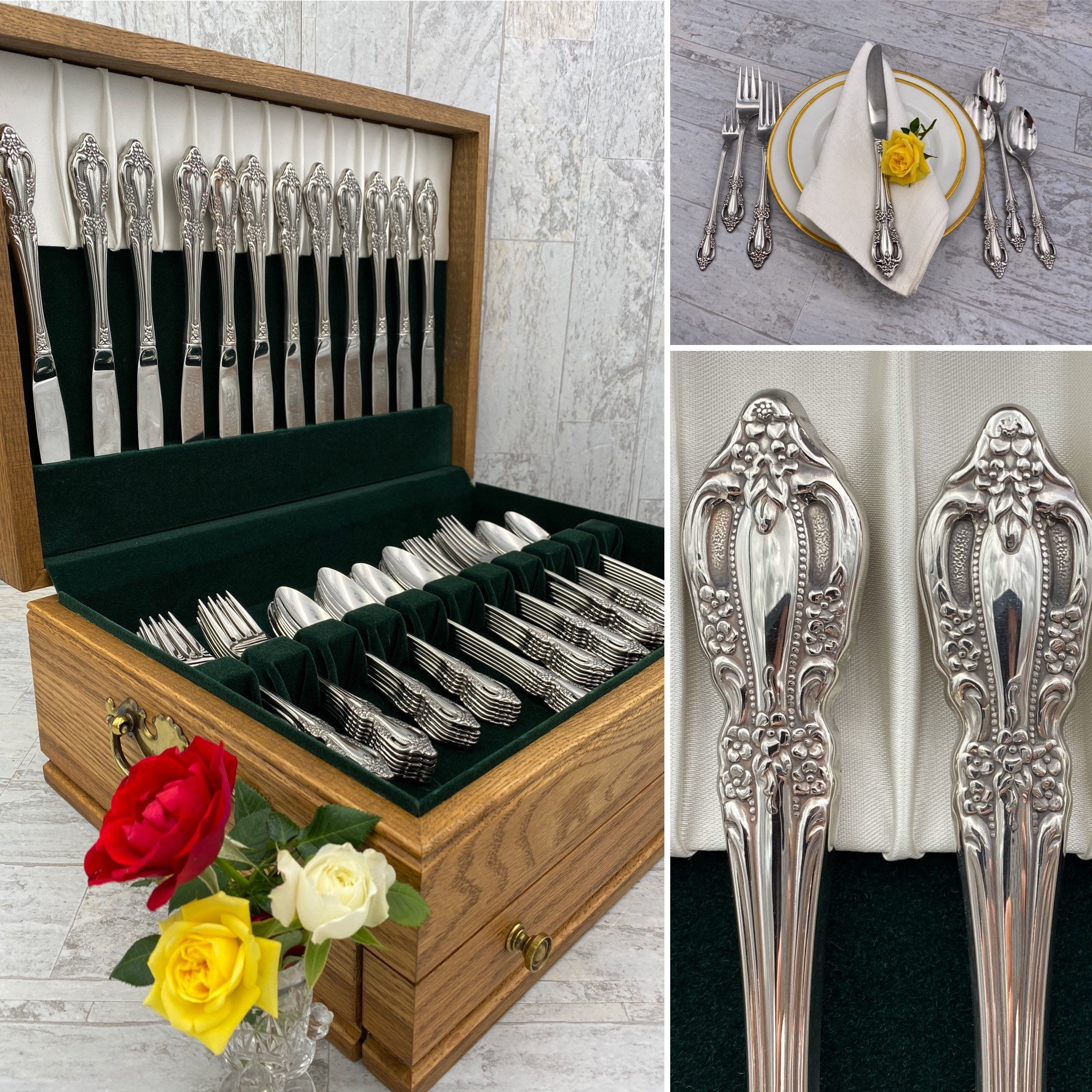 Vintage Oneida Raphael Distinction Deluxe Stainless Silverware art. This is an Elegant pierced Floral pattern in shining stainless.