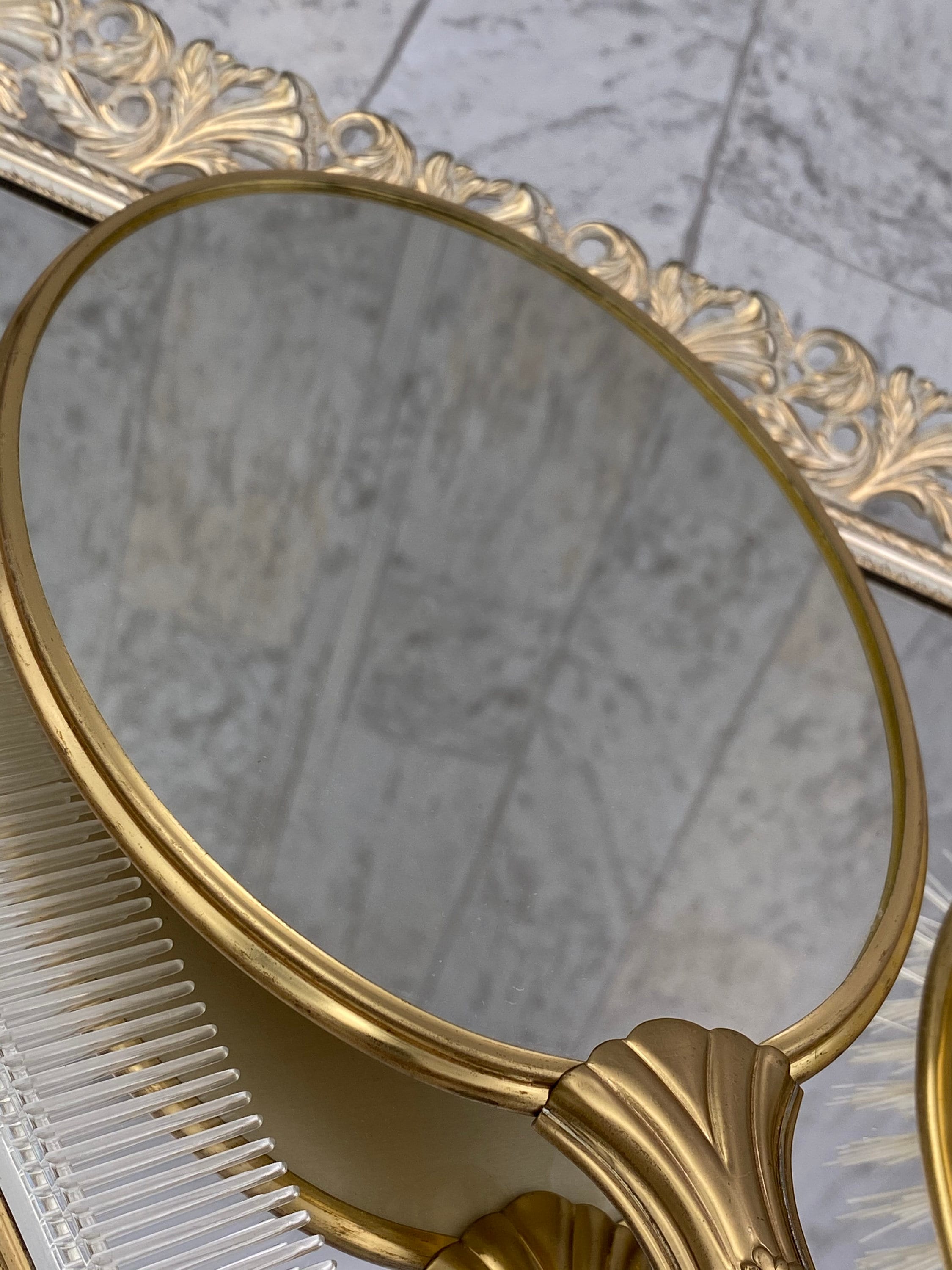 This is a unique boudoir vanity set. It includes the 1 Hand mirror and 1 brush and a comb.