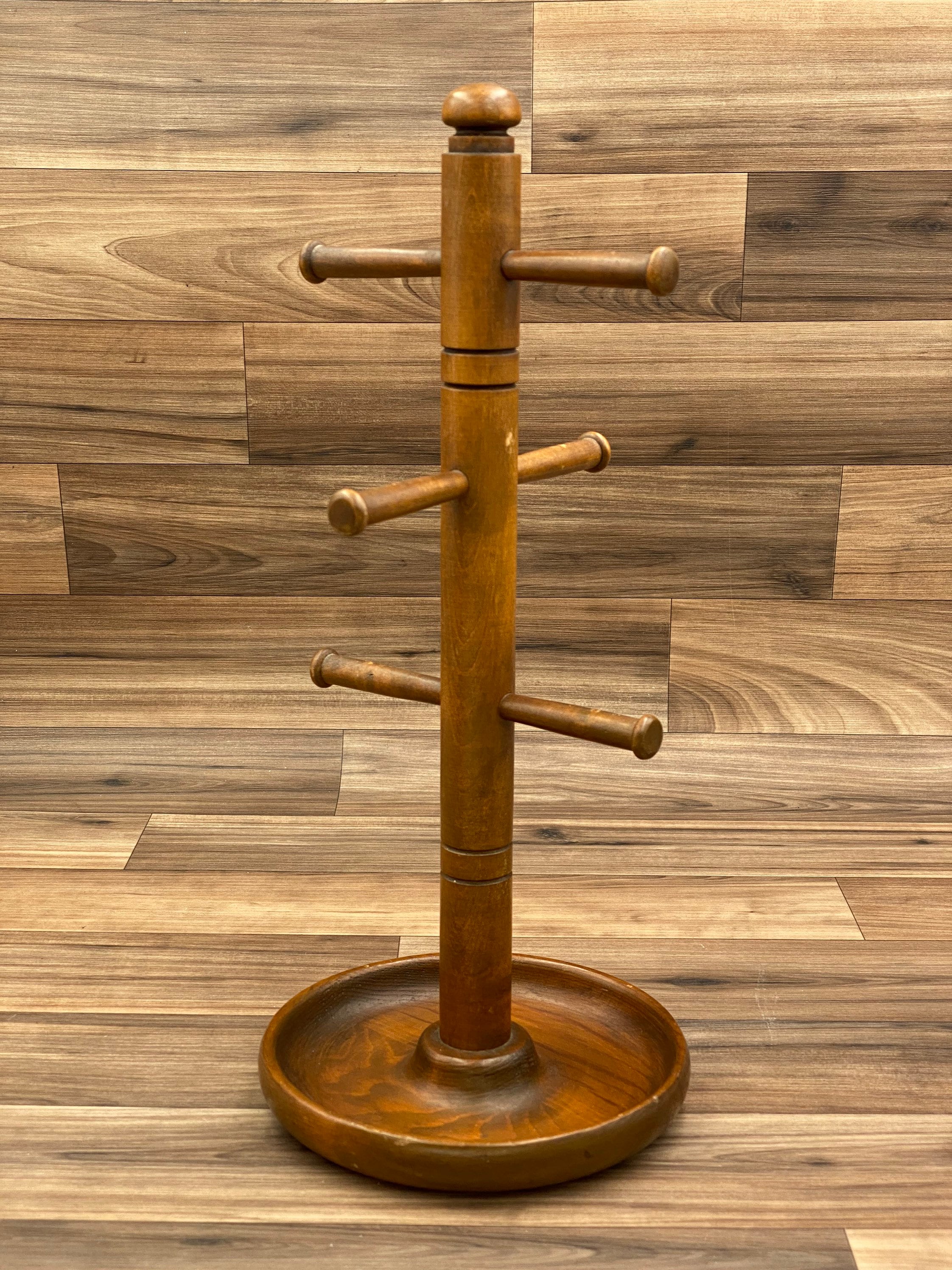 This is a Vintage wood mug tree. This fabulous rustic mug holder would be perfect for a rustic farmhouse, rustic cabin, or lodge Decor.