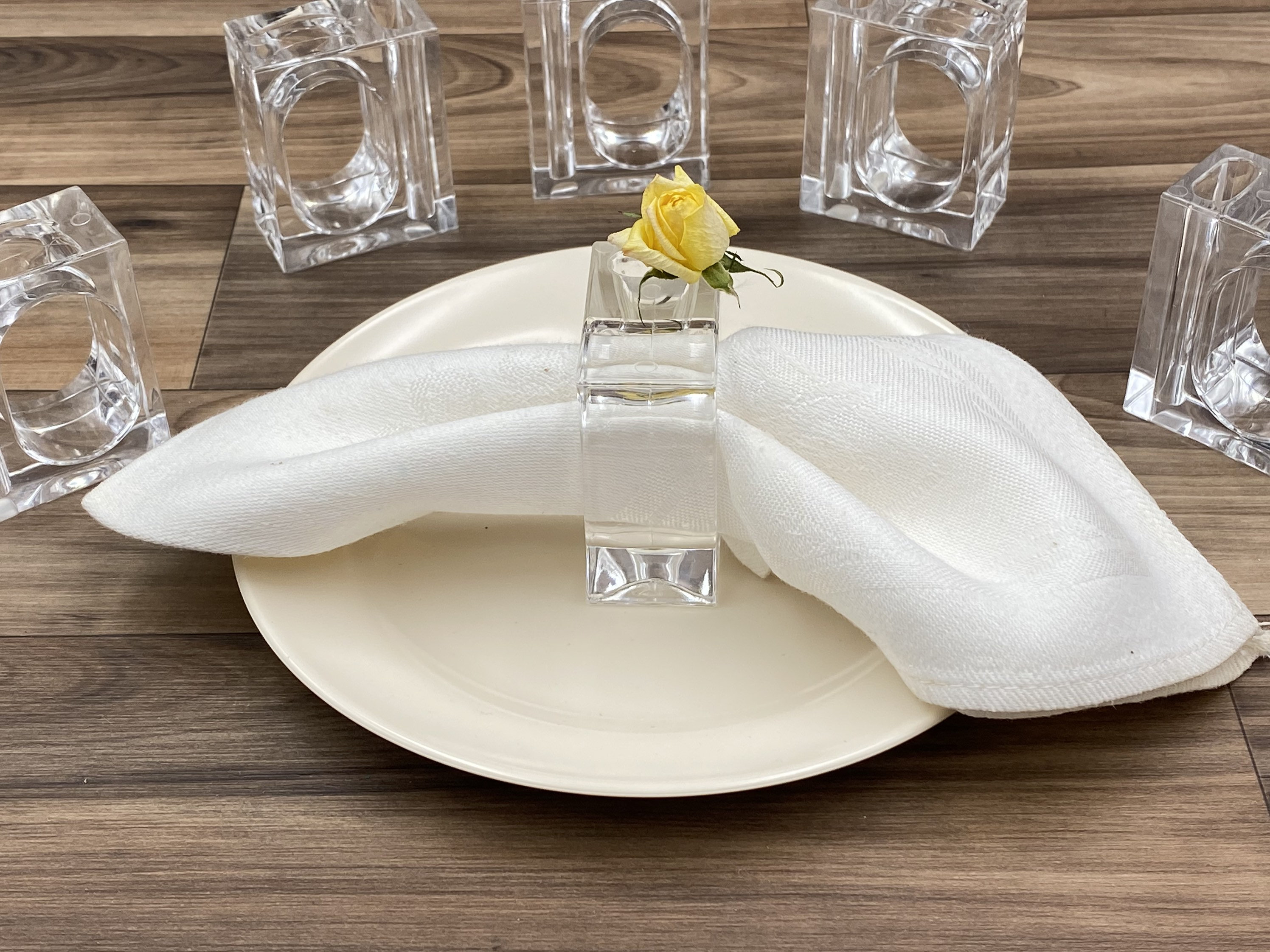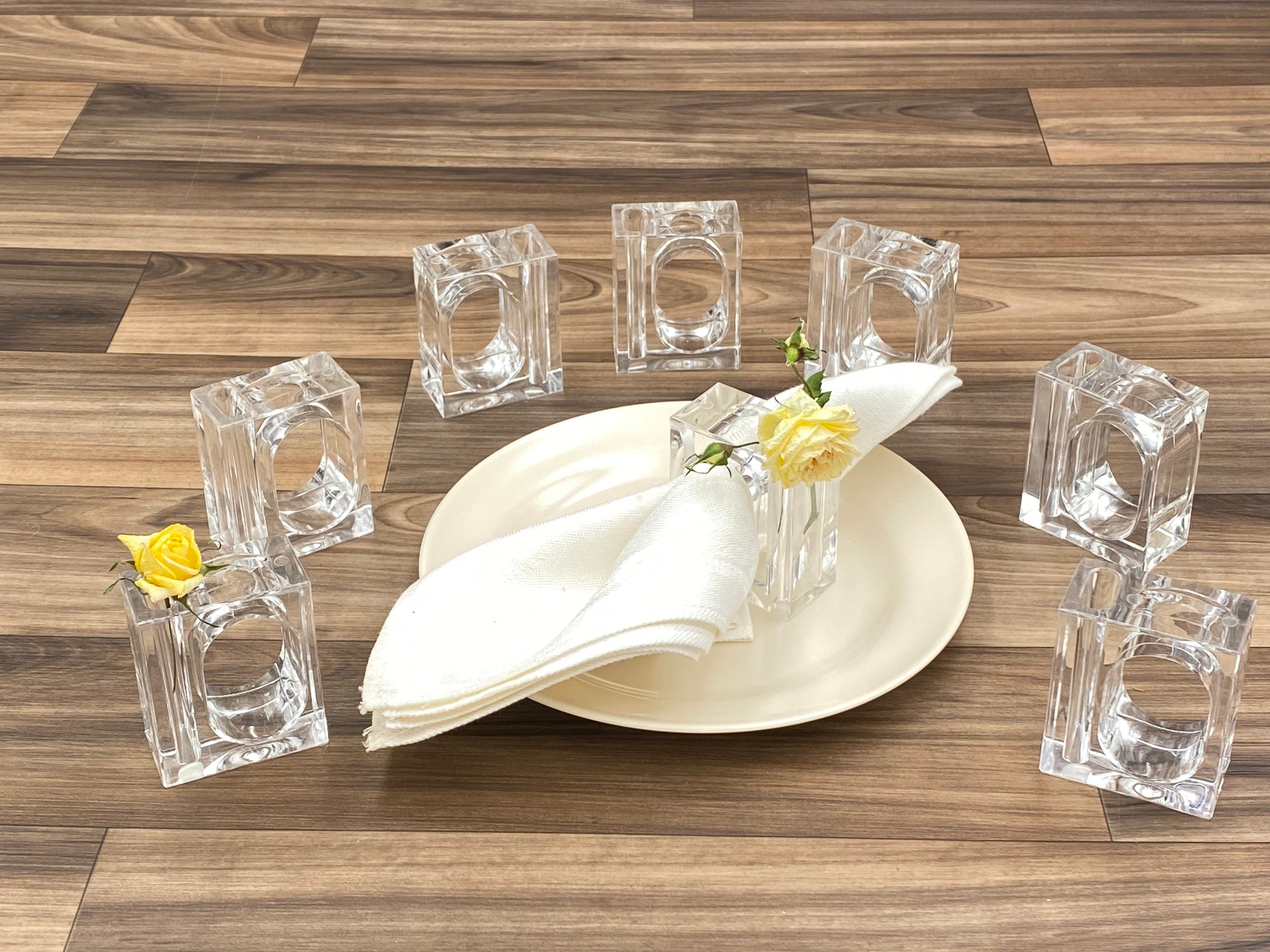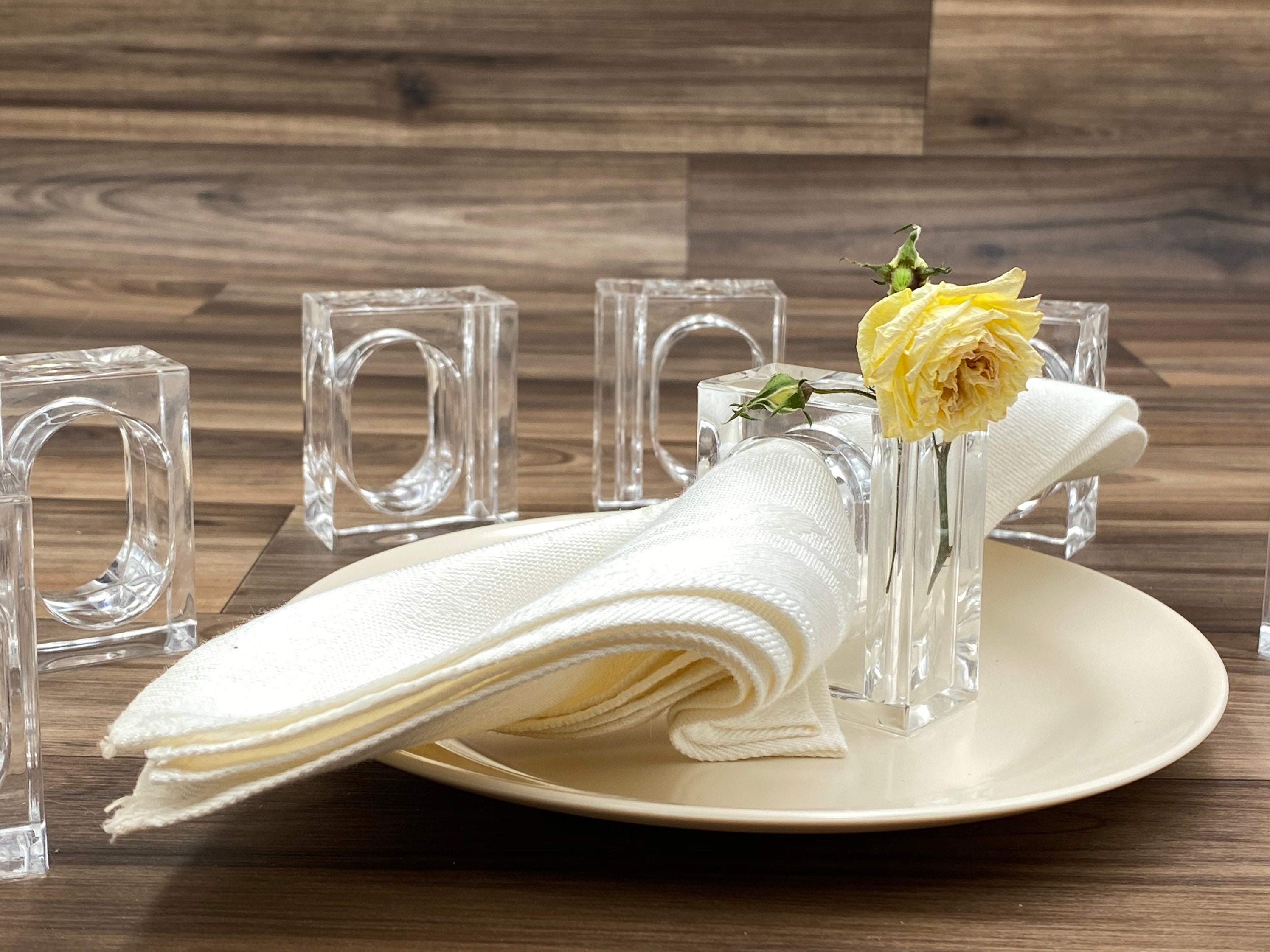 Add a classy touch to your Wedding or dinner party with these lucite rings encasing your cloth napkins.
