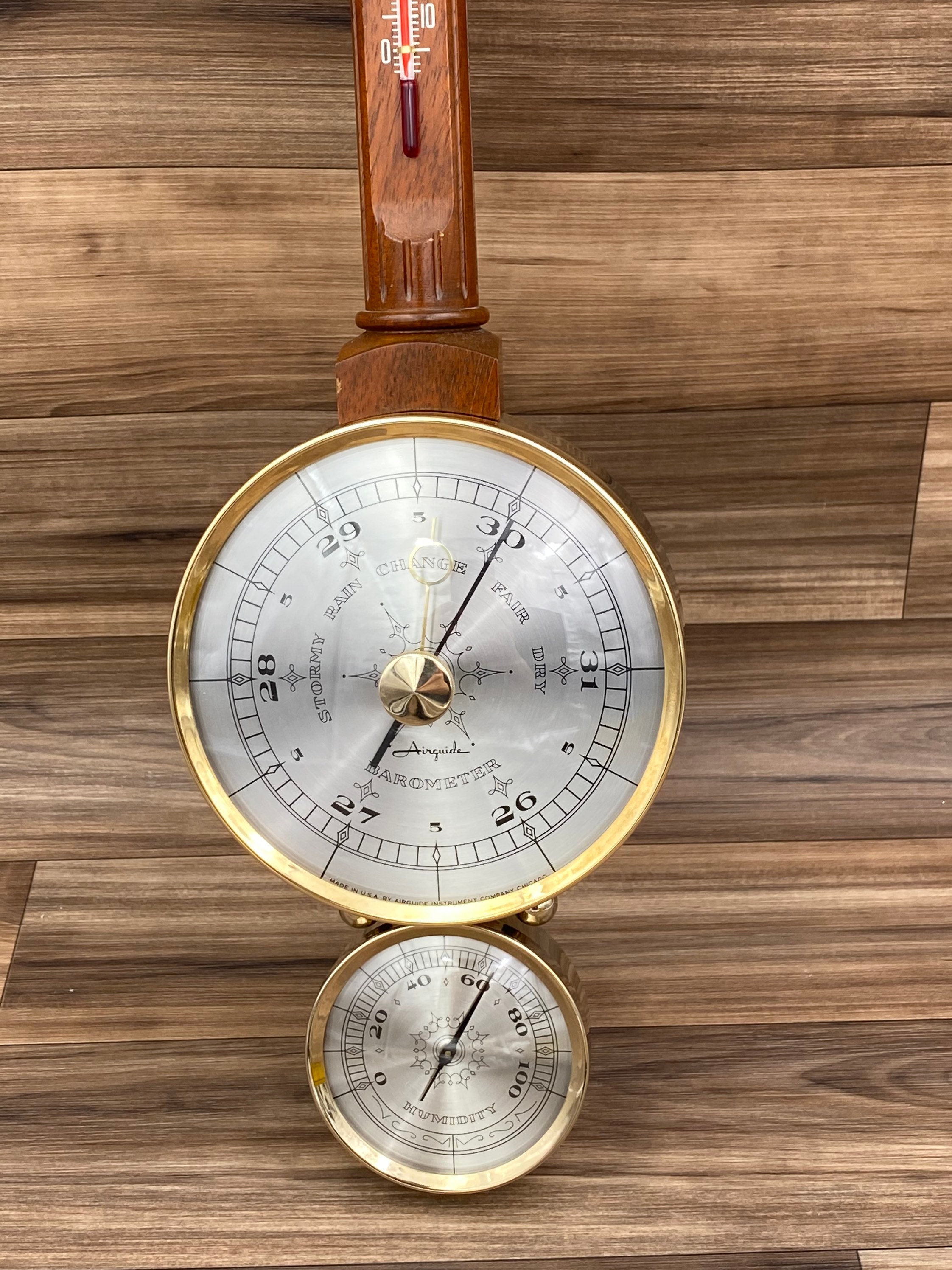 This is a Unique Collectible Airguide Weather Station in solid Wood with lovely brass accents.